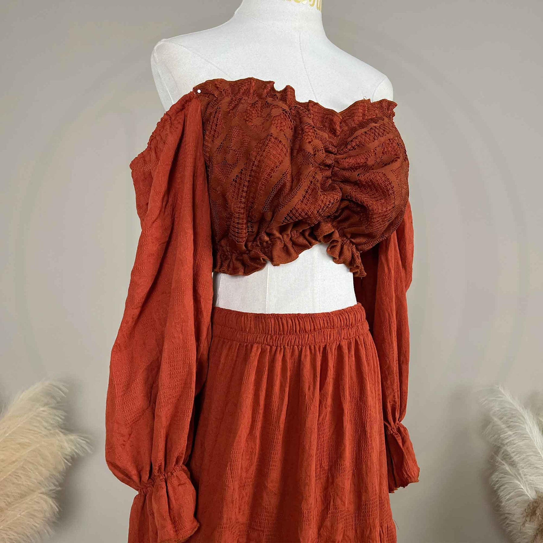Product name: Autumn Boho Cotton and Lace Top and Skirt Set Maternity or Non-maternity Gown Party Dresses for Photography Props Baby Shower Photo Props