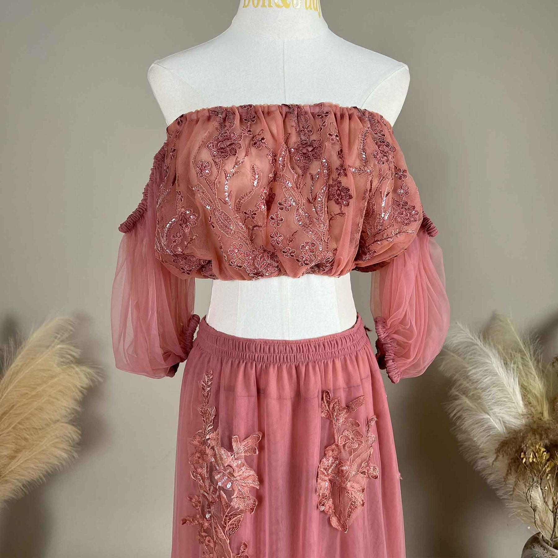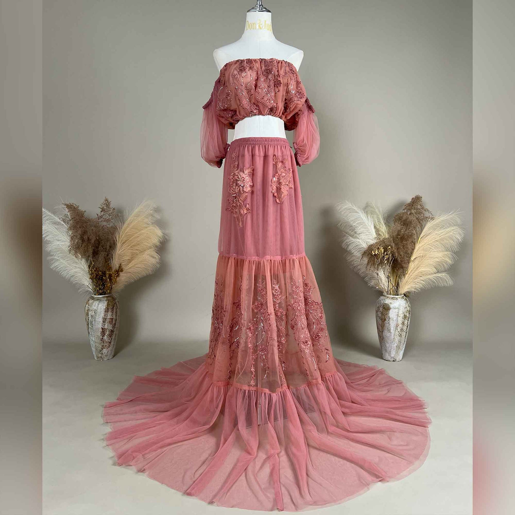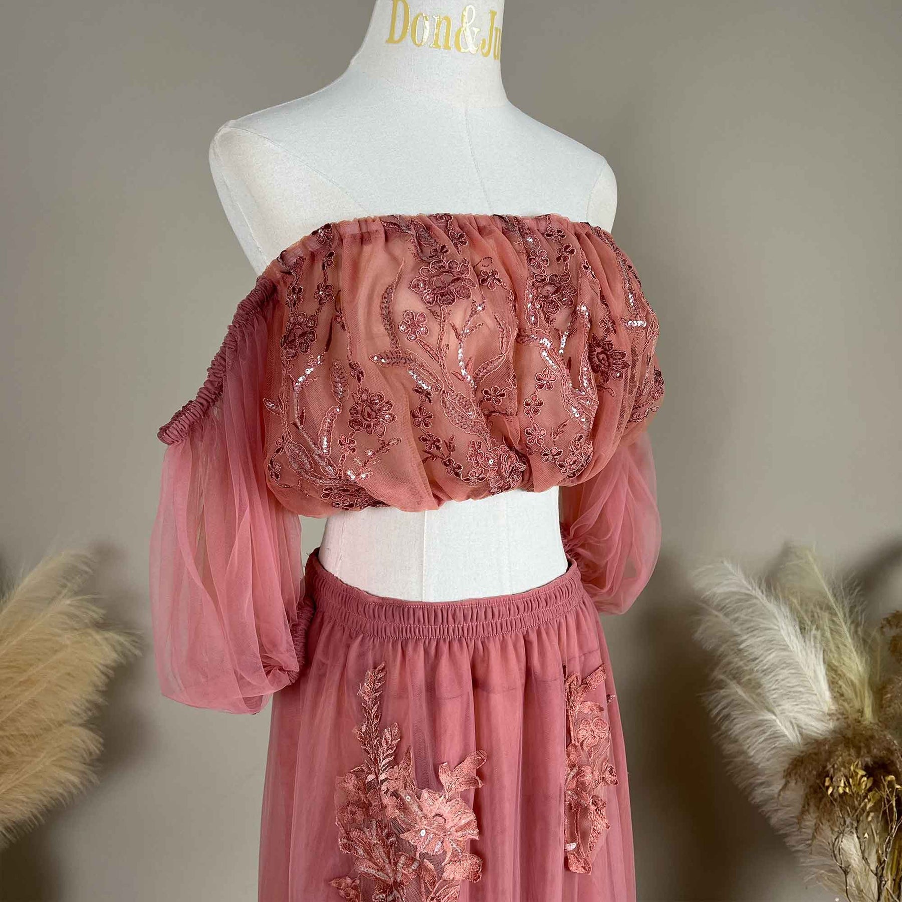 Product name: Tulle Embroidered 2-piece Top and Skirt Set Maternity or Non-maternity Gown Party Dresses for Photography Props Baby Shower Photo Props