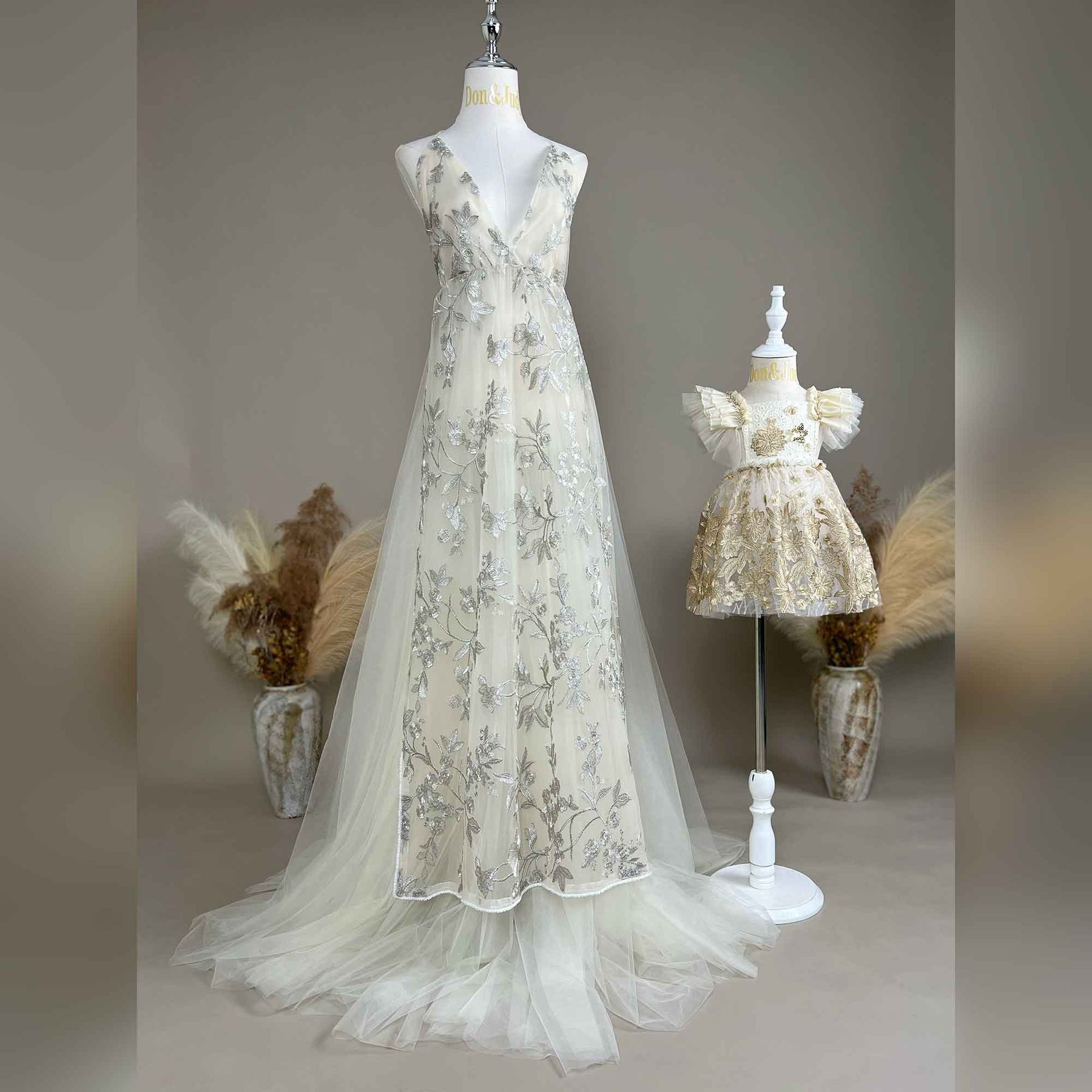 Product name: Elegant White Mommy & Me Tulle Dress Set – Matching Outfits for Baby Shower Photoshoot & Photography Props