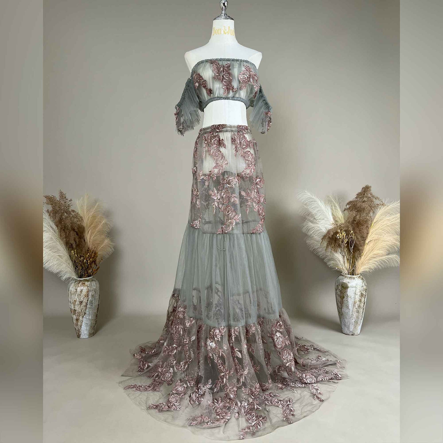 Product name: Embroidered Tulle 2-piece Dresses Maternity or Non-maternity Gown Party Dresses for Photography Props Baby Shower Photo Props