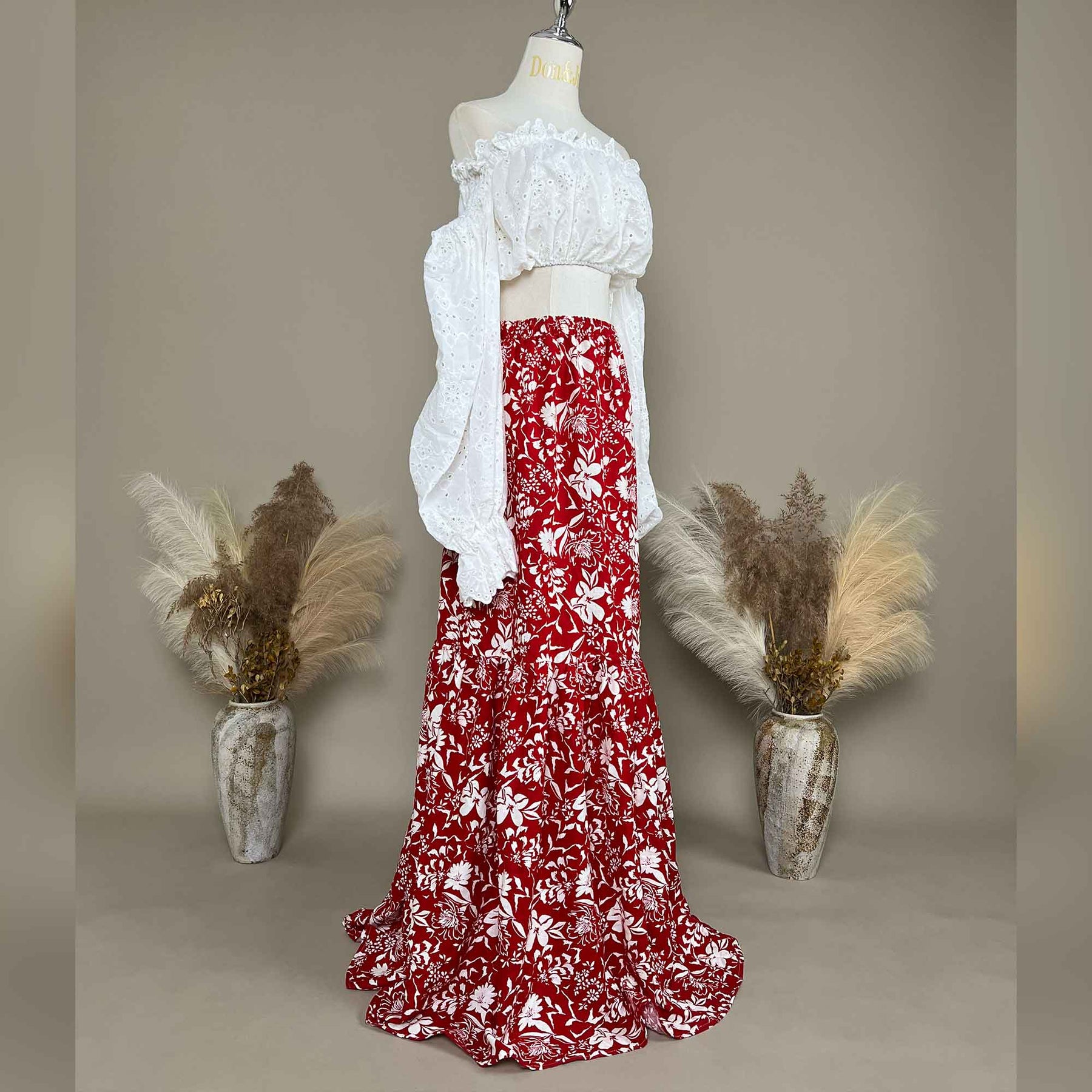 Product name: White and Red Two-piece Dress Set – Maternity or Non-maternity Gown Dresses for Photography Props & Baby Shower Photoshoot