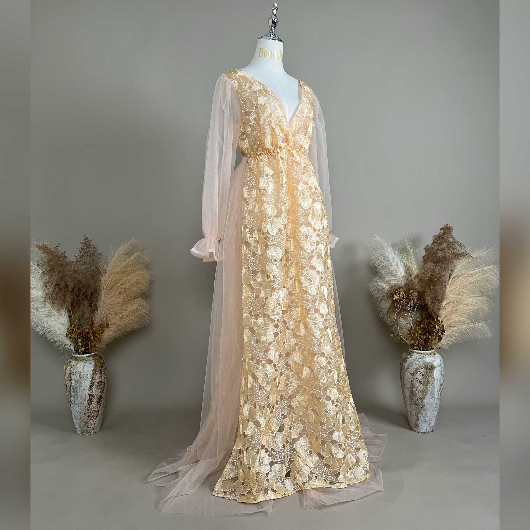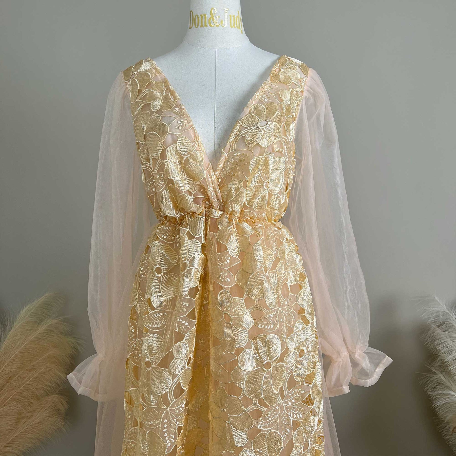 Product name: Floral Hollow-out V-neck Gown – Maternity or Non-maternity Dresses for Photography Props Baby Shower Photo Props