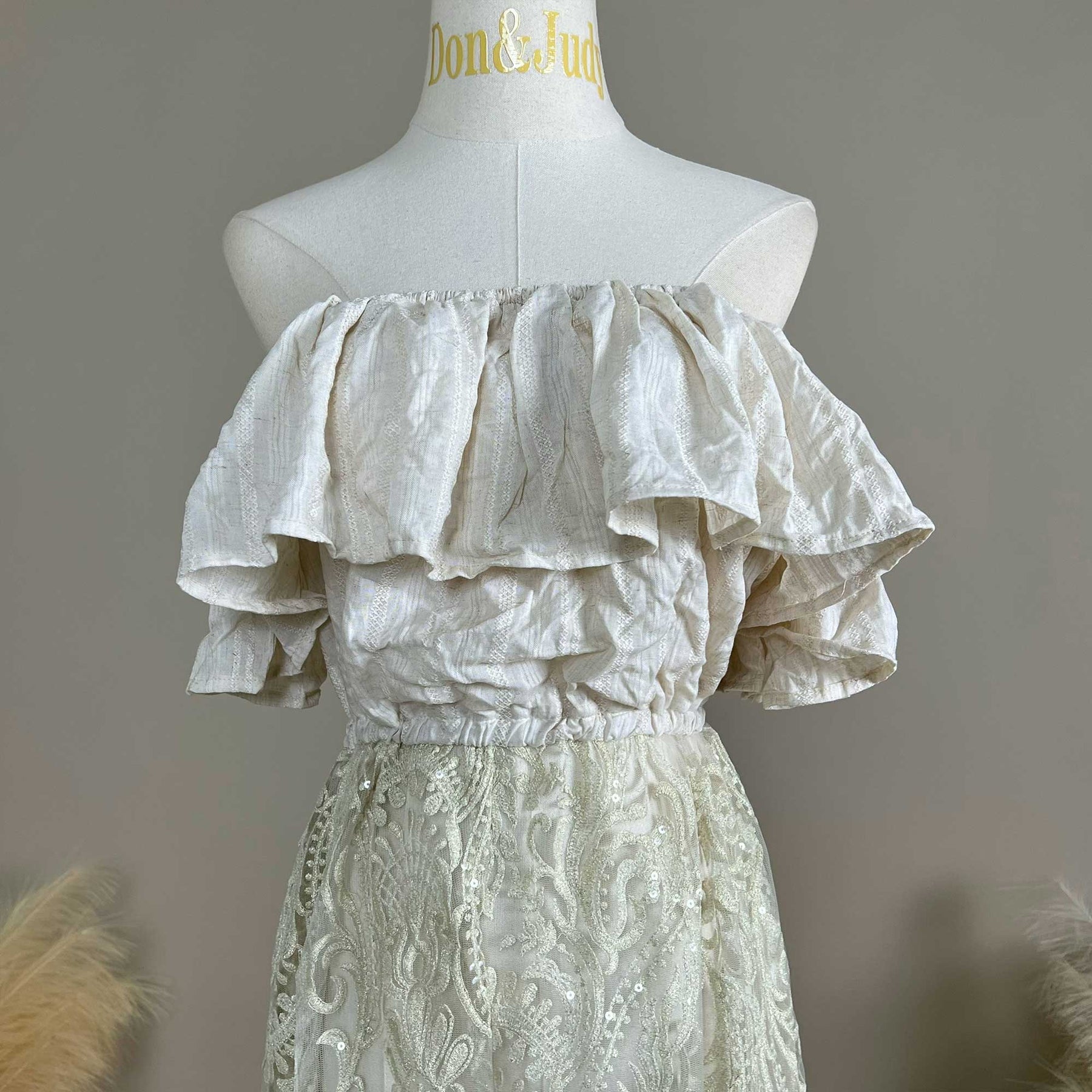 Material : Mesh sequin fabric+Lace+Diamond-embellished cotton fabric
