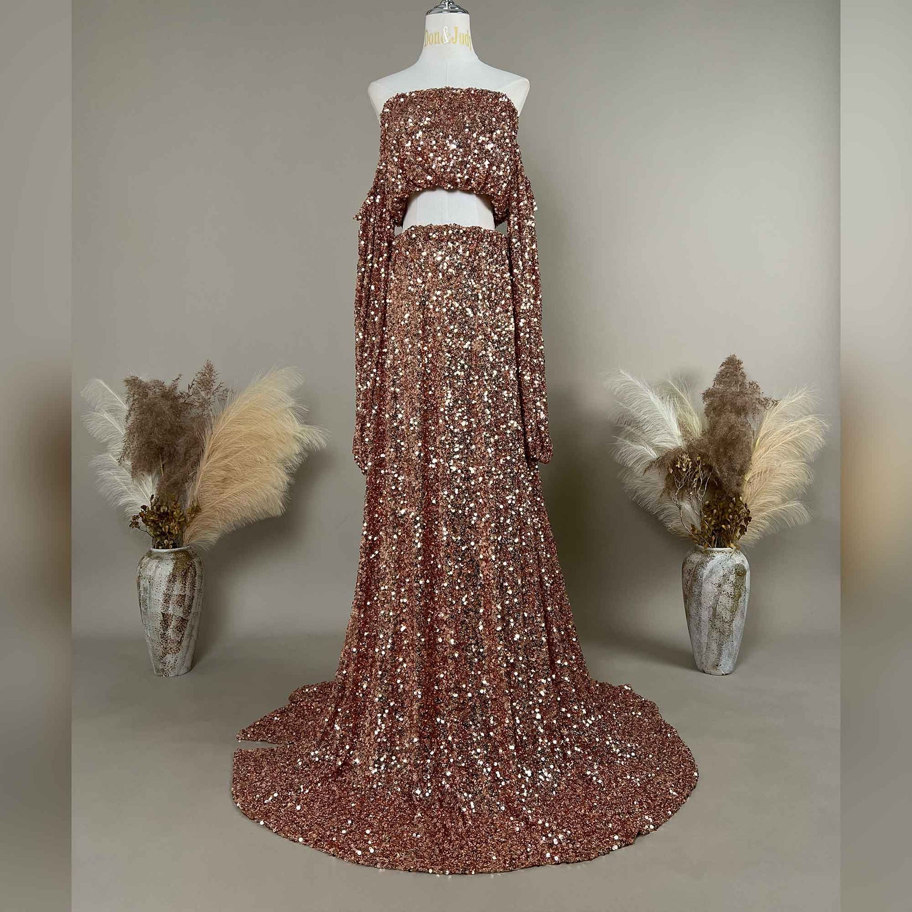Product name: Stretch Sequin Two-Piece Set with Side Slit Maternity or Non-maternity Gown for Photoshoot Baby Shower