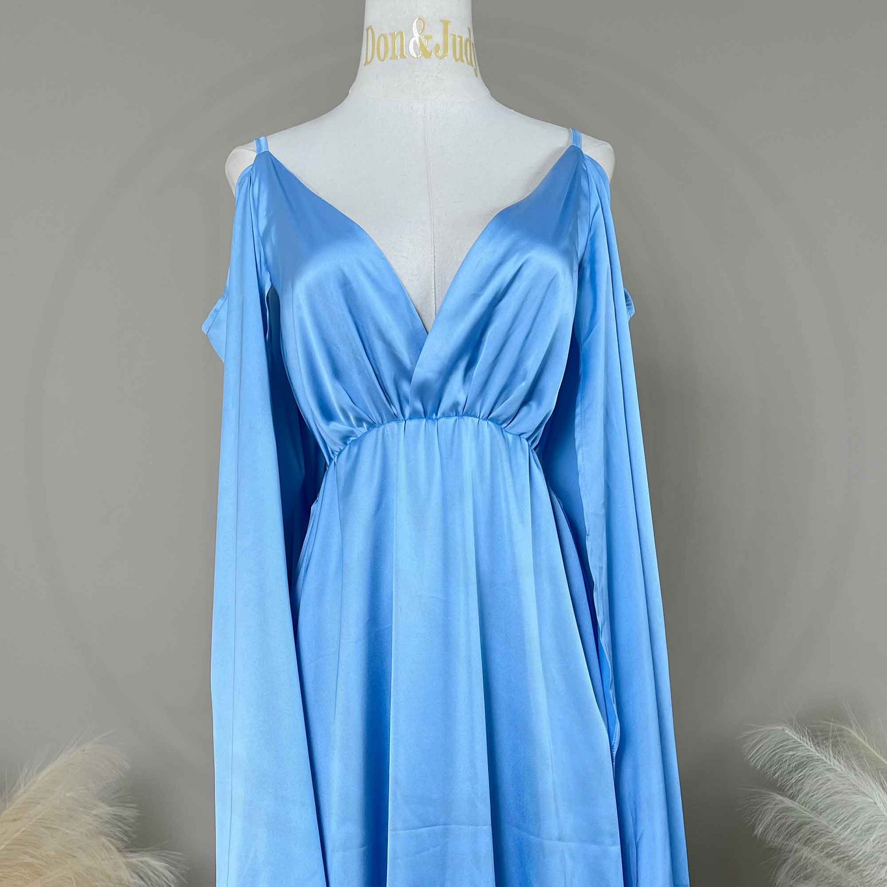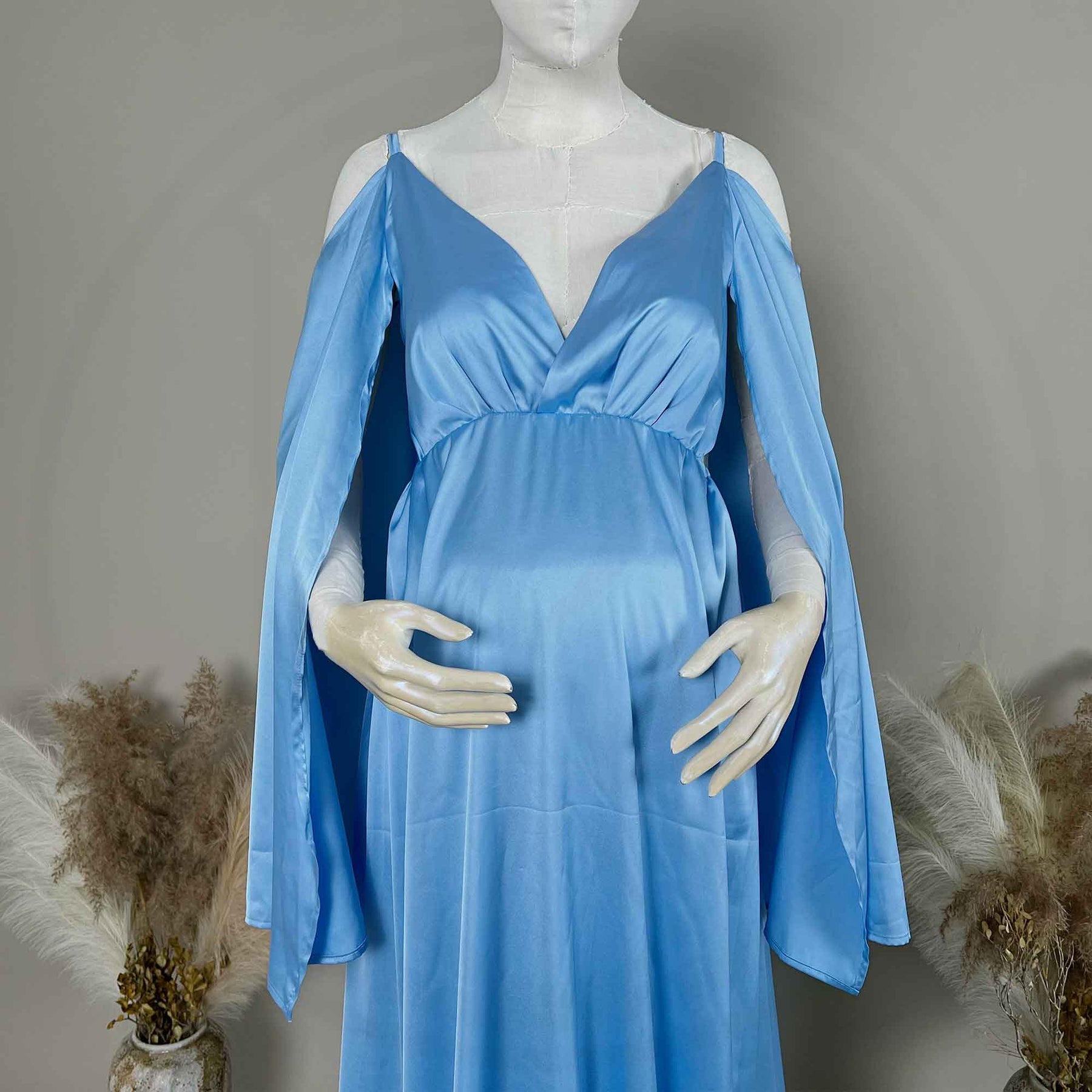 Product name: Sim Silk V-Neck Sleeveless Camisole with Open Sleeves and Side-Slit Skirt Maternity Gown Pregnant Dress Photoshoot Baby Shower