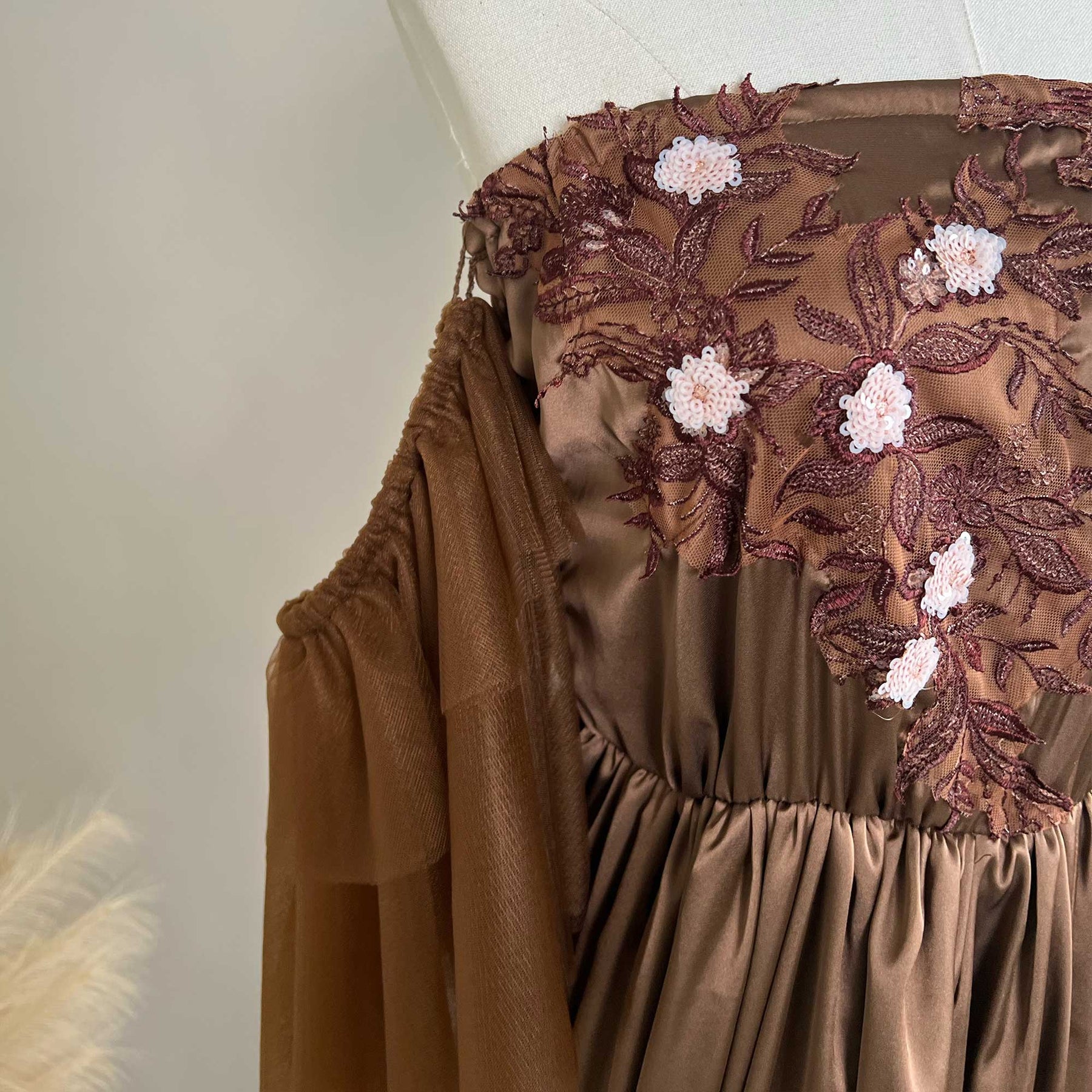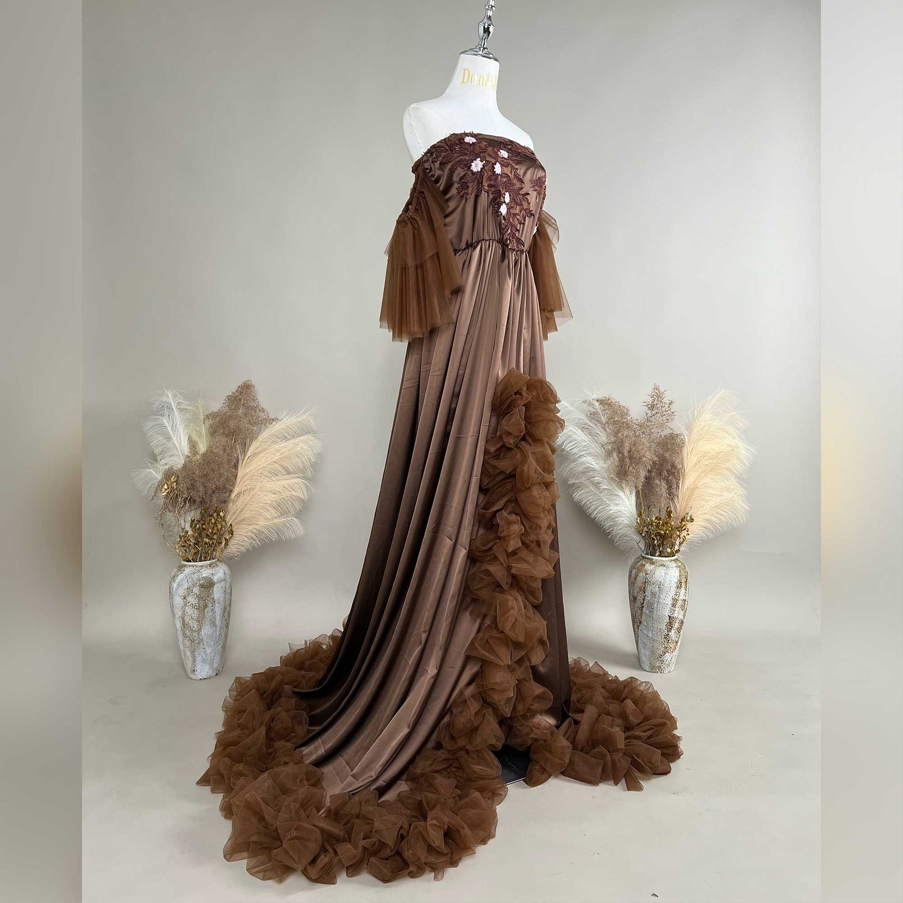 Product name: Brown Strapless Gown – Maternity or Non-maternity Dresses for Photography Props Baby Shower Photo Props