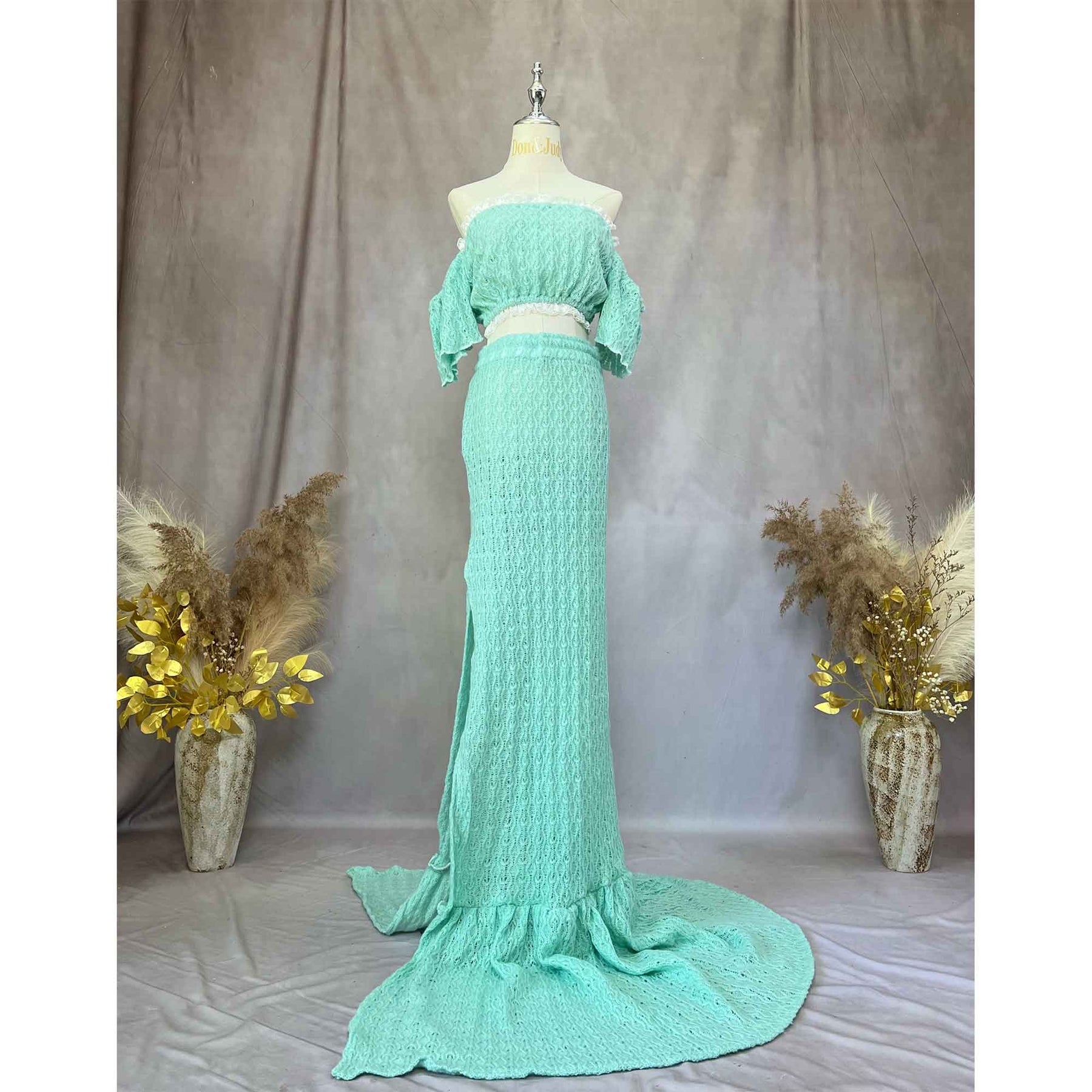 Product name: Bright Off-Shoulder Two-Piece Set – Maternity or Non-maternity Dresses for Photography Props Baby Shower Photo Props