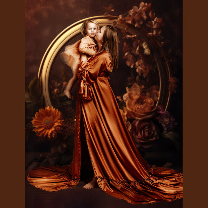 Photo Shoot Free Size Silky Smooth and Soft Maternity Gown Evening Party Dresses Pregnant Costume Like Satin Gown for Women Photography Props Baby Shower Robe