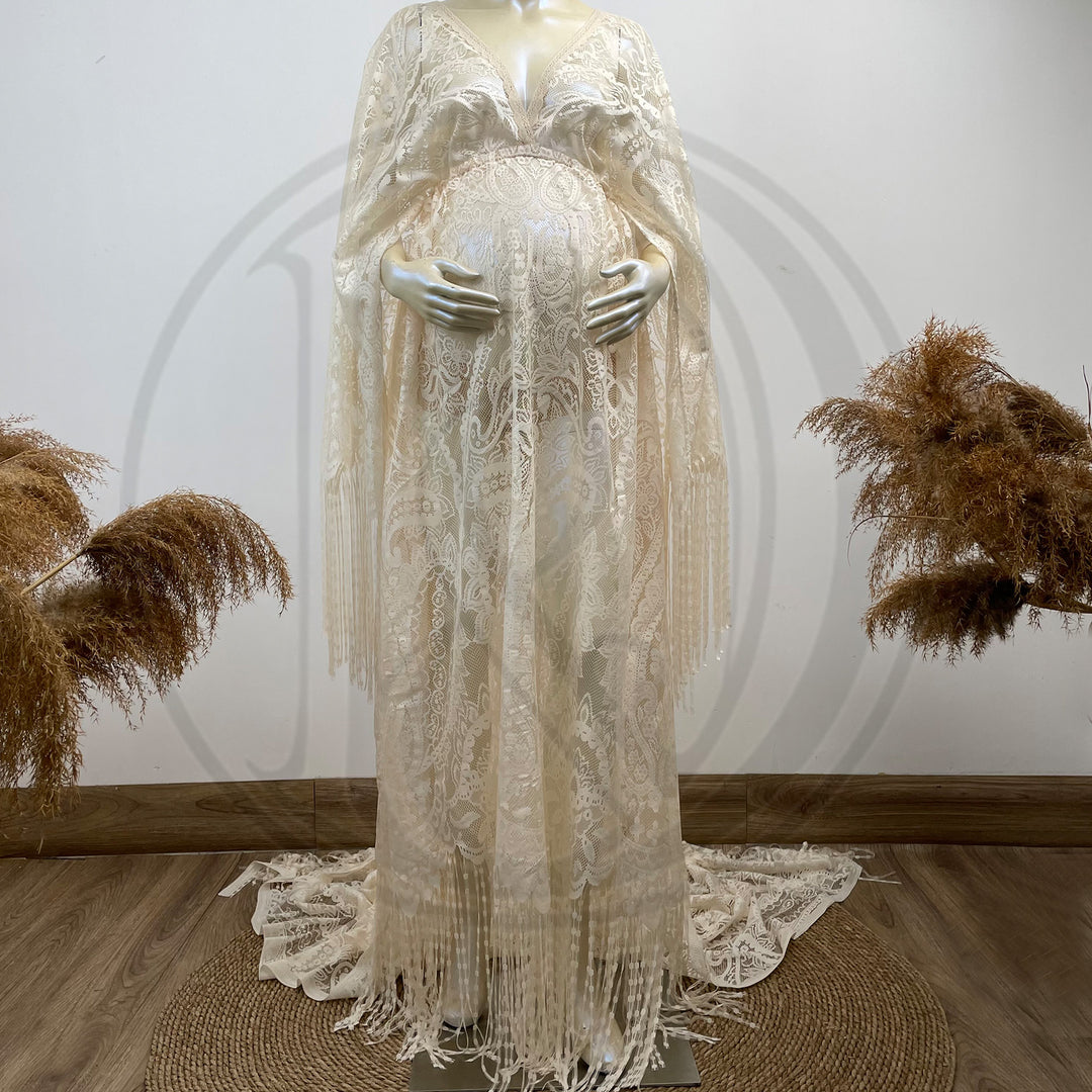 Product name: Boho Lace Mommy Gown with Matched Little Gilrs Dress Set Pregnancy Photography Dresses Bohemia Maxi Gown Photo Shoot Prop
