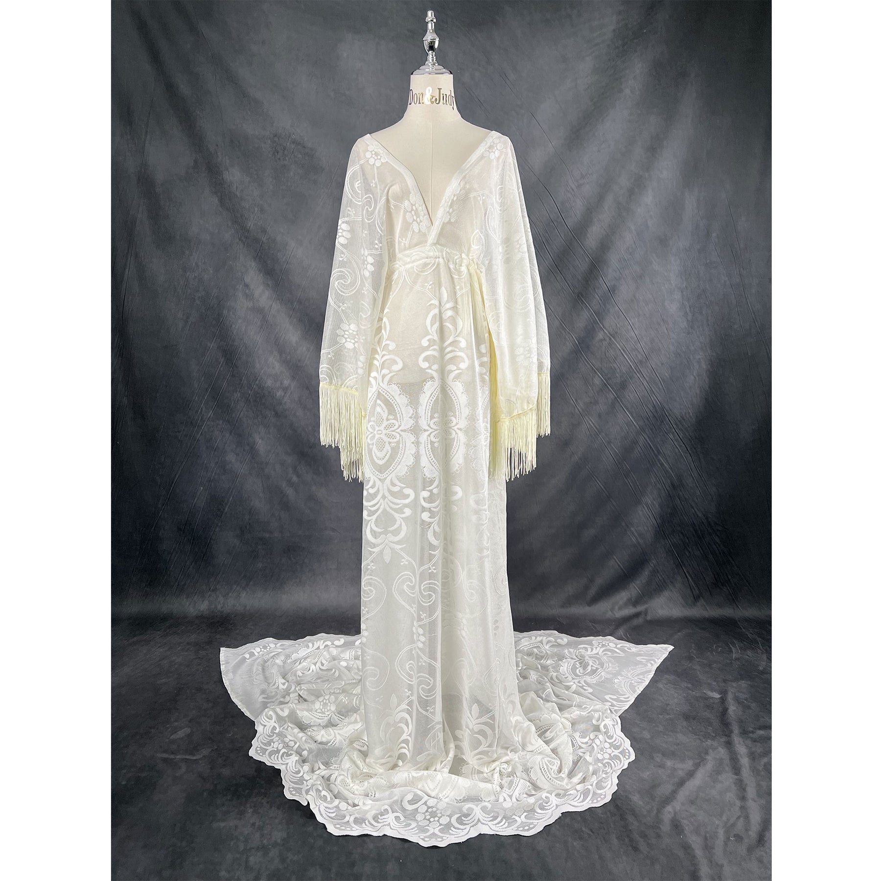 Product name: Boho Long Sleeve Maternity Gown Photography Dress with Long Tassels Party Dresses Baby Shower Photo Props Kaftan Robe Maternity Couture for Photo Shoot