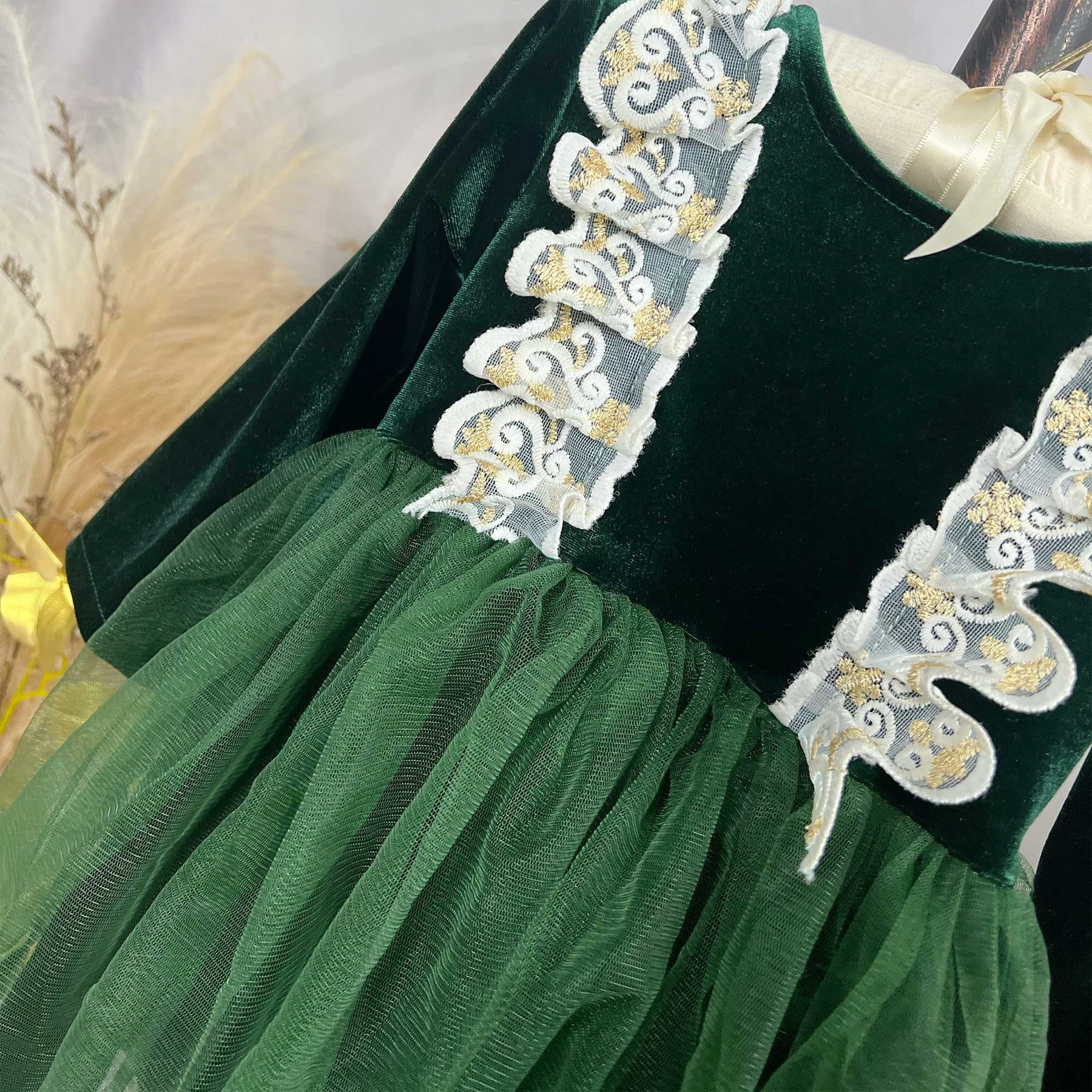 Product name: Green Christmas Velvet Long Sleeves with Tulle Gown 1-6years Little Girls Dress for Photo Shoot Props Photography Accessories