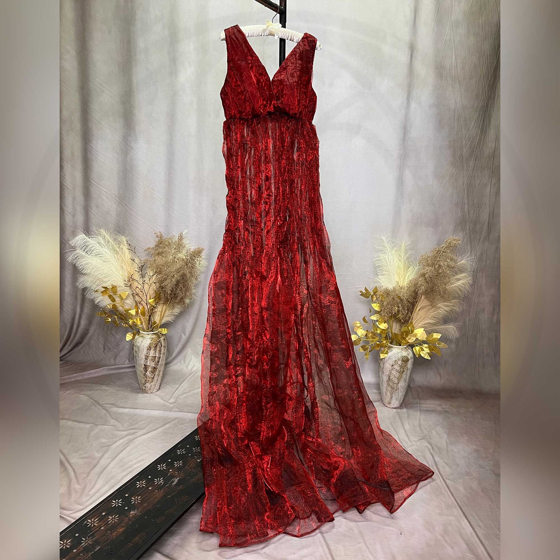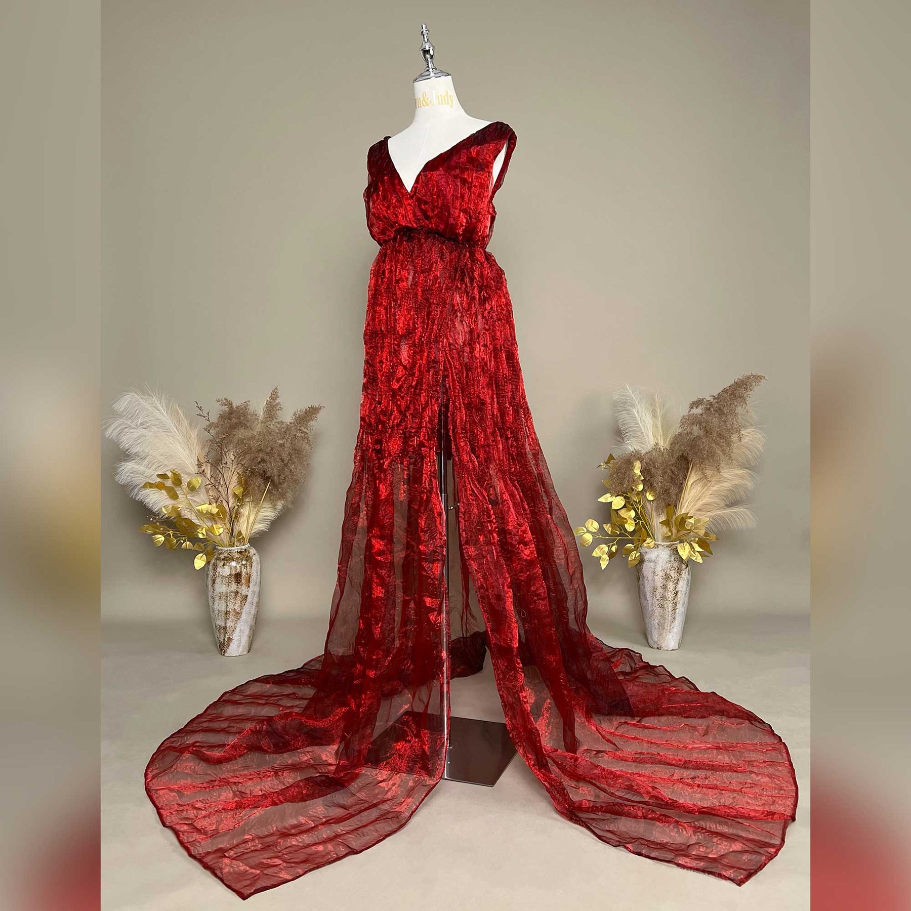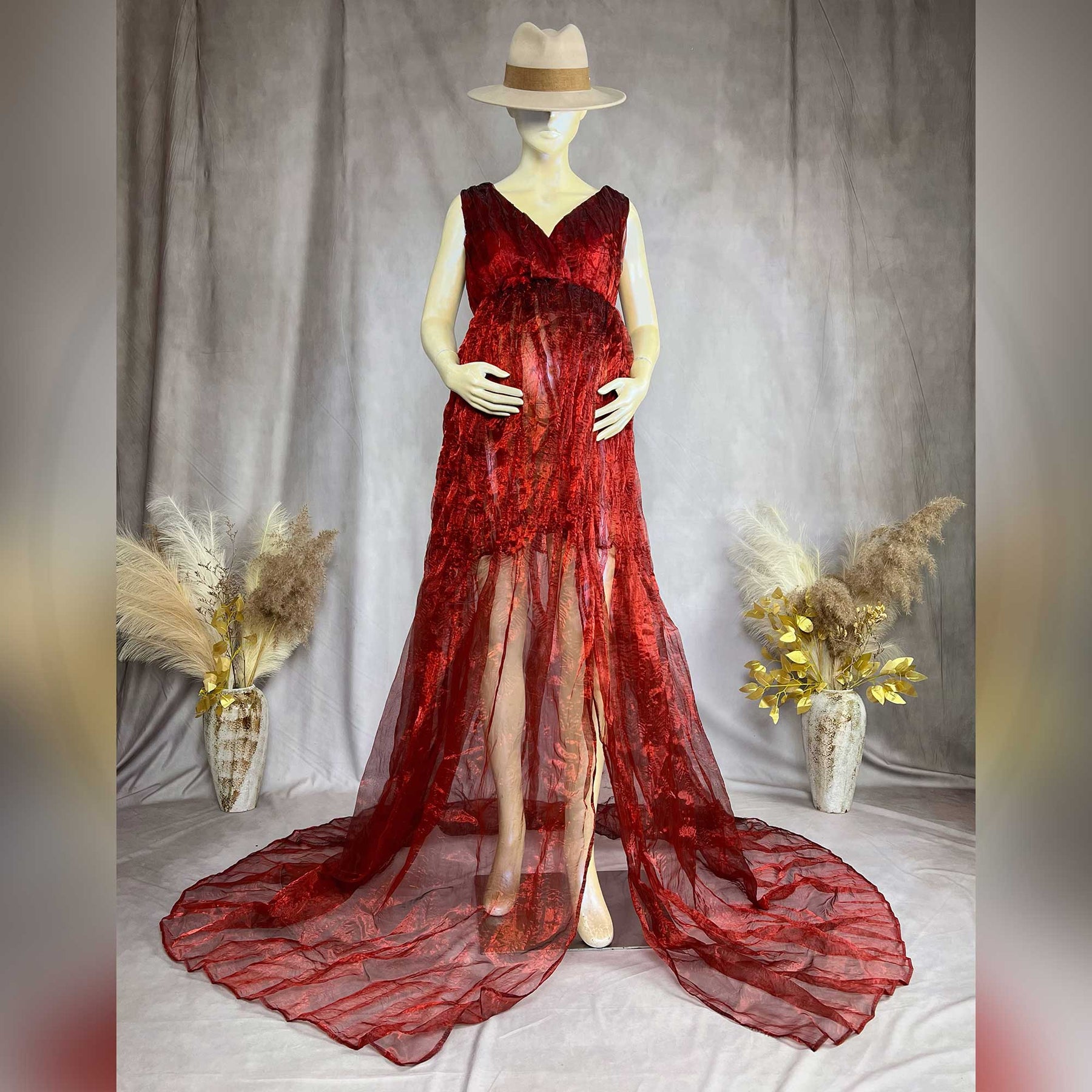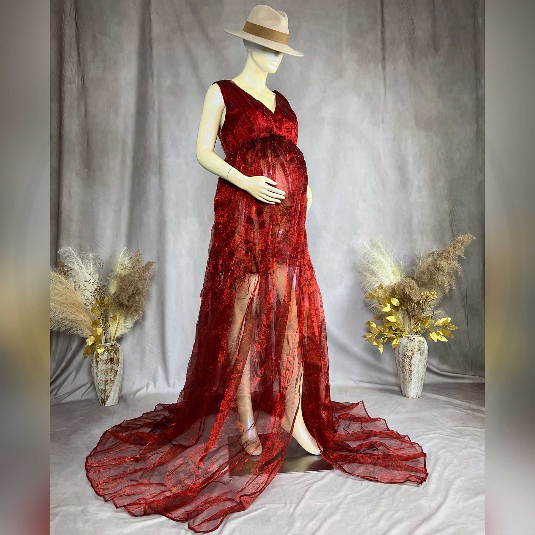 Product name: Red Organza Sleeveless V-neck Maternity or Non-maternity Gown Dresses for Photography Props