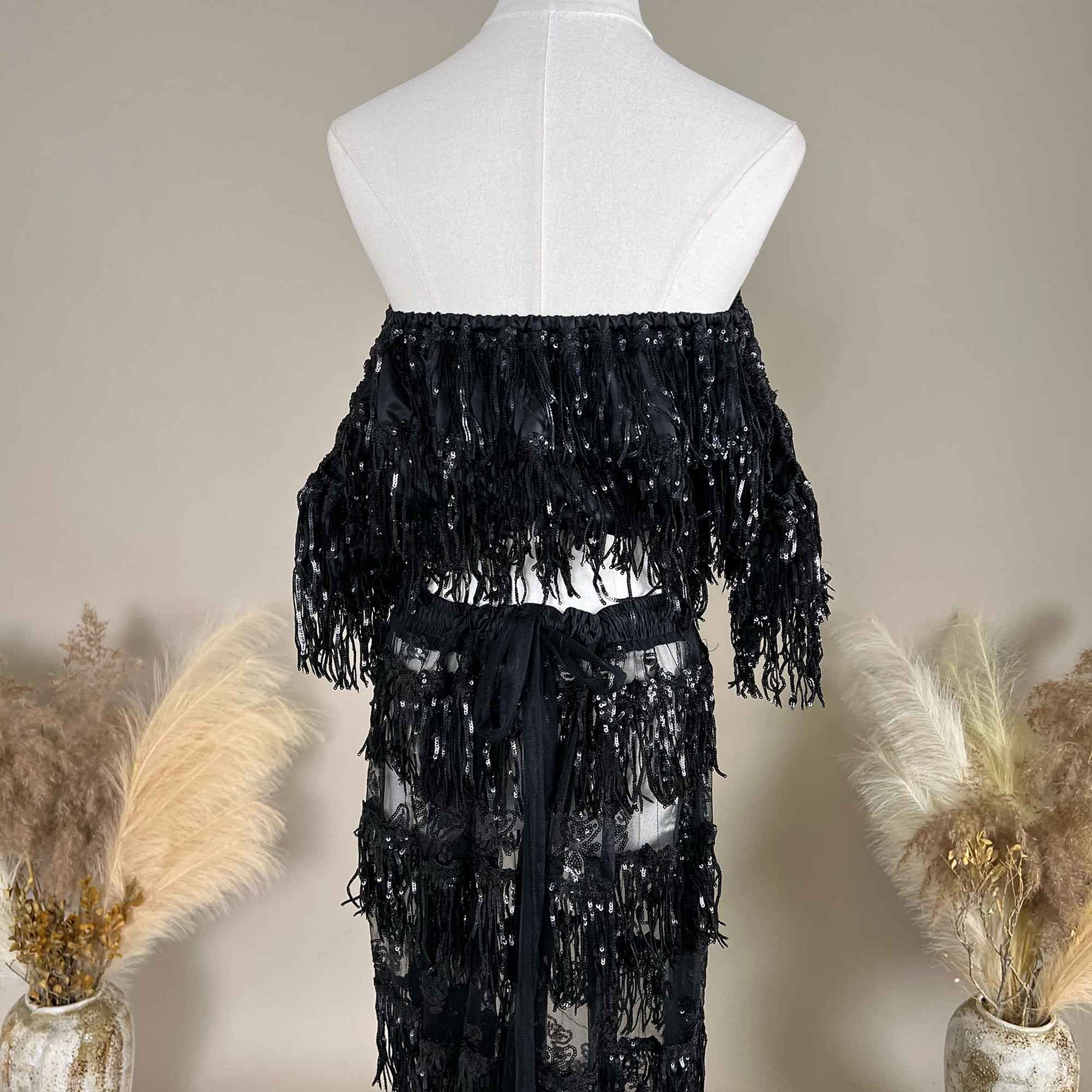 Product name: Black 2-piece Top and Skirt Set Maternity or Non-maternity Gown Party Dresses for Photography Props Baby Shower Photo Props