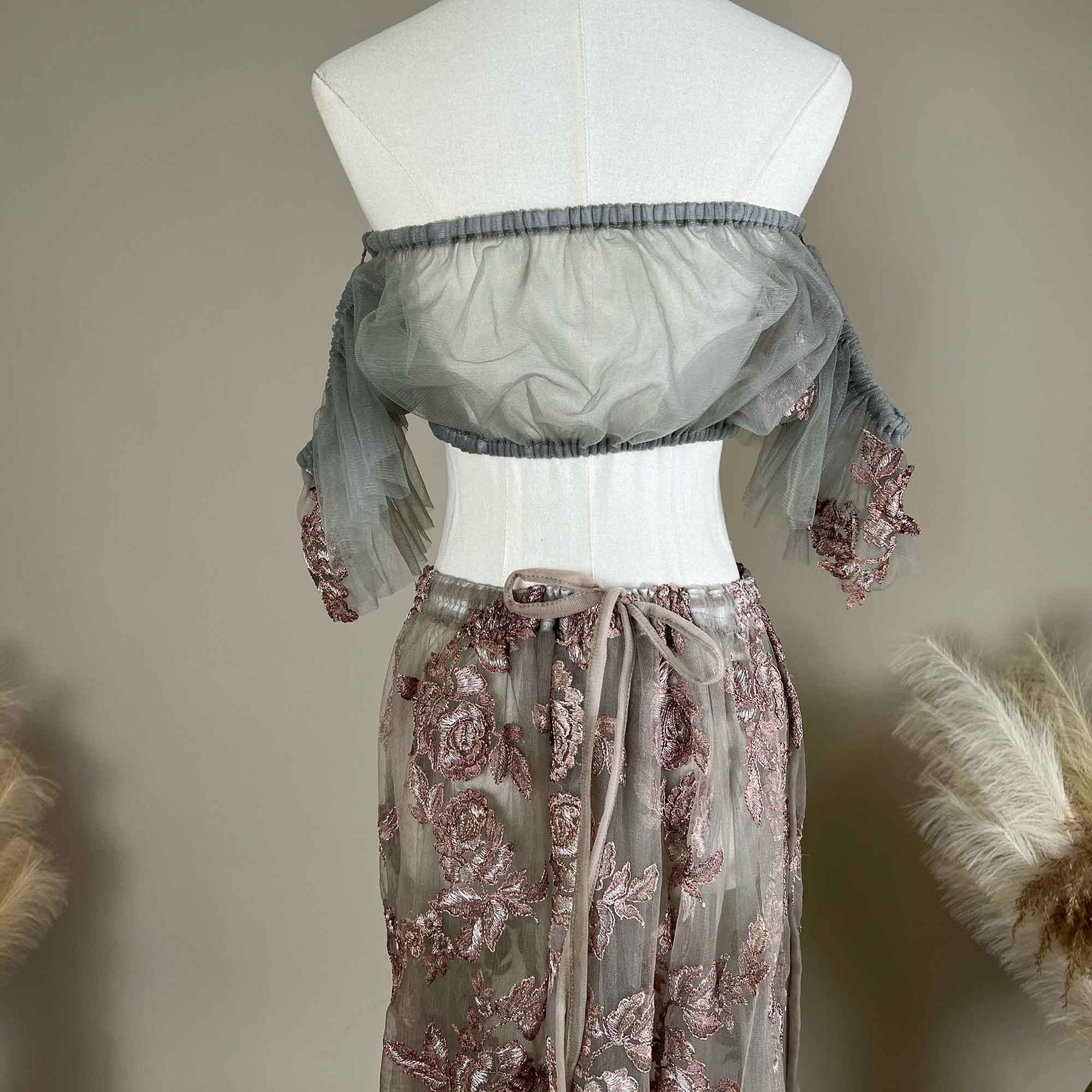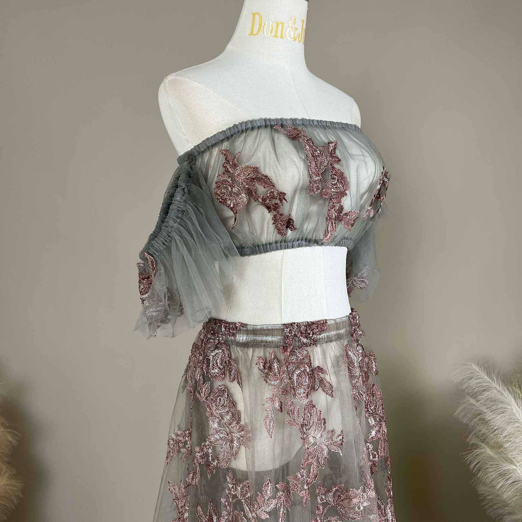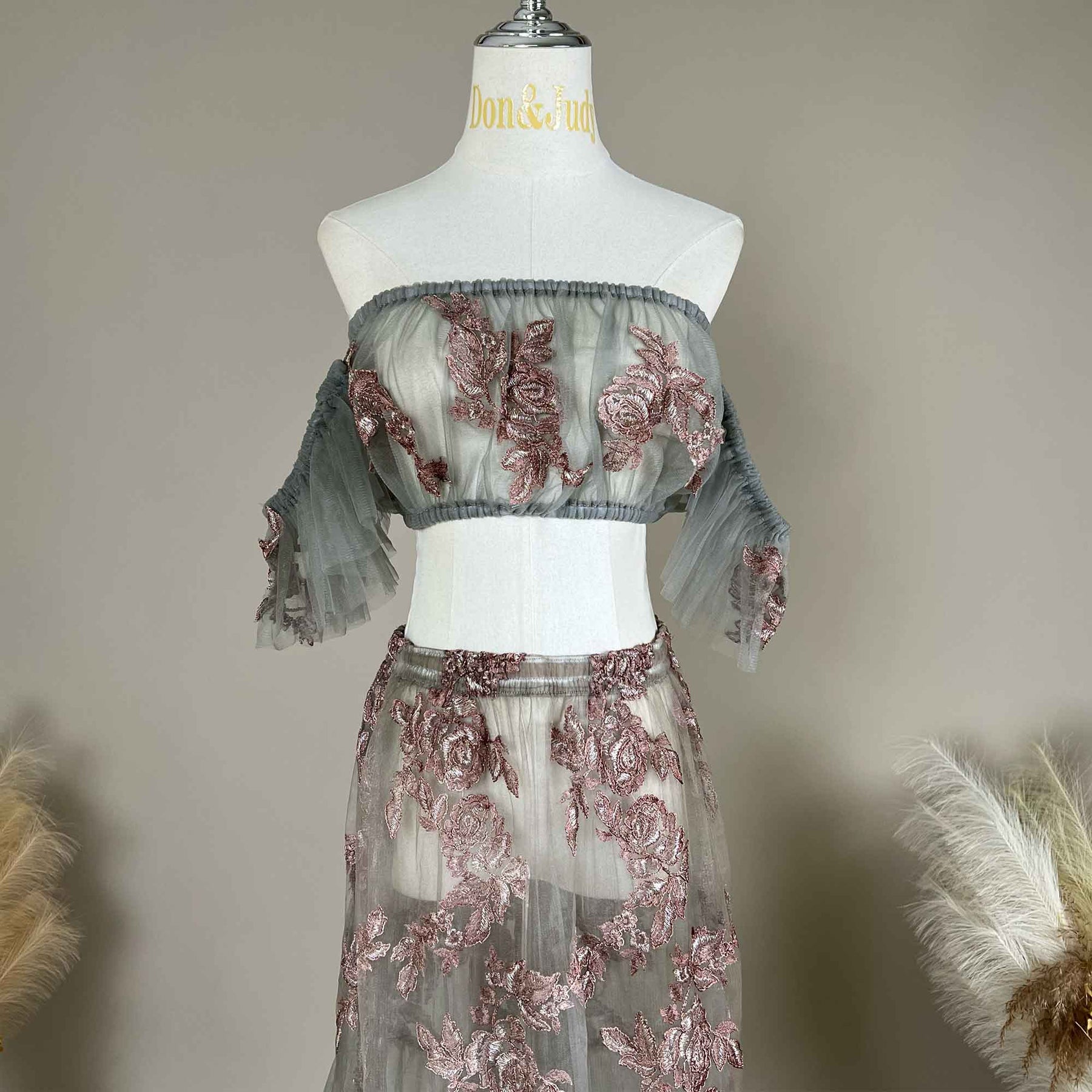 Product name: Embroidered Tulle 2-piece Dresses Maternity or Non-maternity Gown Party Dresses for Photography Props Baby Shower Photo Props