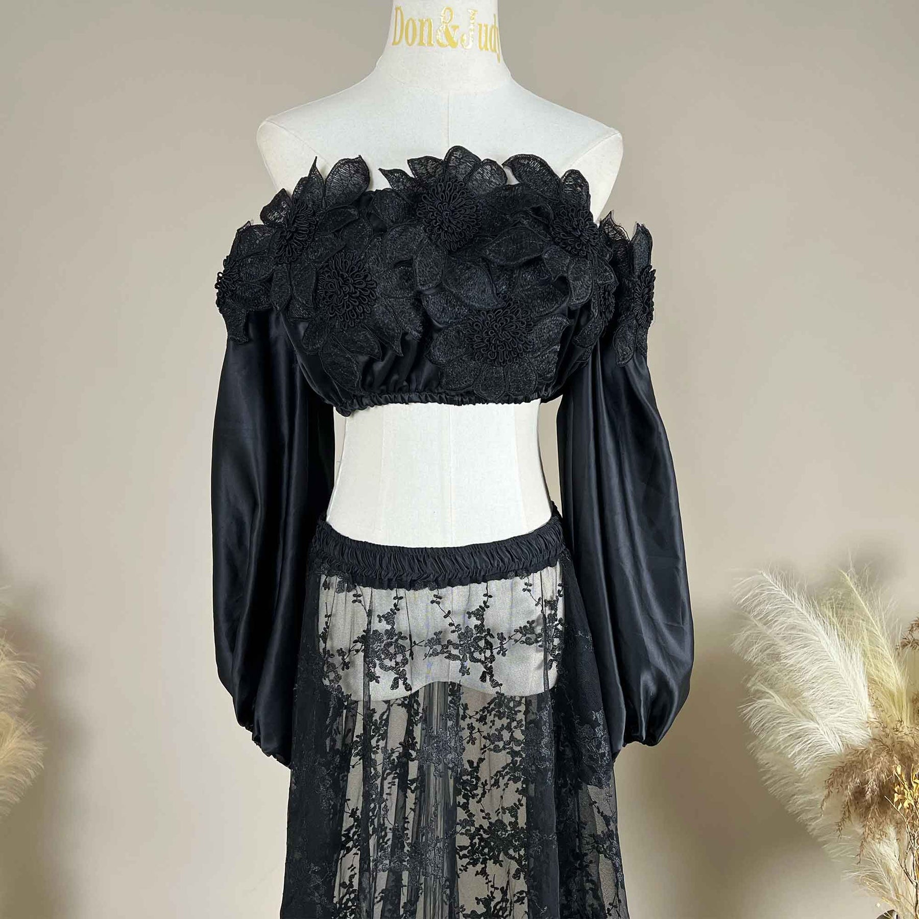 Product name: Halloween Black Sexy Flower Tulle Dresses Maternity or Non-maternity Gown Party Dresses for Photography Props Baby Shower Photo Props
