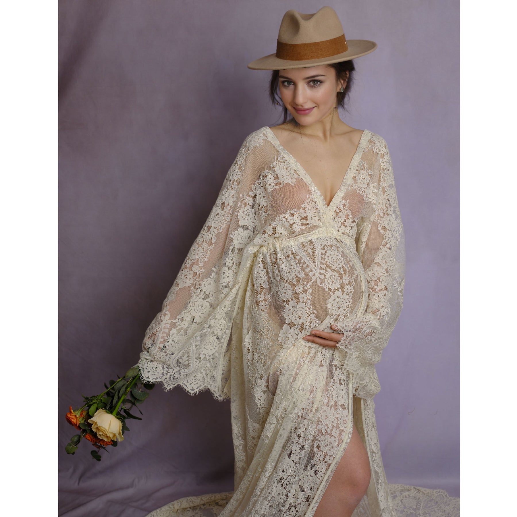 Product name: Boho Beige Lace V-neck Maternity Or Non-Maternity Gown Photoshoot Props Pregnancy Dresses Baby Shower Gifts Plus Size