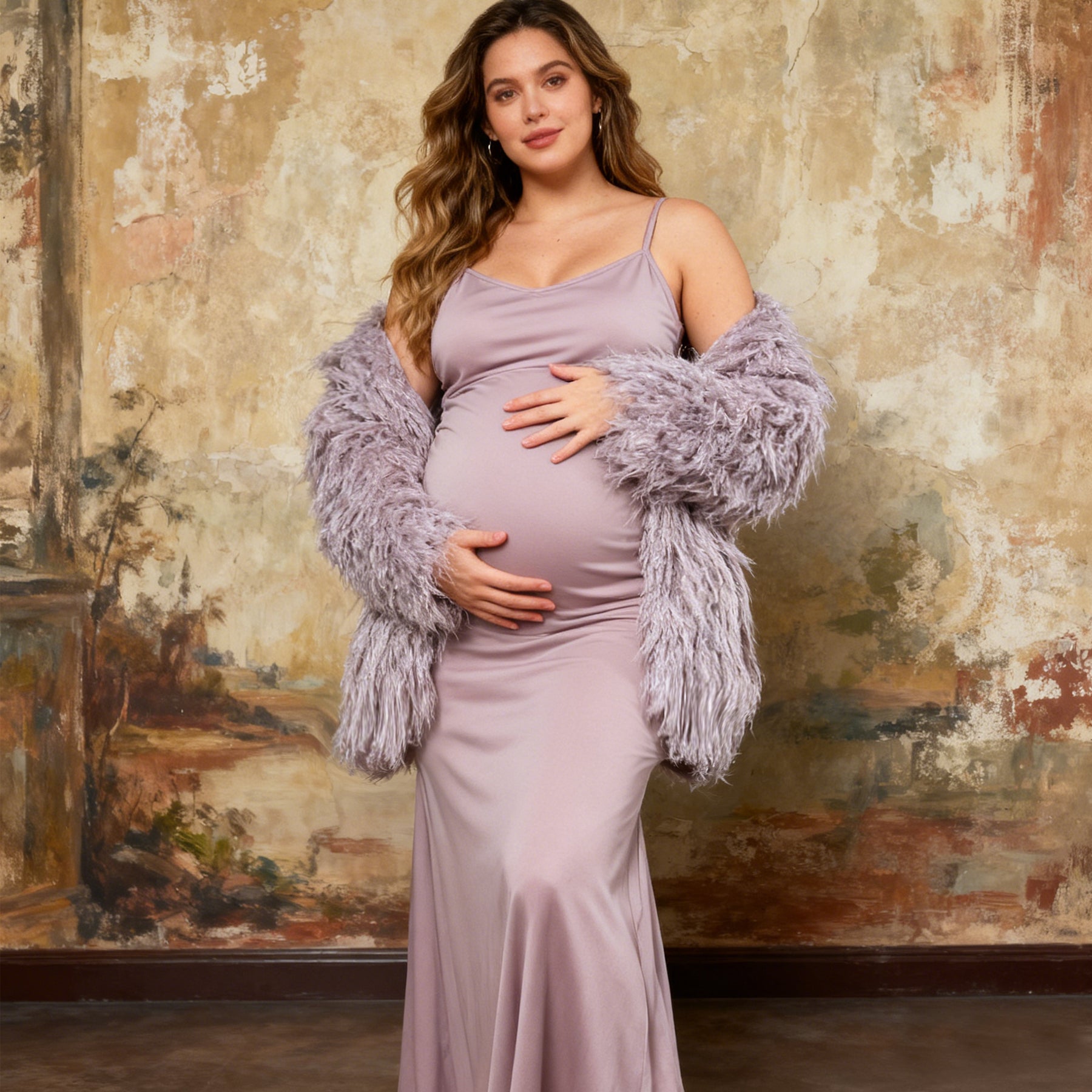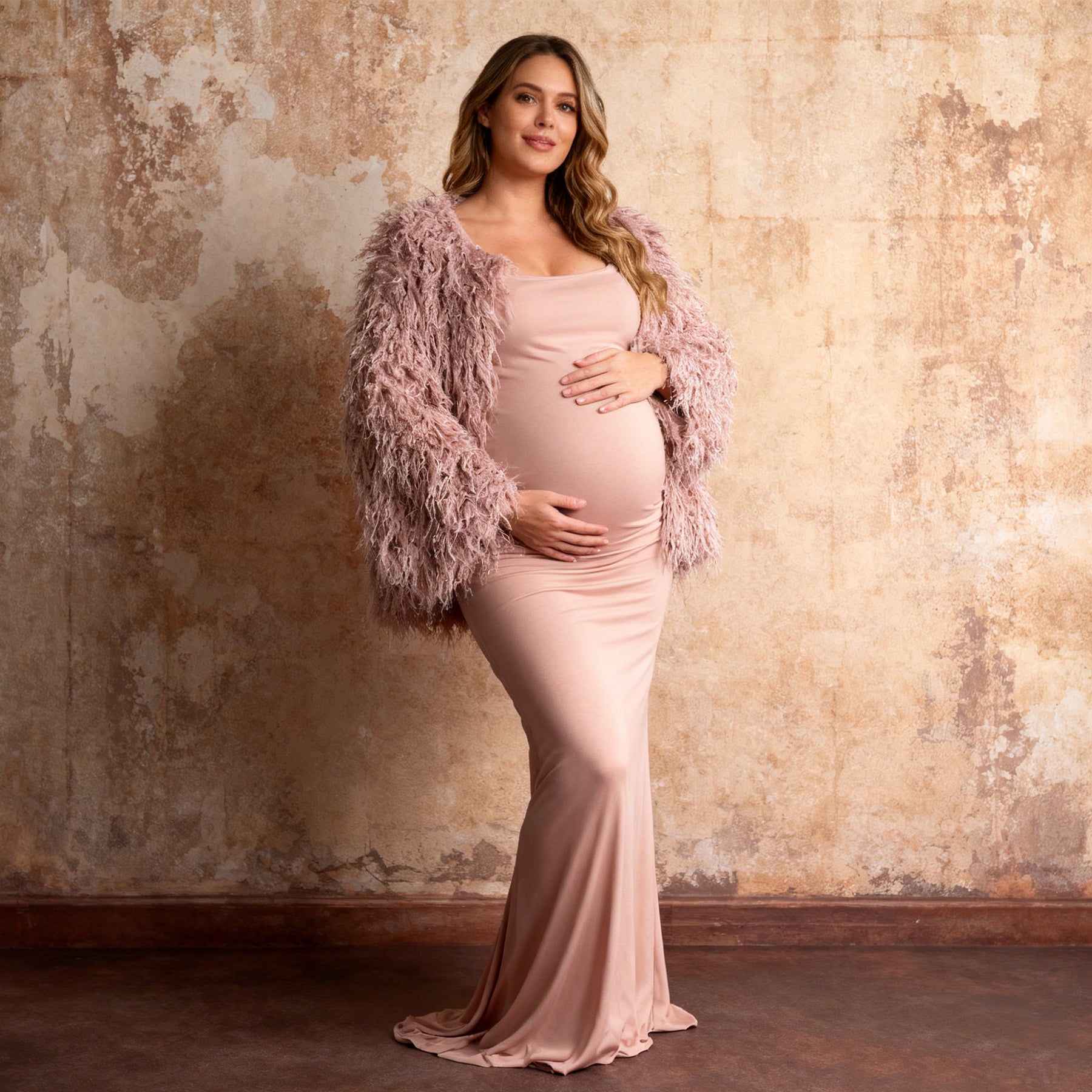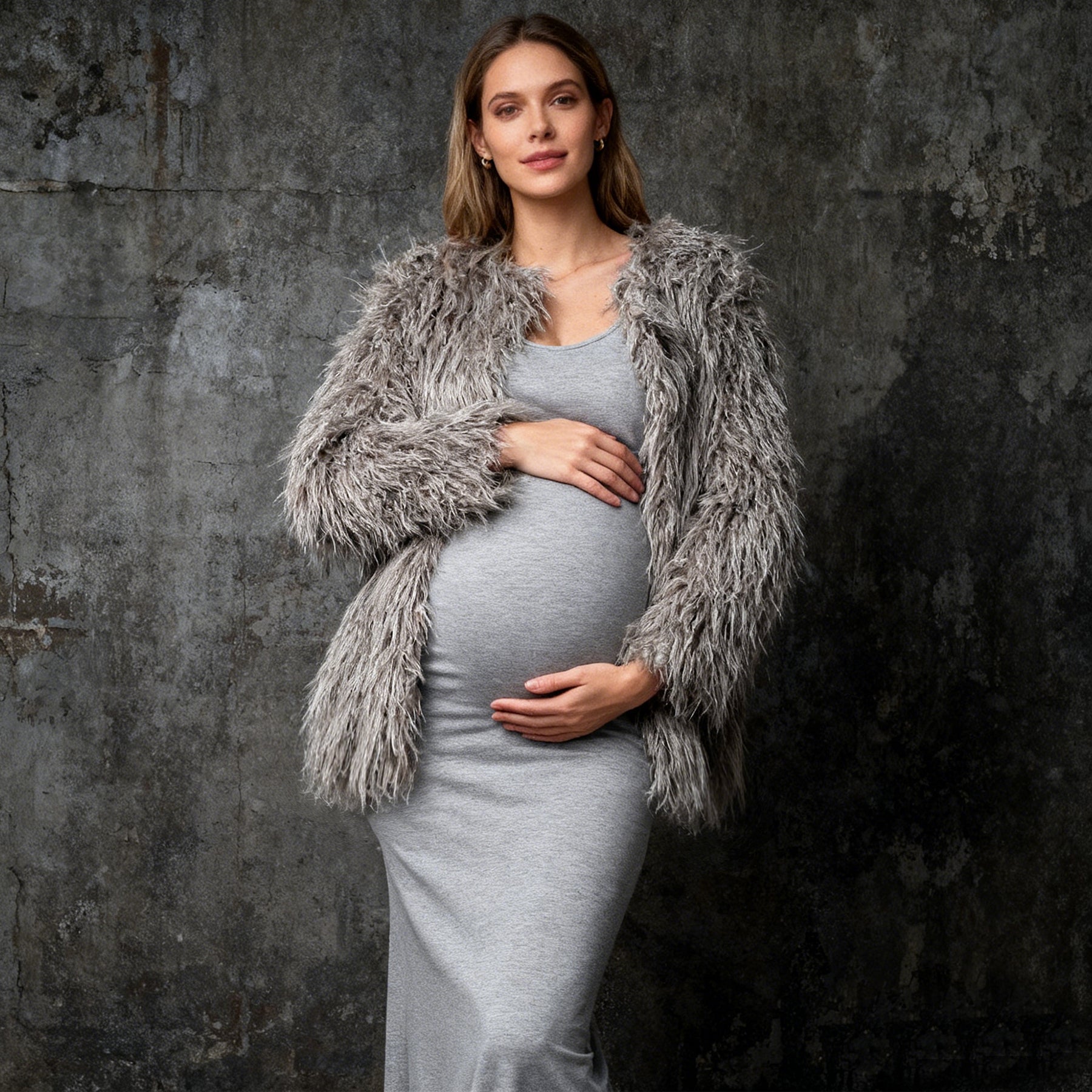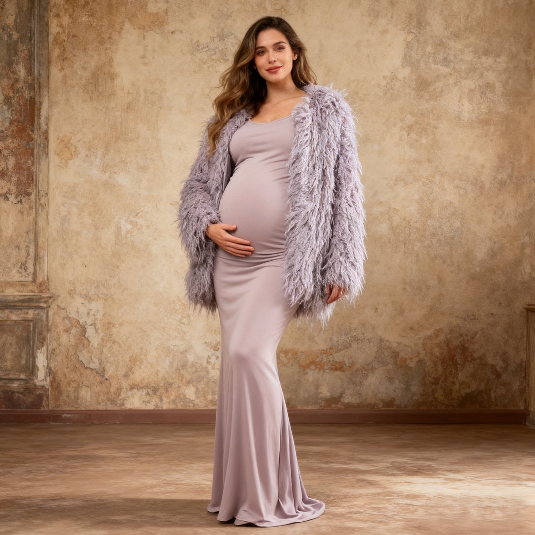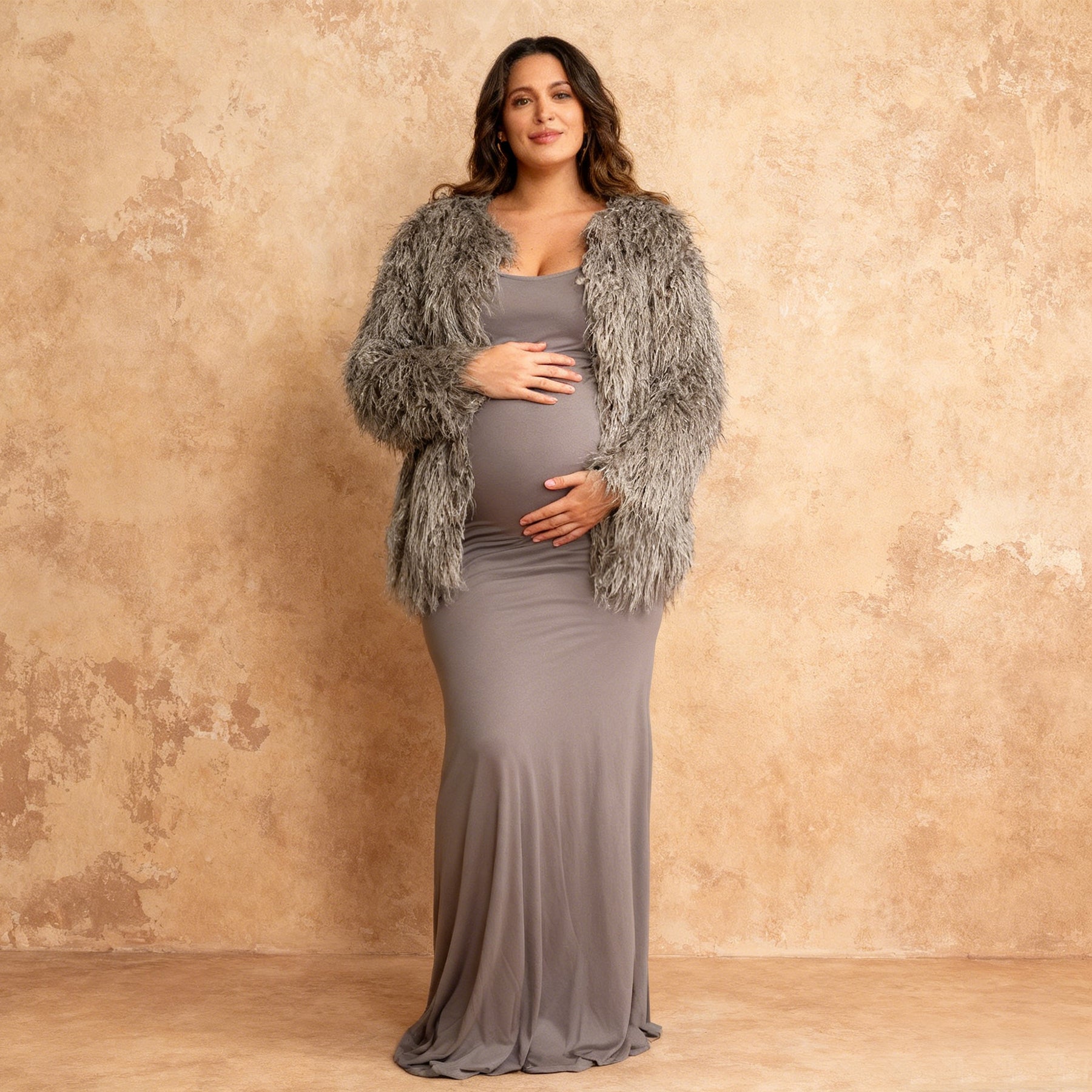 Product name: Faux Mongolian Fur Coat for Maternity or Non-maternity Winter Photoshoot Props