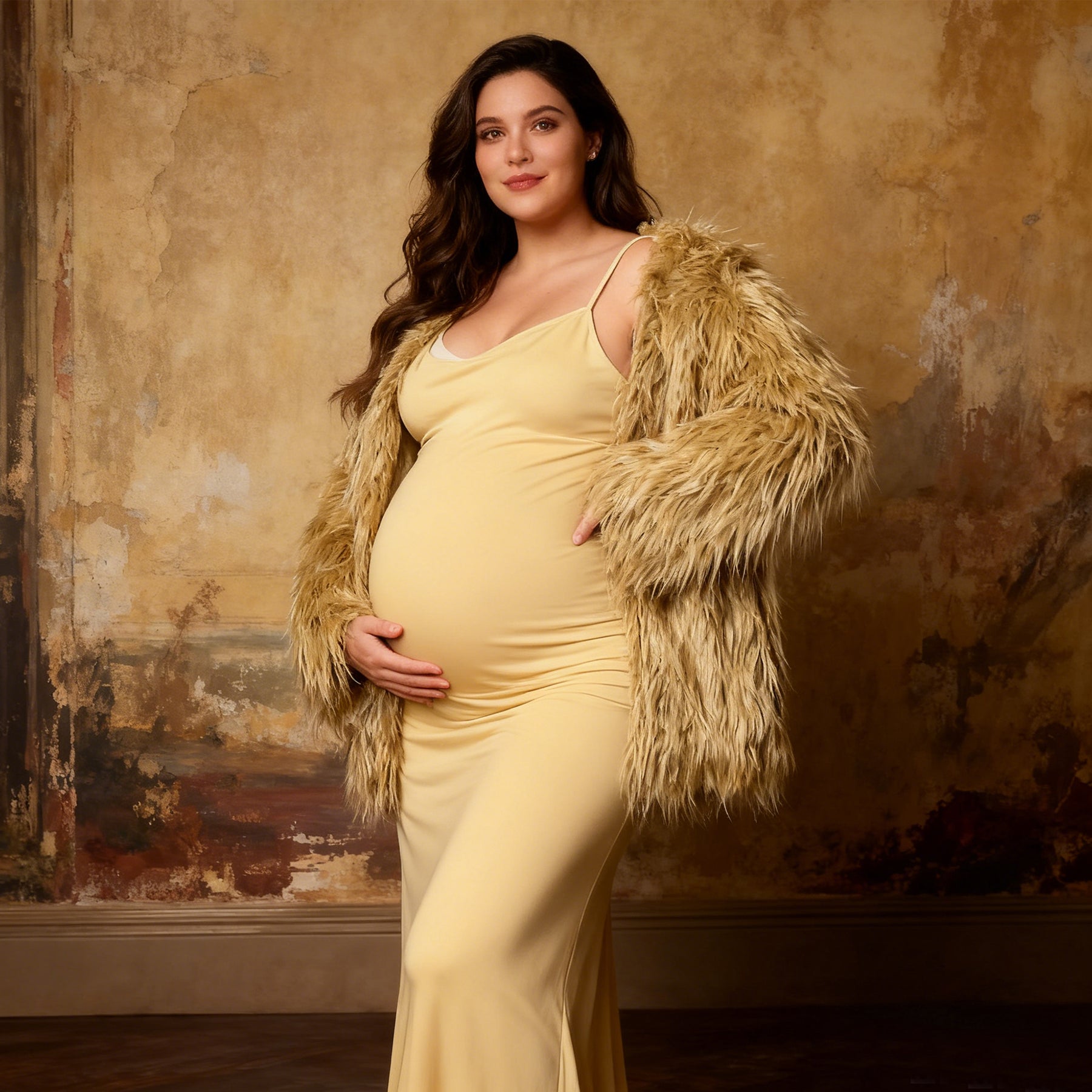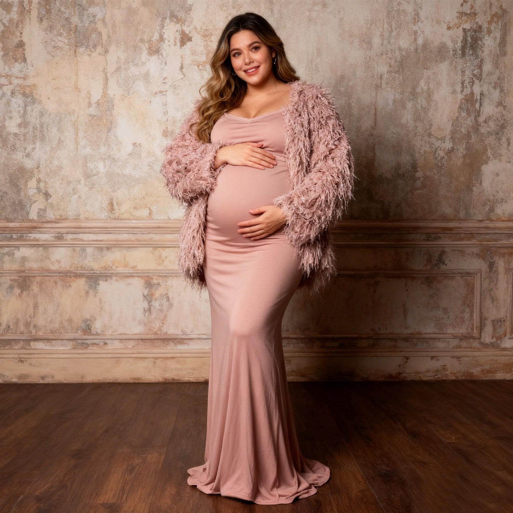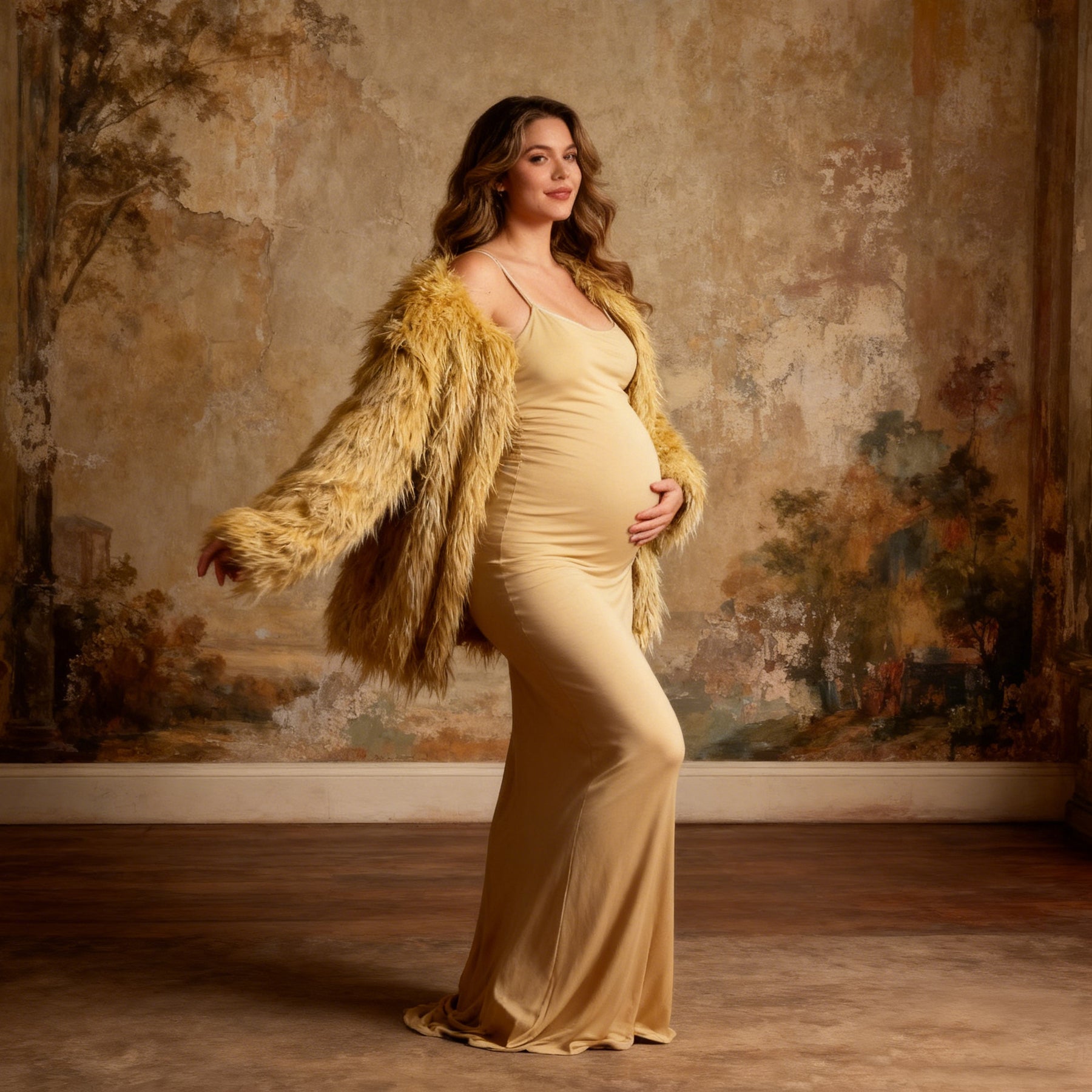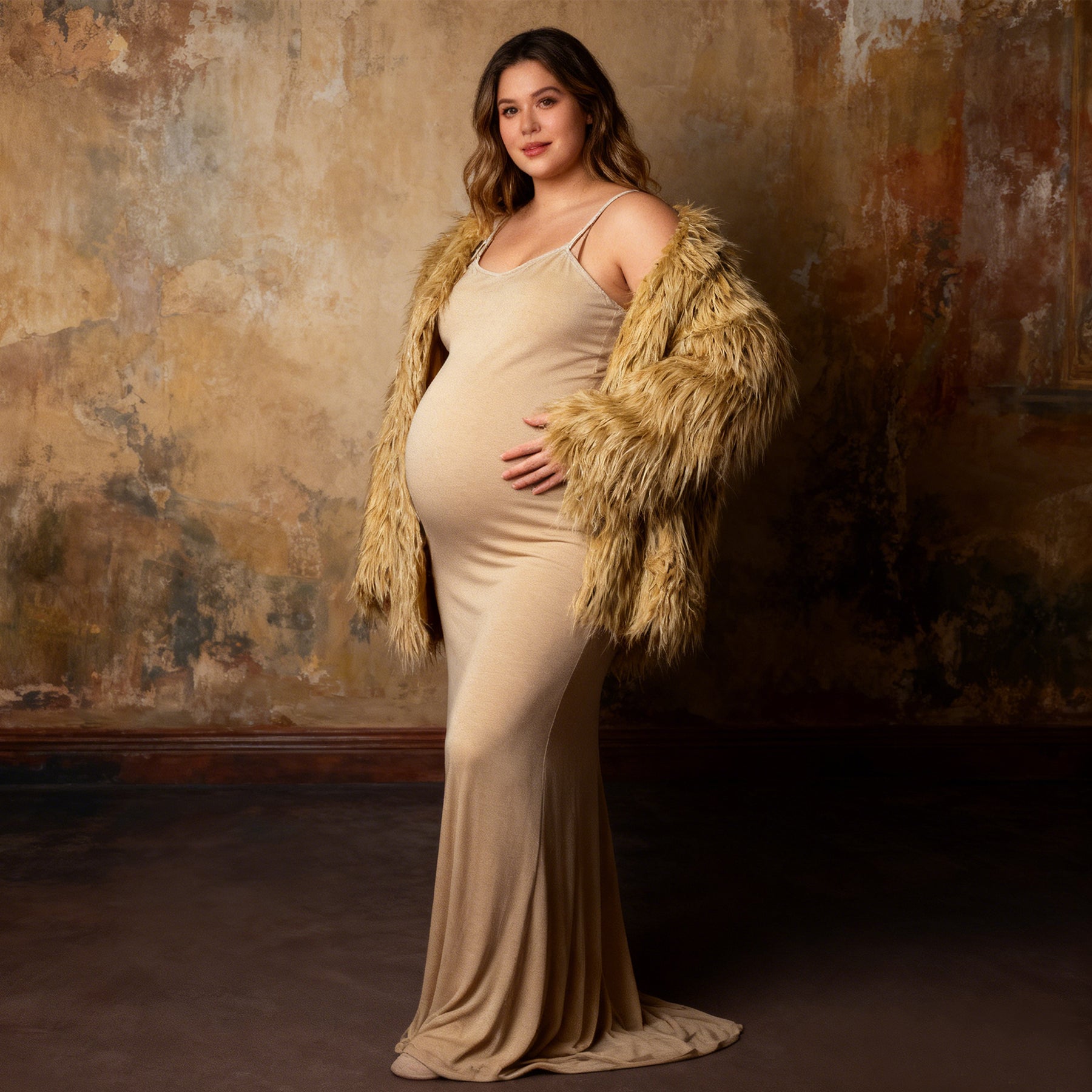 Product name: Faux Mongolian Fur Coat for Maternity or Non-maternity Winter Photoshoot Props