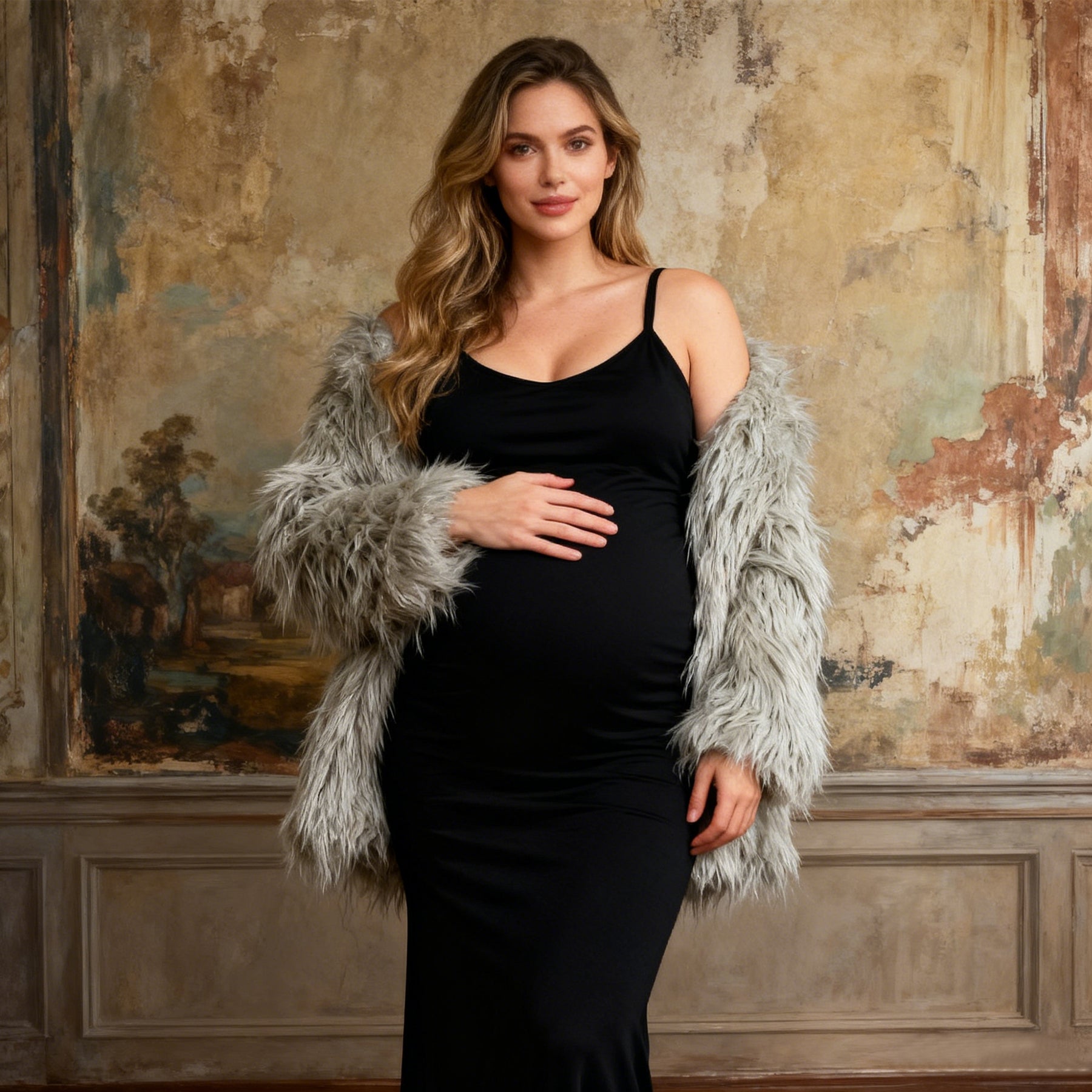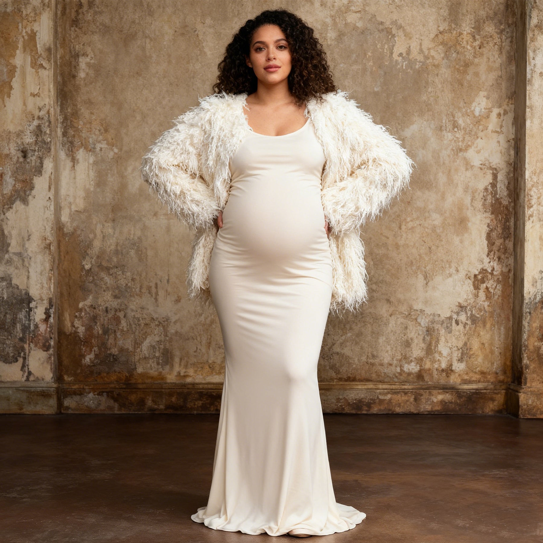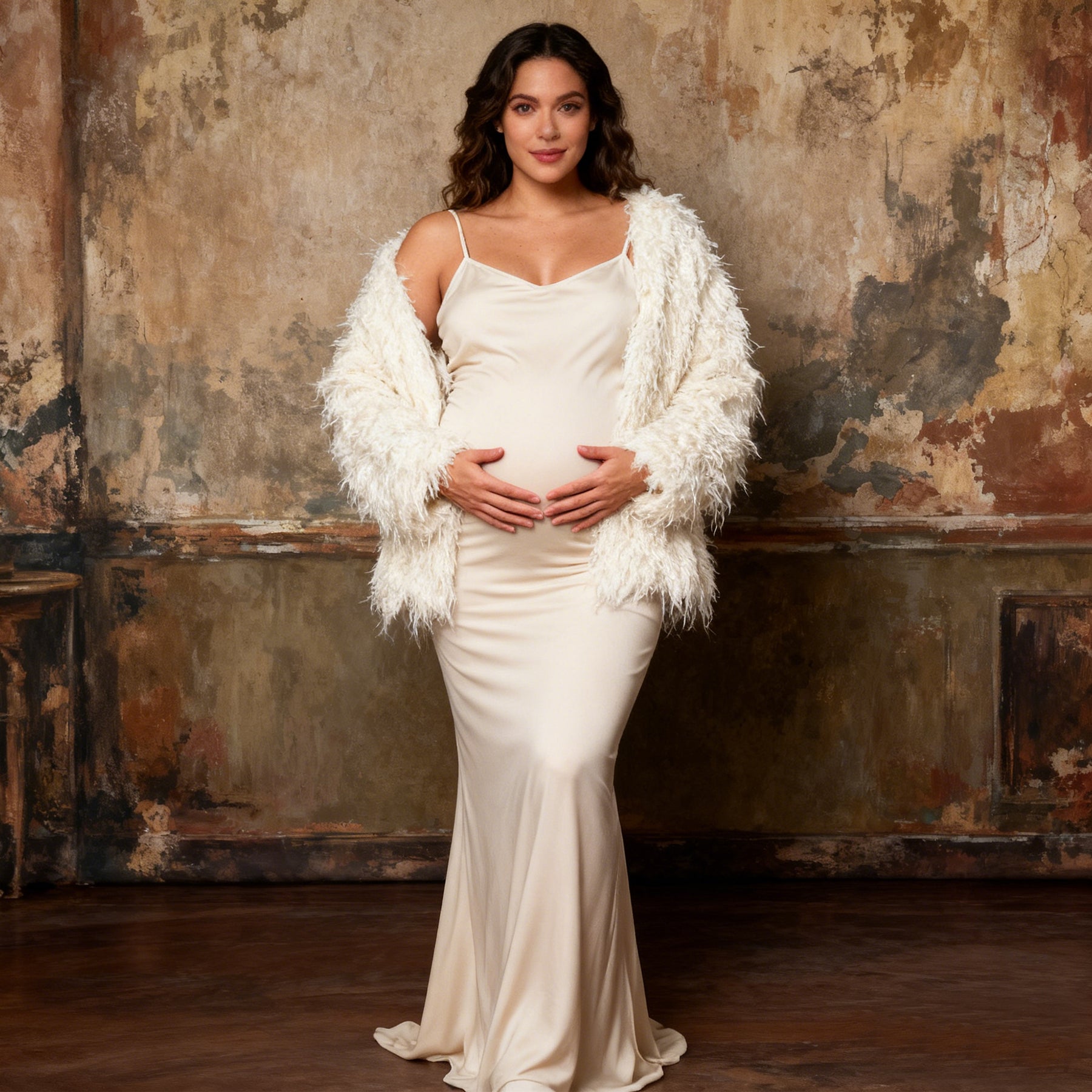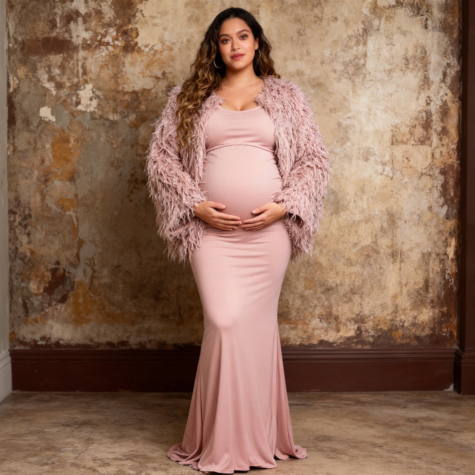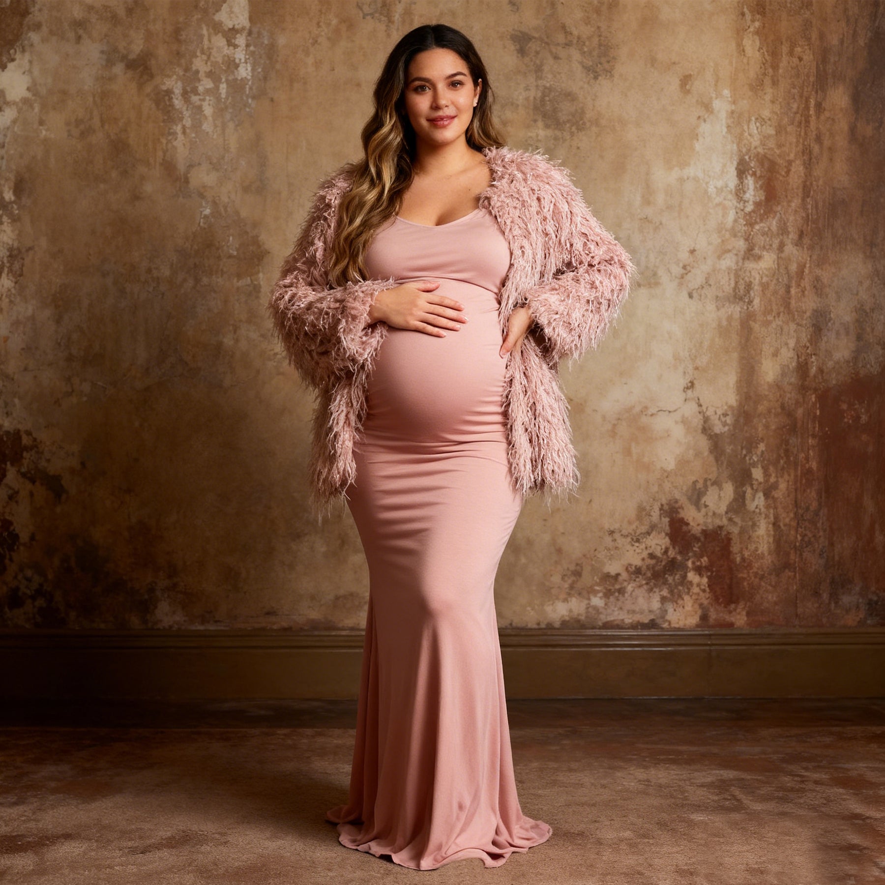 Product name: Faux Mongolian Fur Coat for Maternity or Non-maternity Winter Photoshoot Props