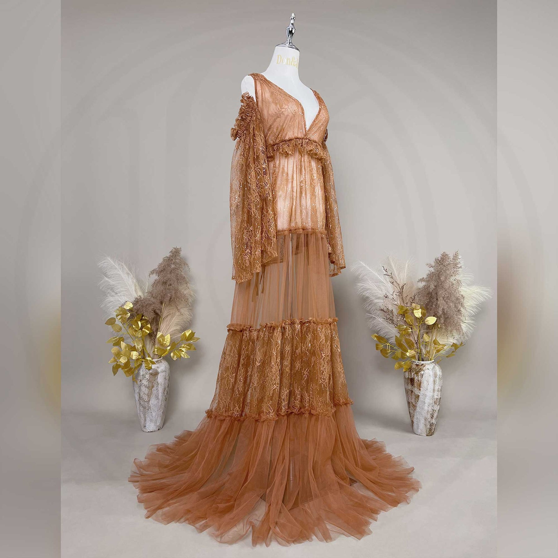 Product name: Sequined Lace Removable Sleeves Side Slit Dress Maternity or Non-maternity Gown Evening Party Dresses for Photography Props