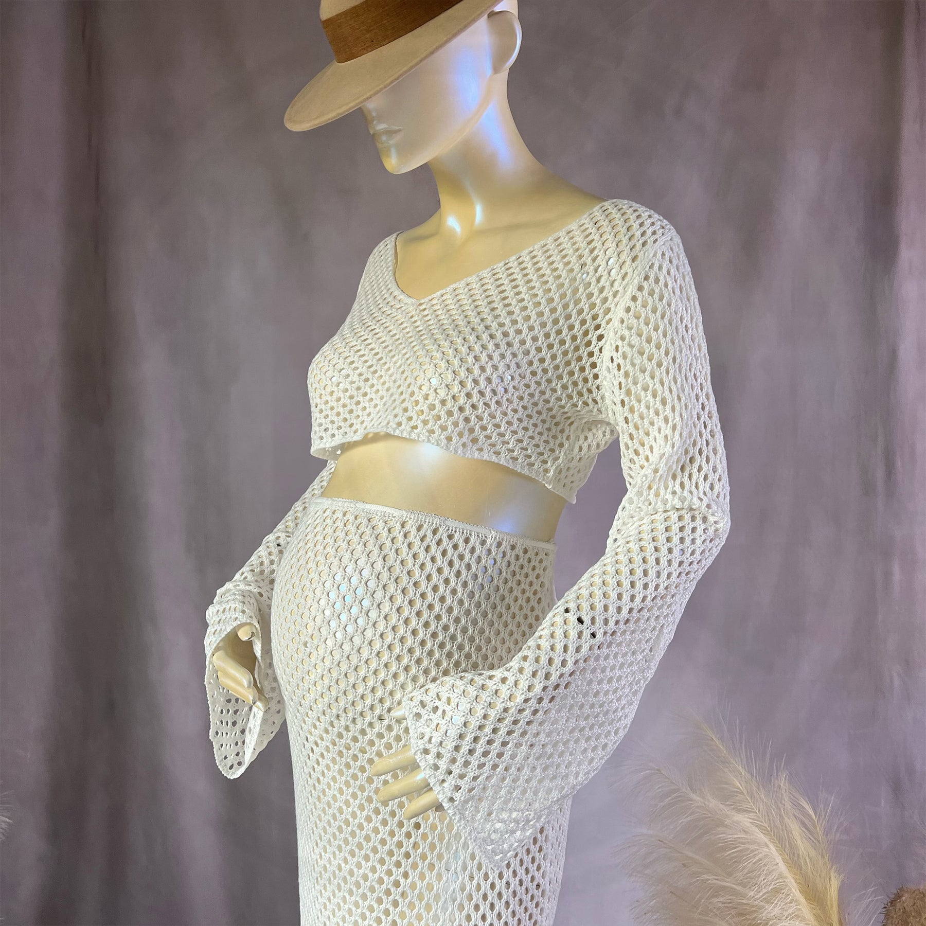 Product name: Boho White 2 Pieces Long-sleeved Top and Skirt Set Maternity and Non-maternity Gown Photography Dress Baby Shower for Photo Shoot