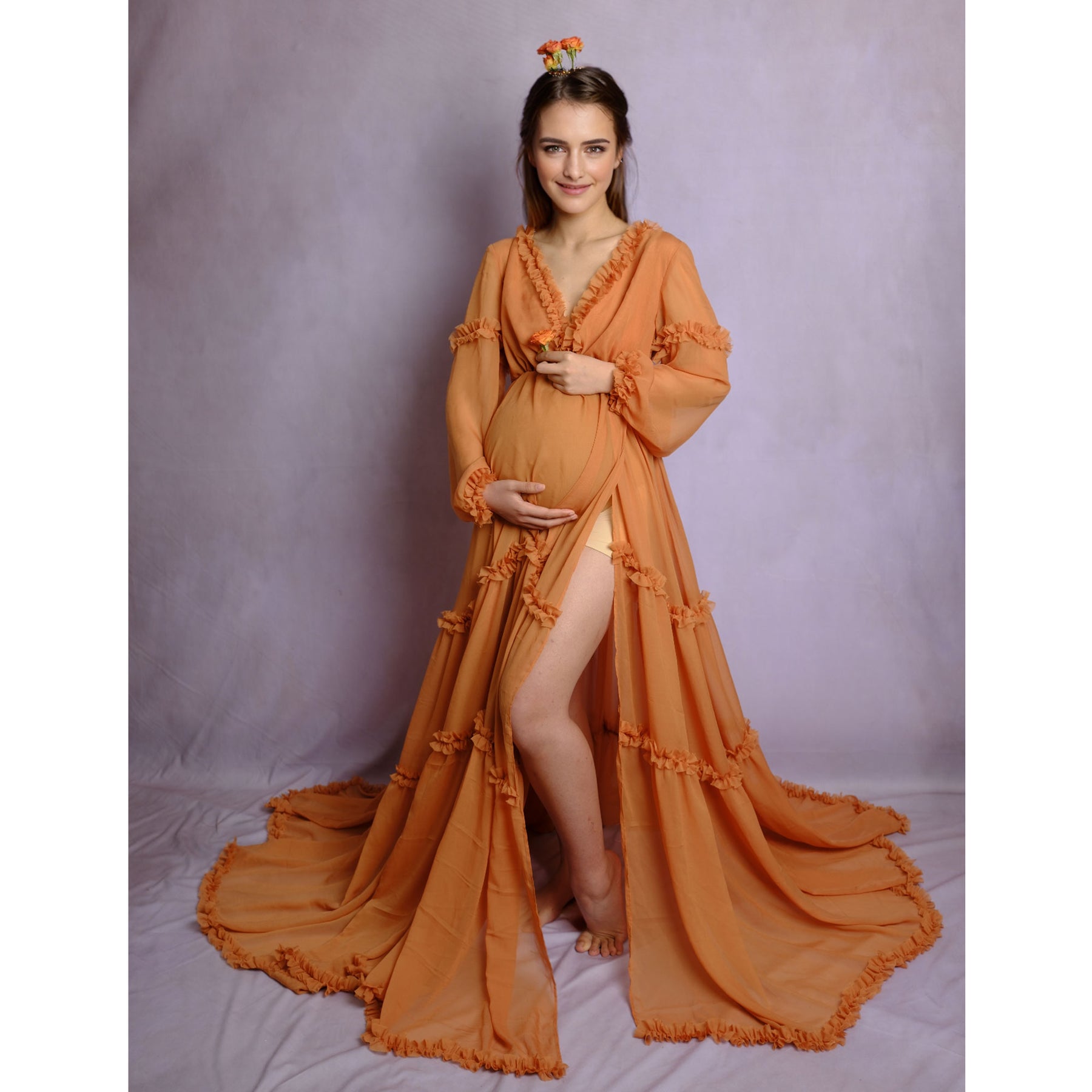 Product name: Chiffon Deep V-neck Lantern Sleeve Dress Maternity Dress or non-maternity Gown for Photoshoot Party Gown Pregnancy Women Photography Dresses Baby Shower Gift
