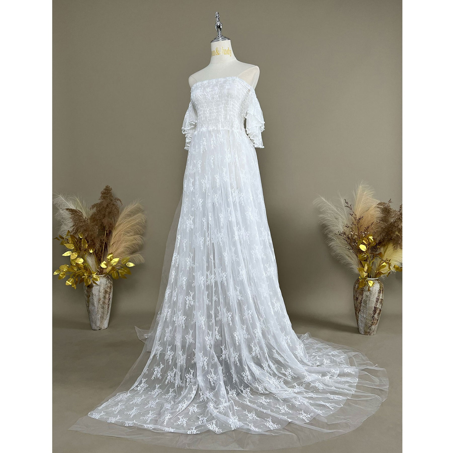 Product name: Lace Embroidered Elastic Tube Top Side Slit Maternity or Non-maternity Dress Photo Shoot Maternity Gown Pregnant for Photography Props