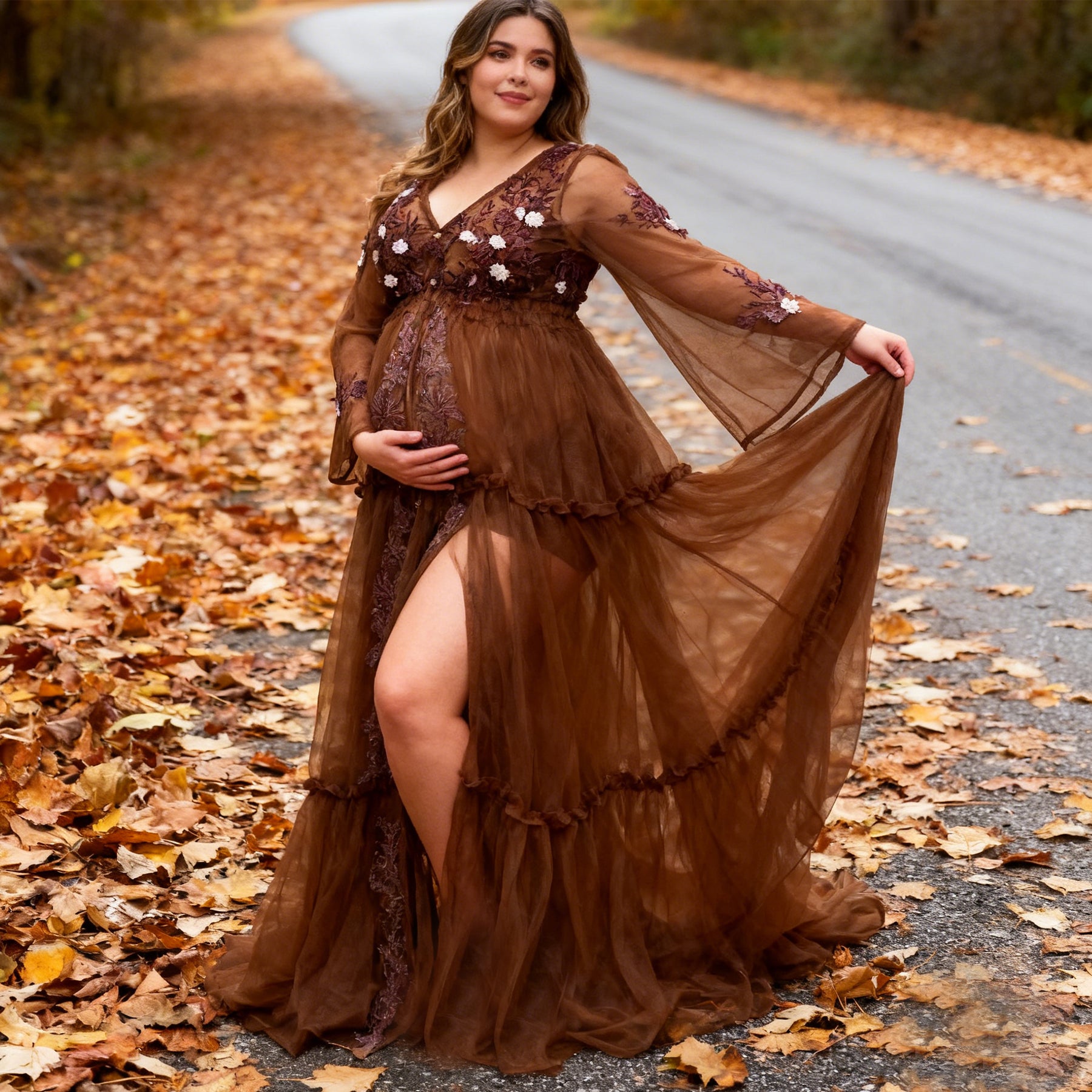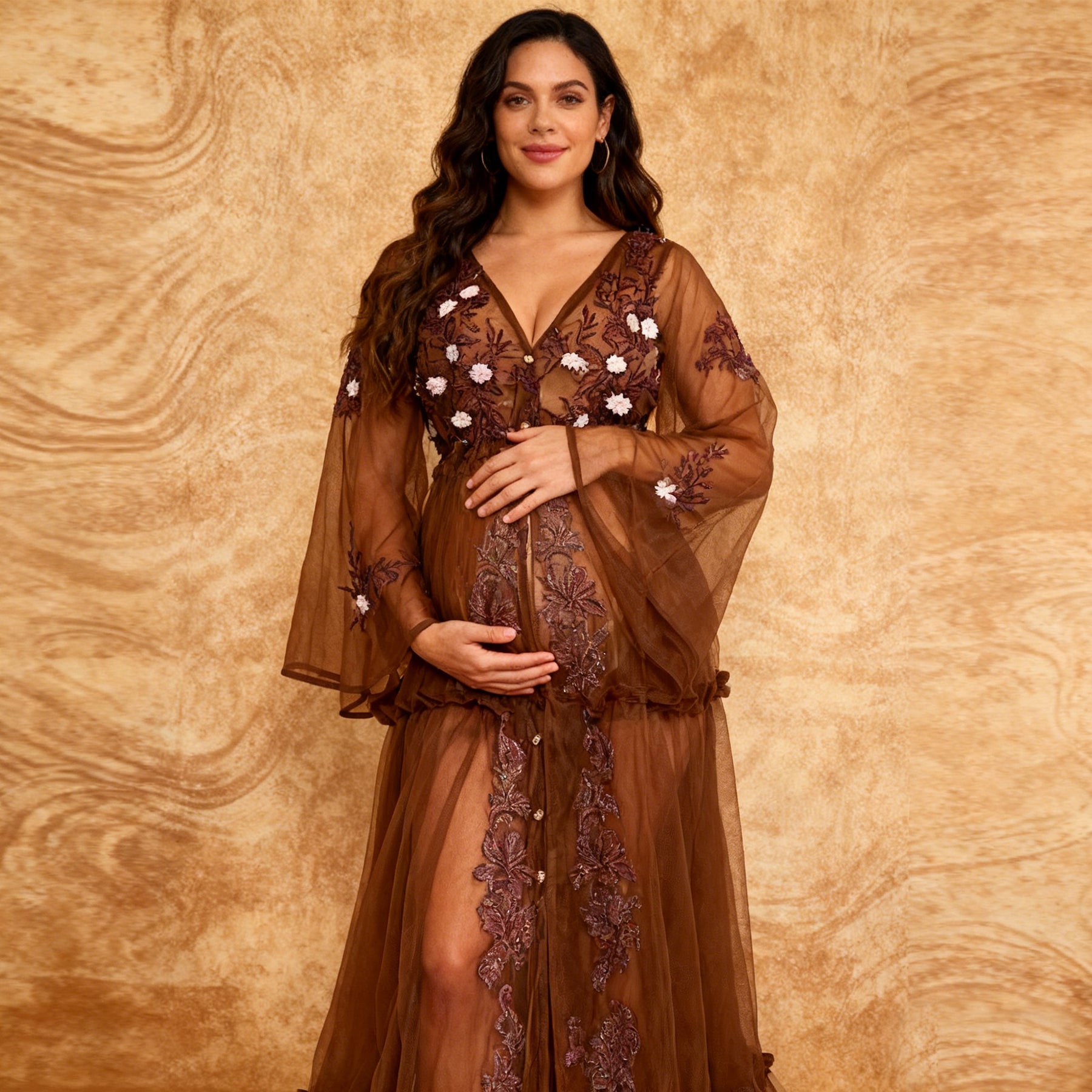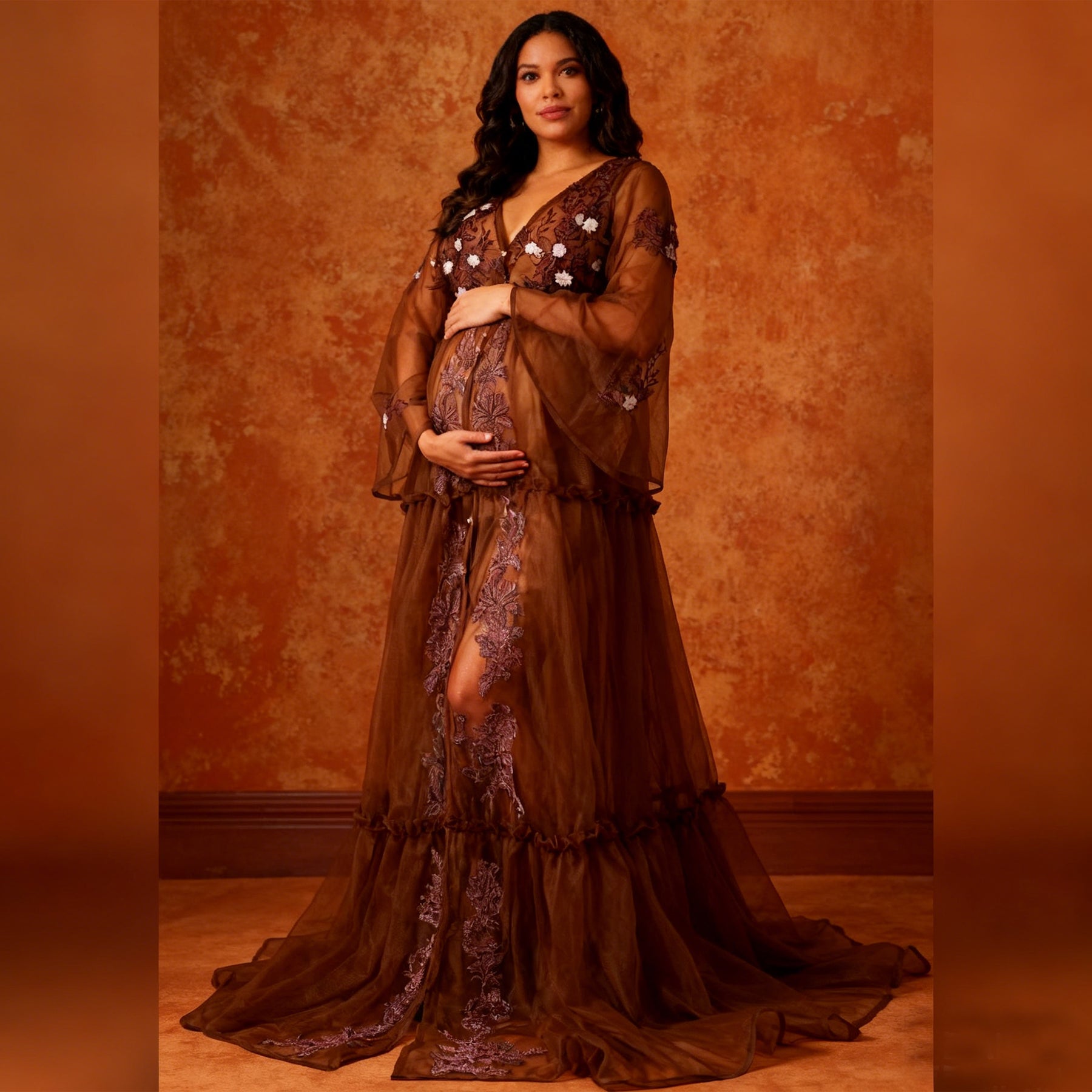 Product name: Floral Tulle V-Neck Gown – Maternity or Non-maternity Dresses for Photography Props Baby Shower Photo Props