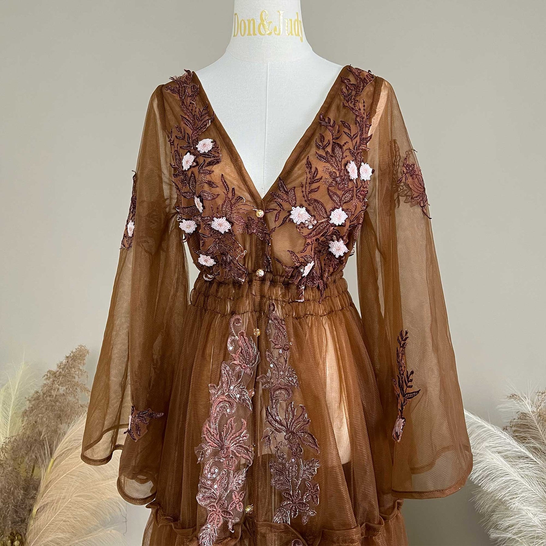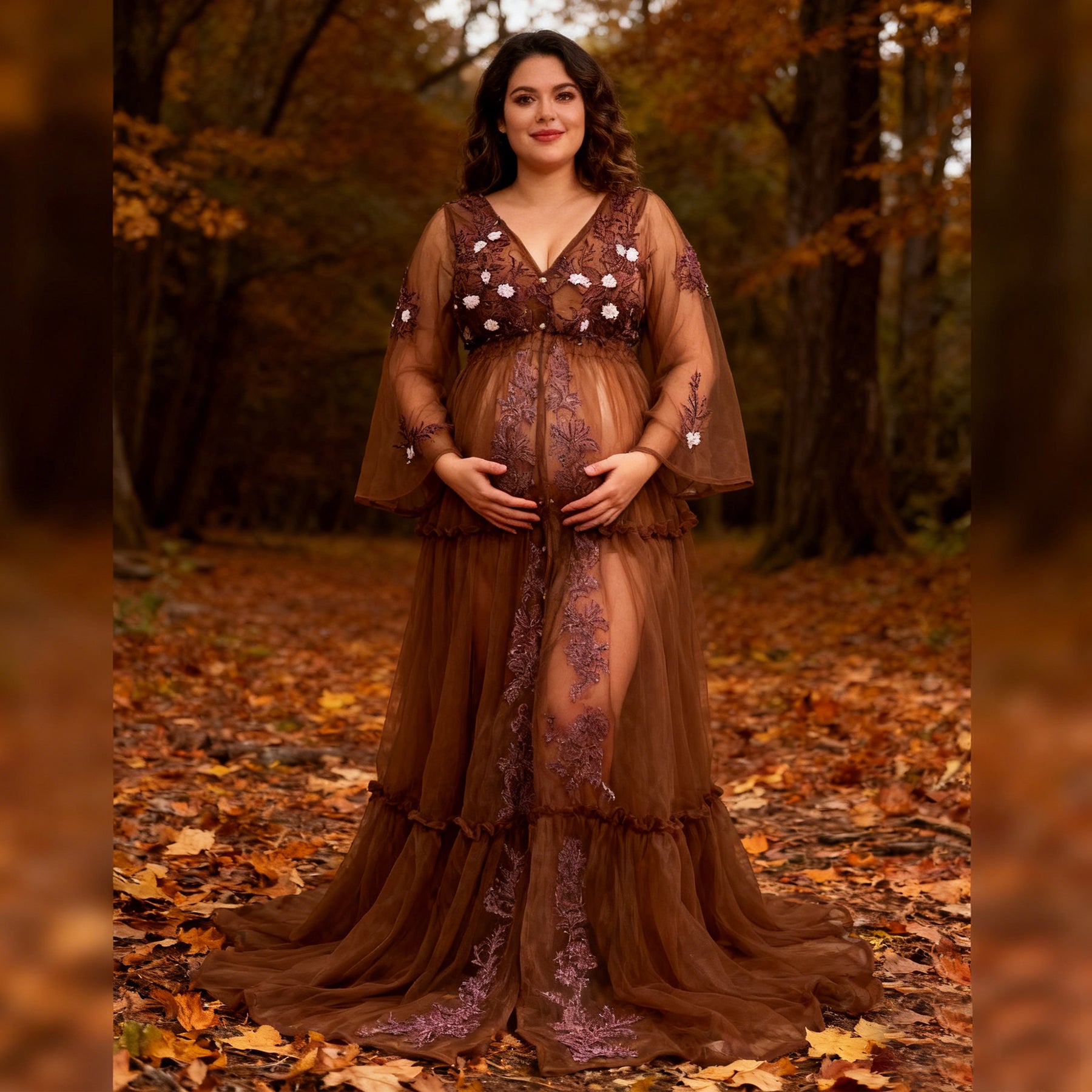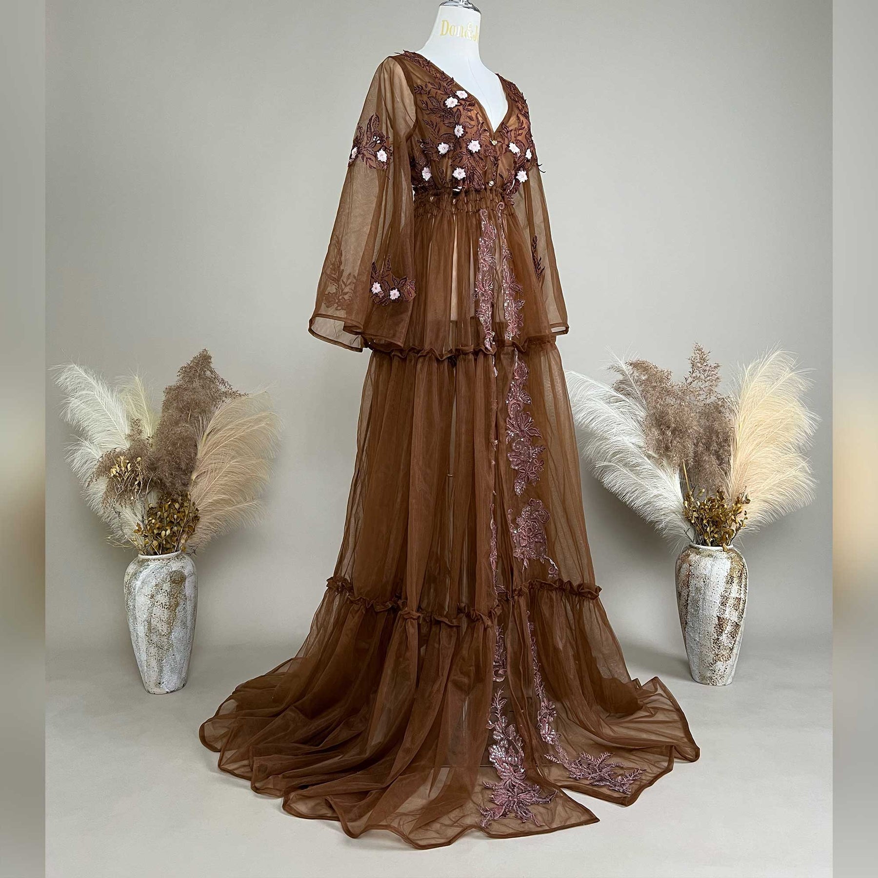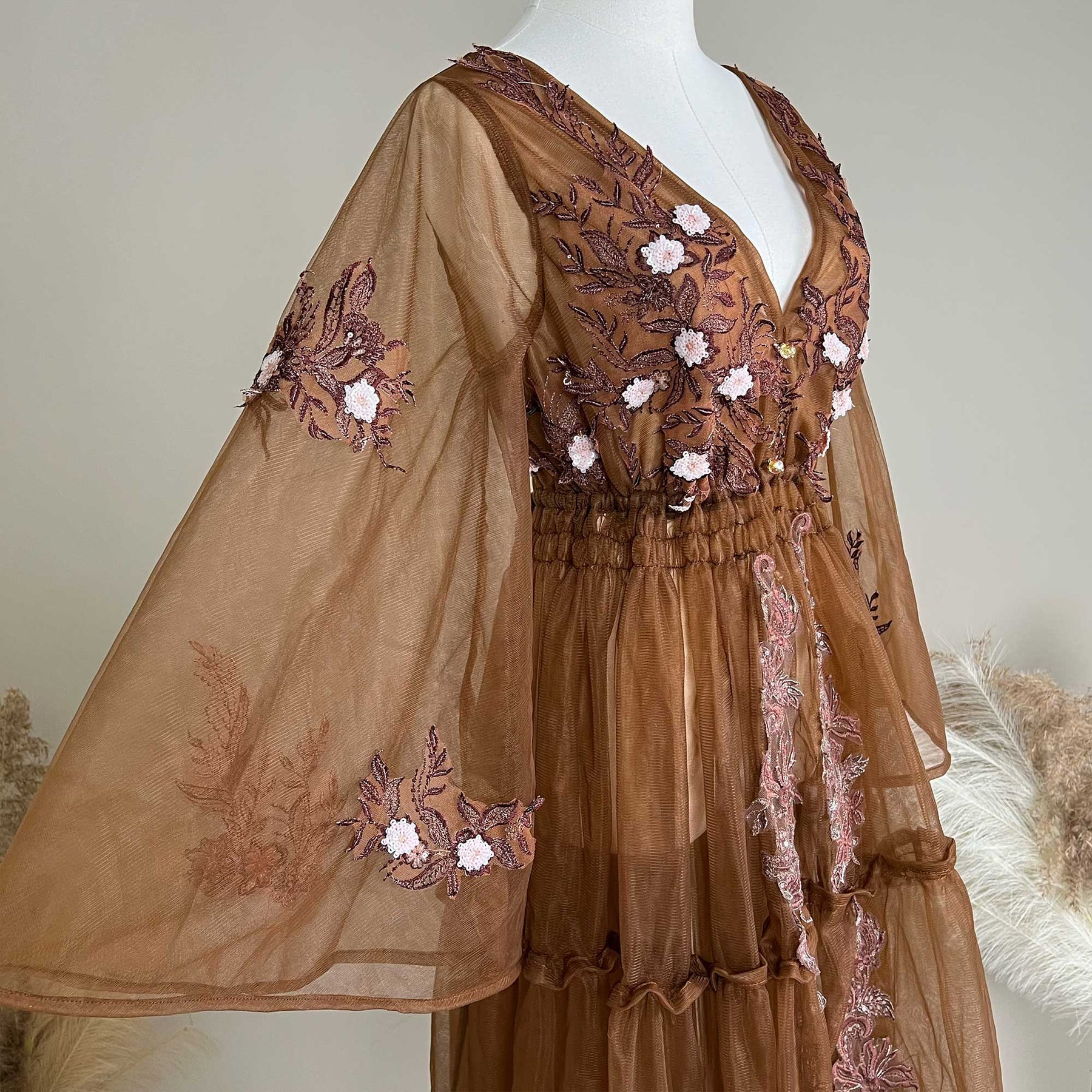 Product name: Floral Tulle V-Neck Gown – Maternity or Non-maternity Dresses for Photography Props Baby Shower Photo Props