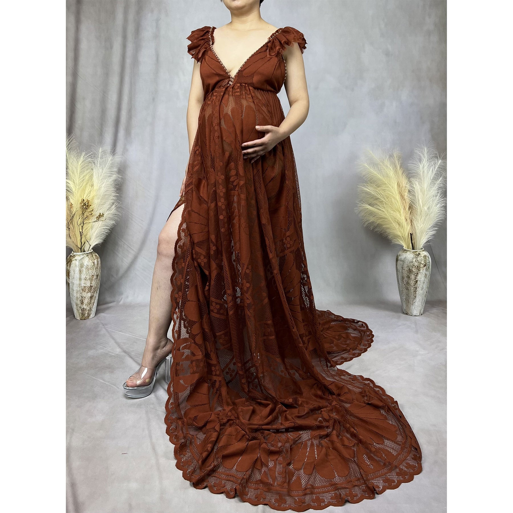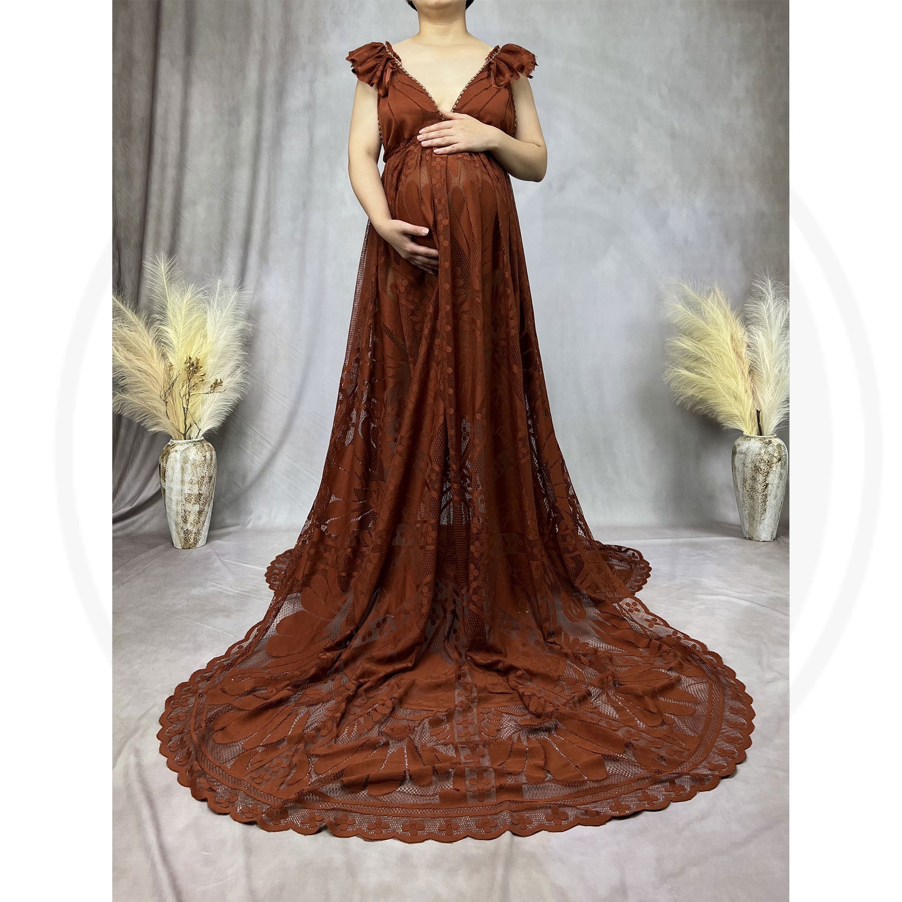 Product name: Deep V-neck Sleeveless Backless Slip Maternity Or Non-Maternity Lace Dress Photoshoot Props Pregnancy Gown Baby Shower Gifts