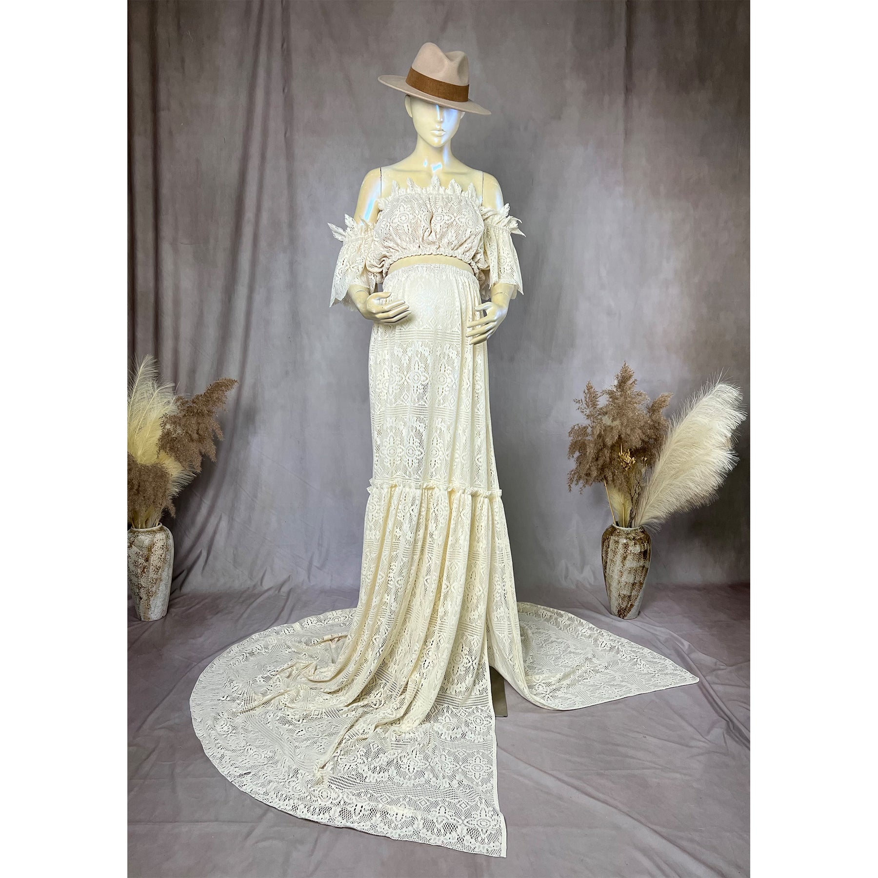 Product name: Cotton Two Piece Set Maternity and Non-maternity Gown Photography Dress Evening Party Baby Shower for Photo Shoot