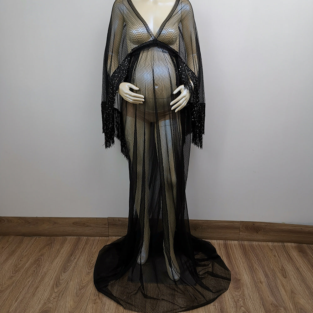 Product name: Boho V-neck Long Sleeve tulle Maternity Gown Photography Dress with Tassels Party Dresses Baby Shower Photo Props