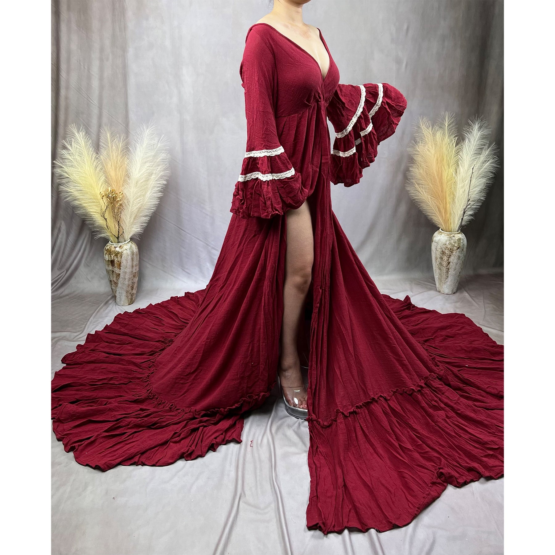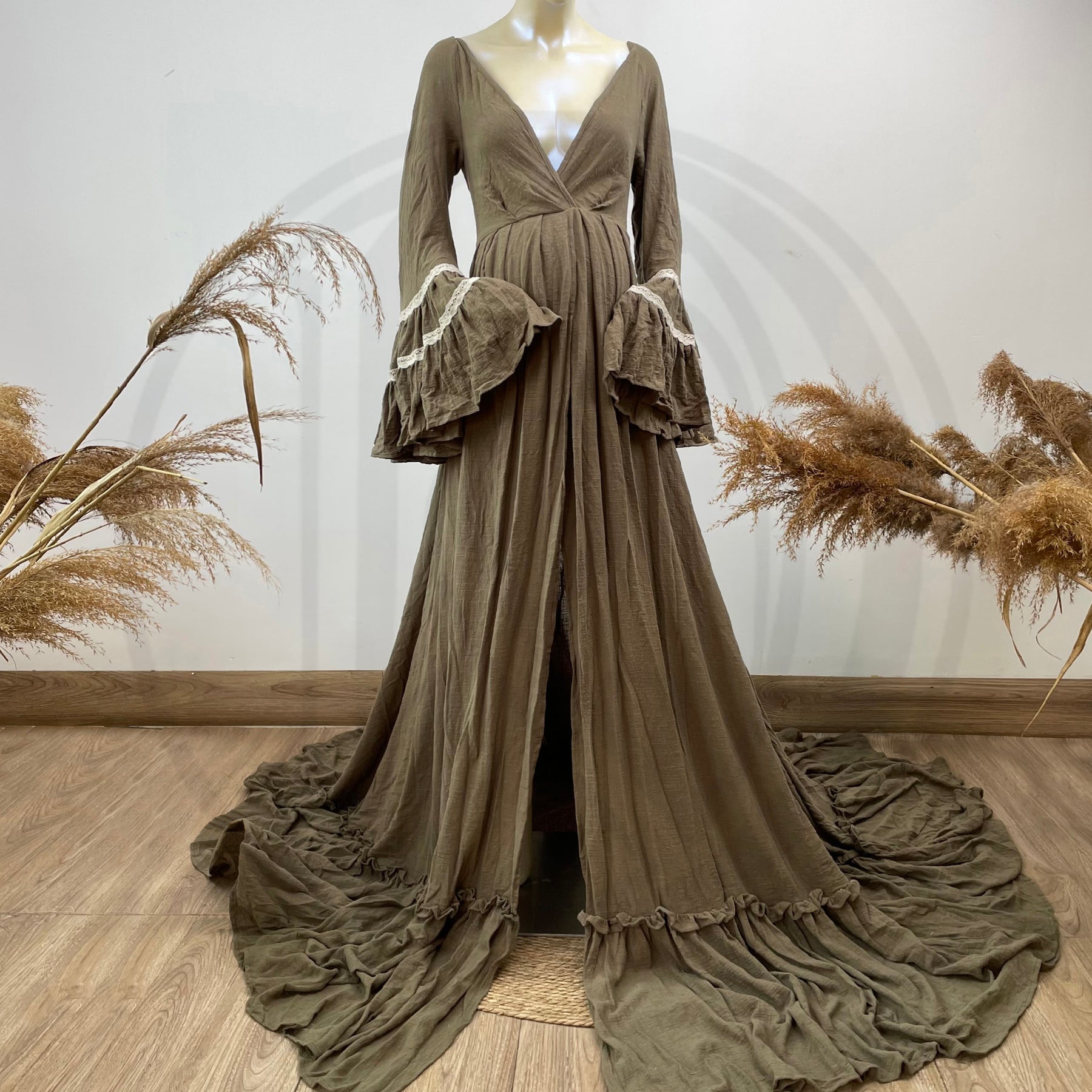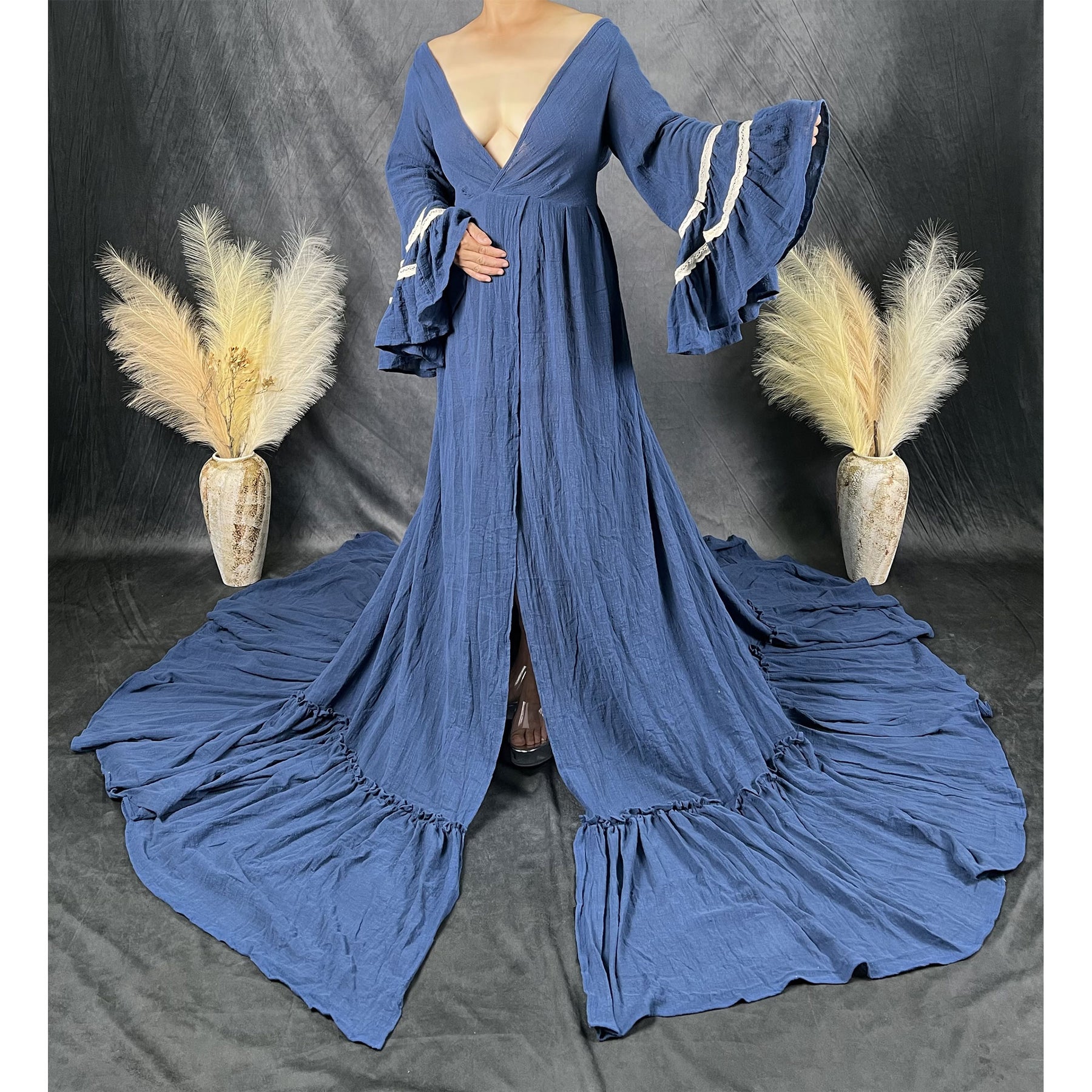 Product name: Photography Free Size Long Ruffle Sleeves Cotton Maternity Gown Square Collar Evening Party Dresses Baby Shower Robe Maternity Couture for Photo Shoot