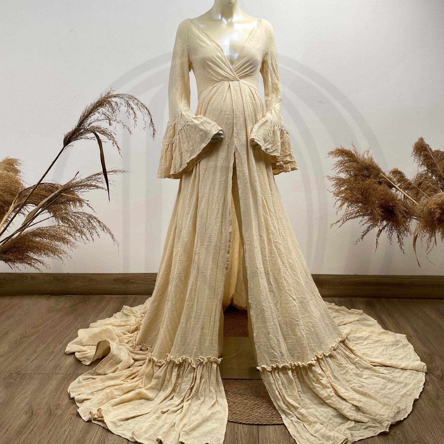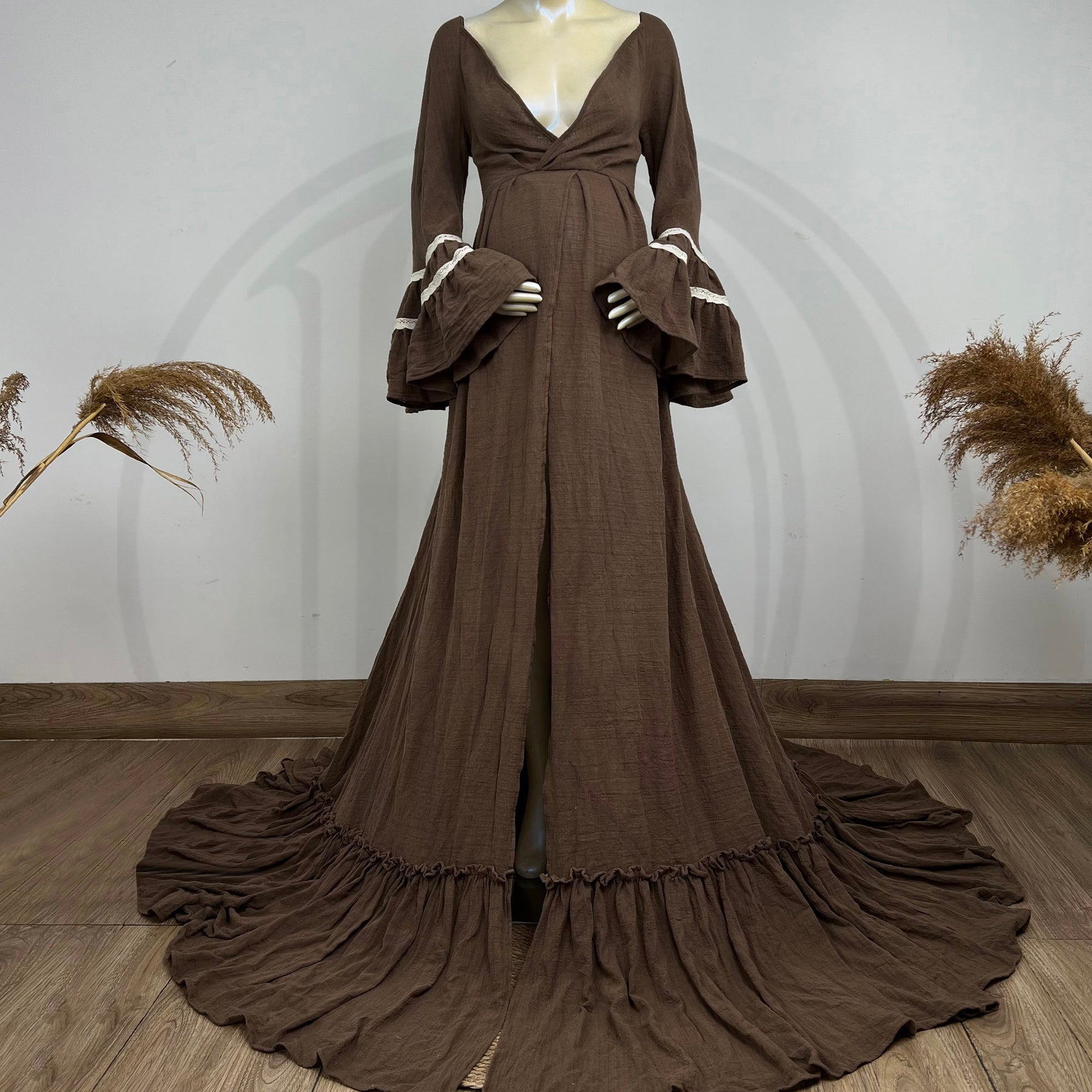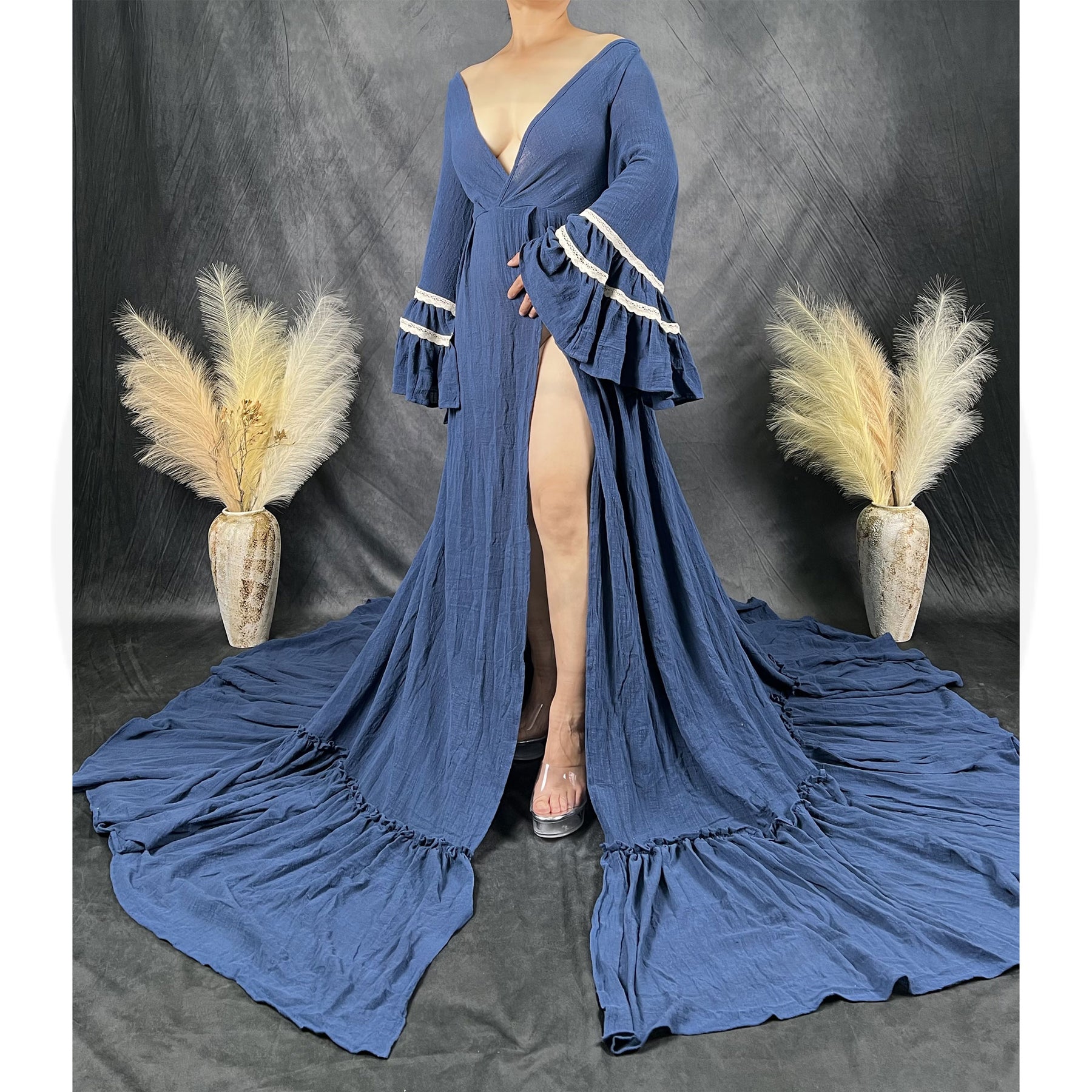 Product name: Photography Free Size Long Ruffle Sleeves Cotton Maternity Gown Square Collar Evening Party Dresses Baby Shower Robe Maternity Couture for Photo Shoot
