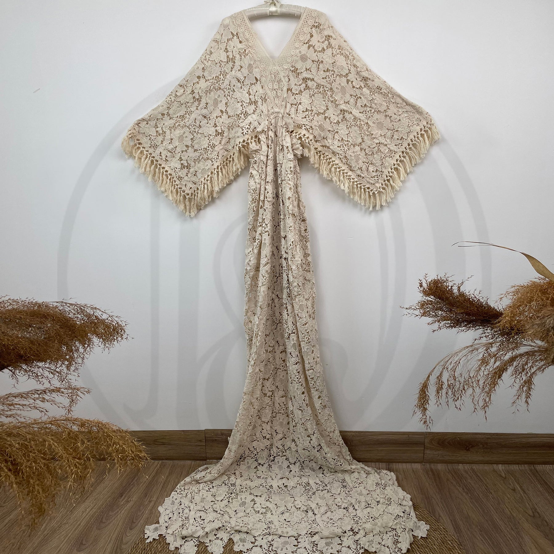 Product name: Beige Free Size Boho V-neck Long Sleeves Cotton Dress Maternity Gown with Long Tassels Photography Dress Party Dresses Baby Shower Photo Props Maternity Couture Pregnancy Clothes for Woman Photo Shoot