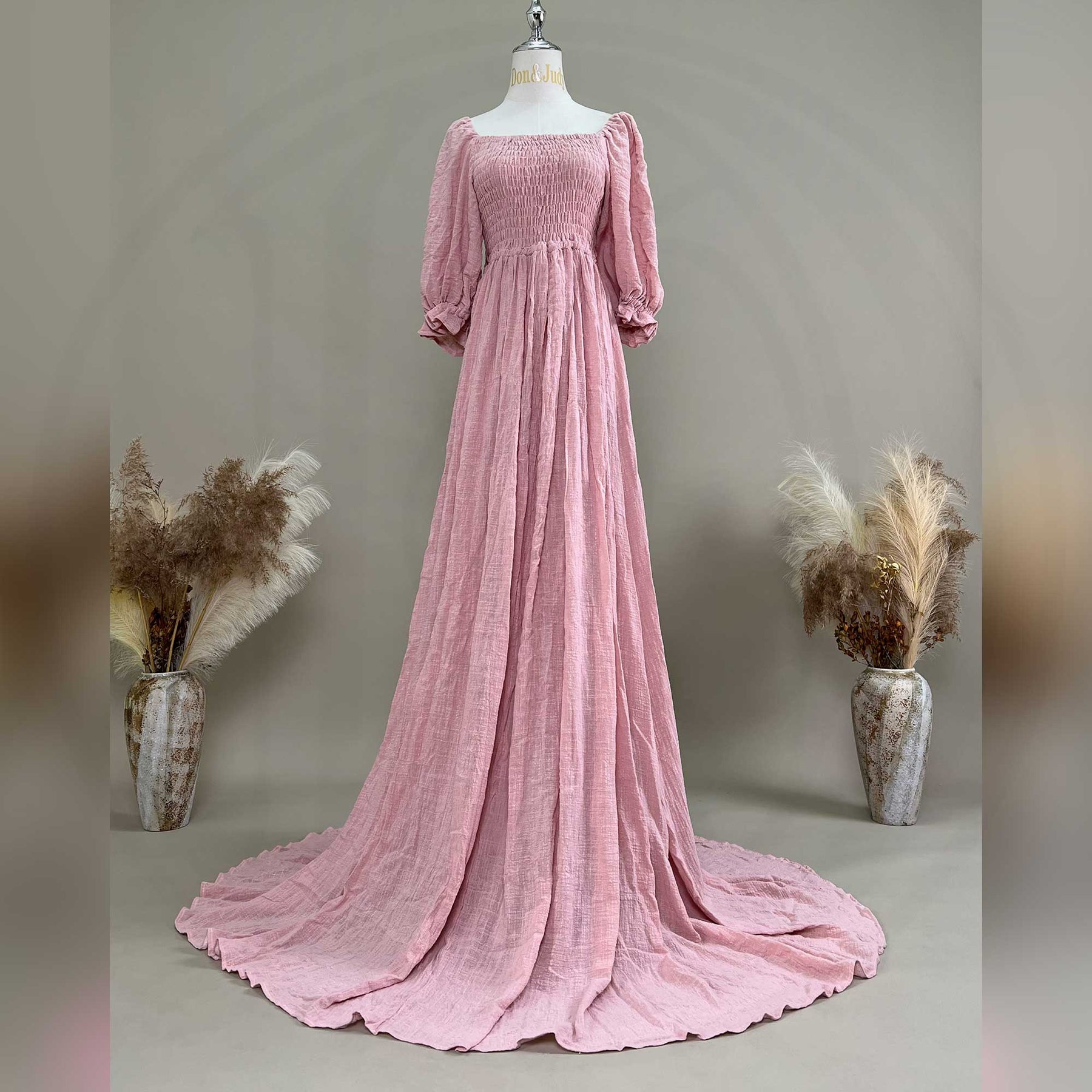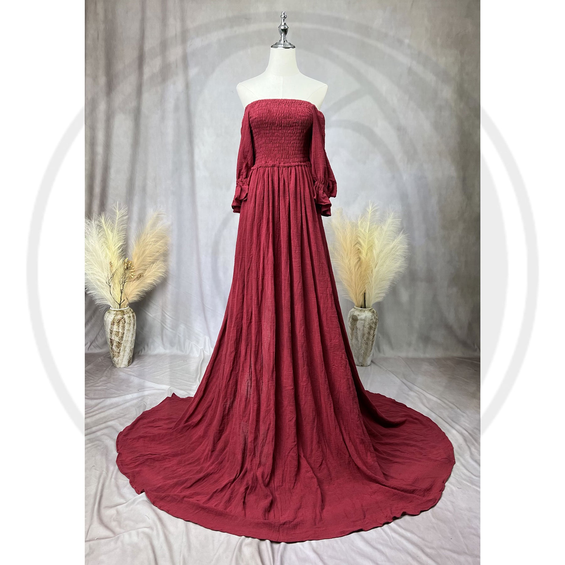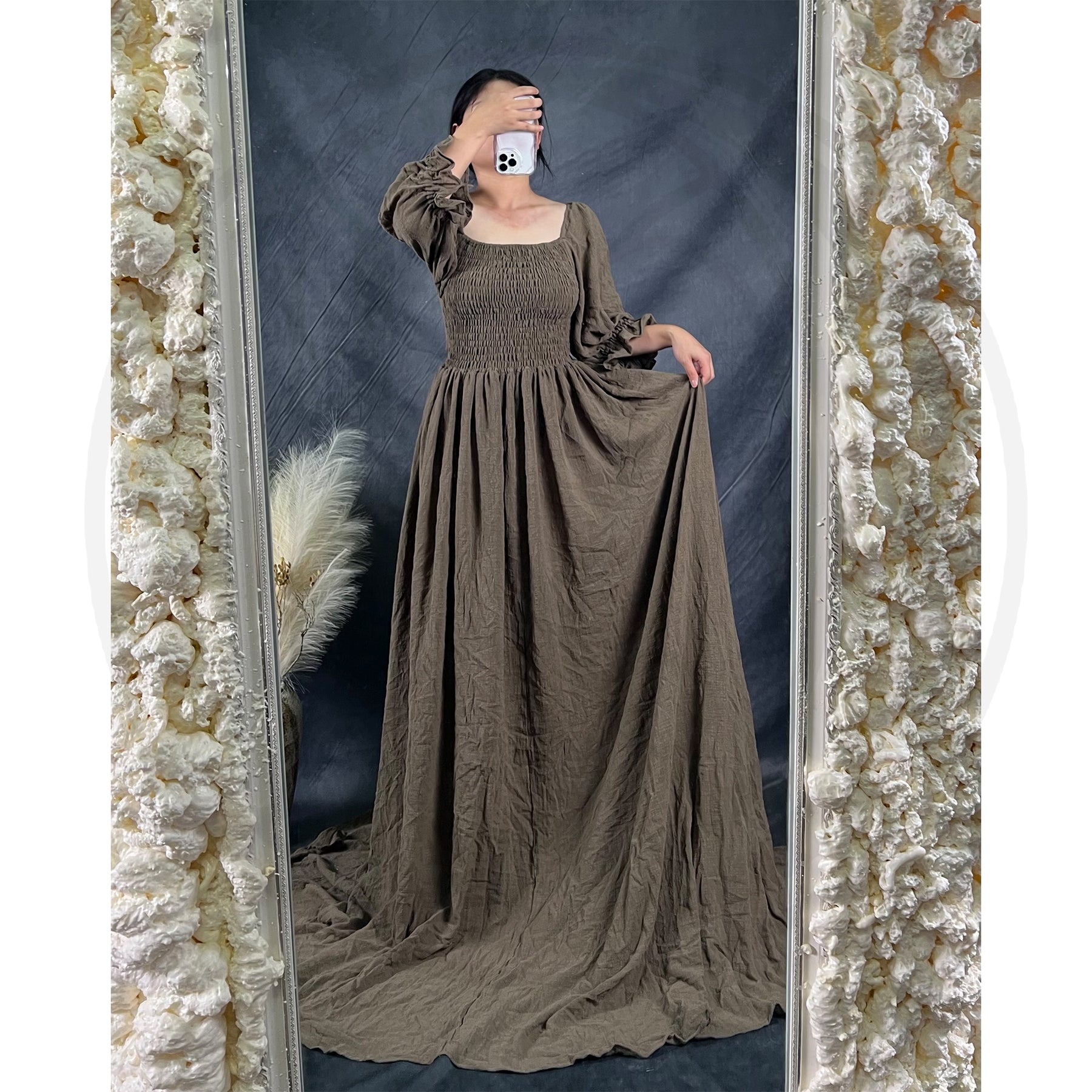 Product name: Vintage Cotton French Ruffled Lantern Sleeves Multi-wear Dress Maternity Gown Photography Dress Evening Party Baby Shower for Photo Shoot