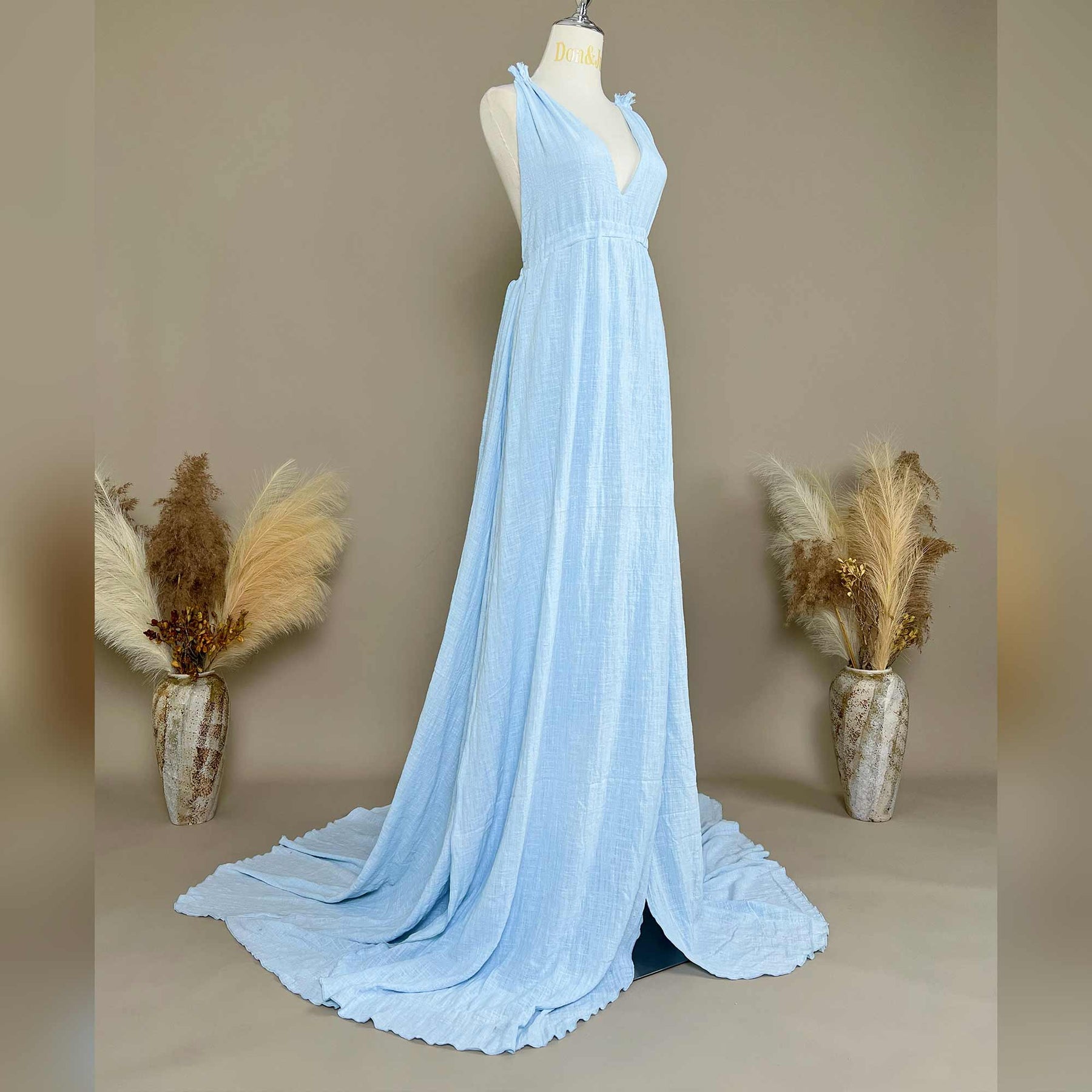 Product name: Sexy Vintage Cotton V-neck Backless Maternity Gown Photography Dress Evening Party Costume Baby Shower Robe Maternity Couture for Photo Shoot