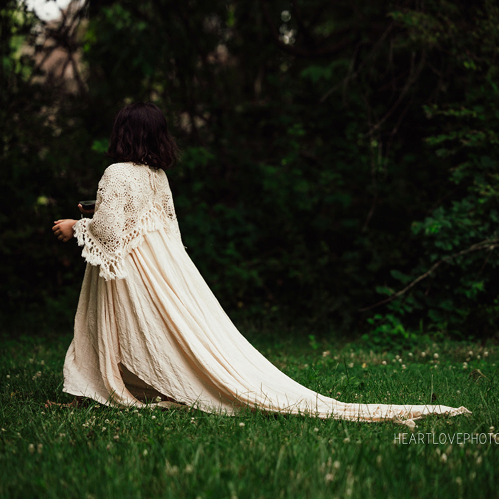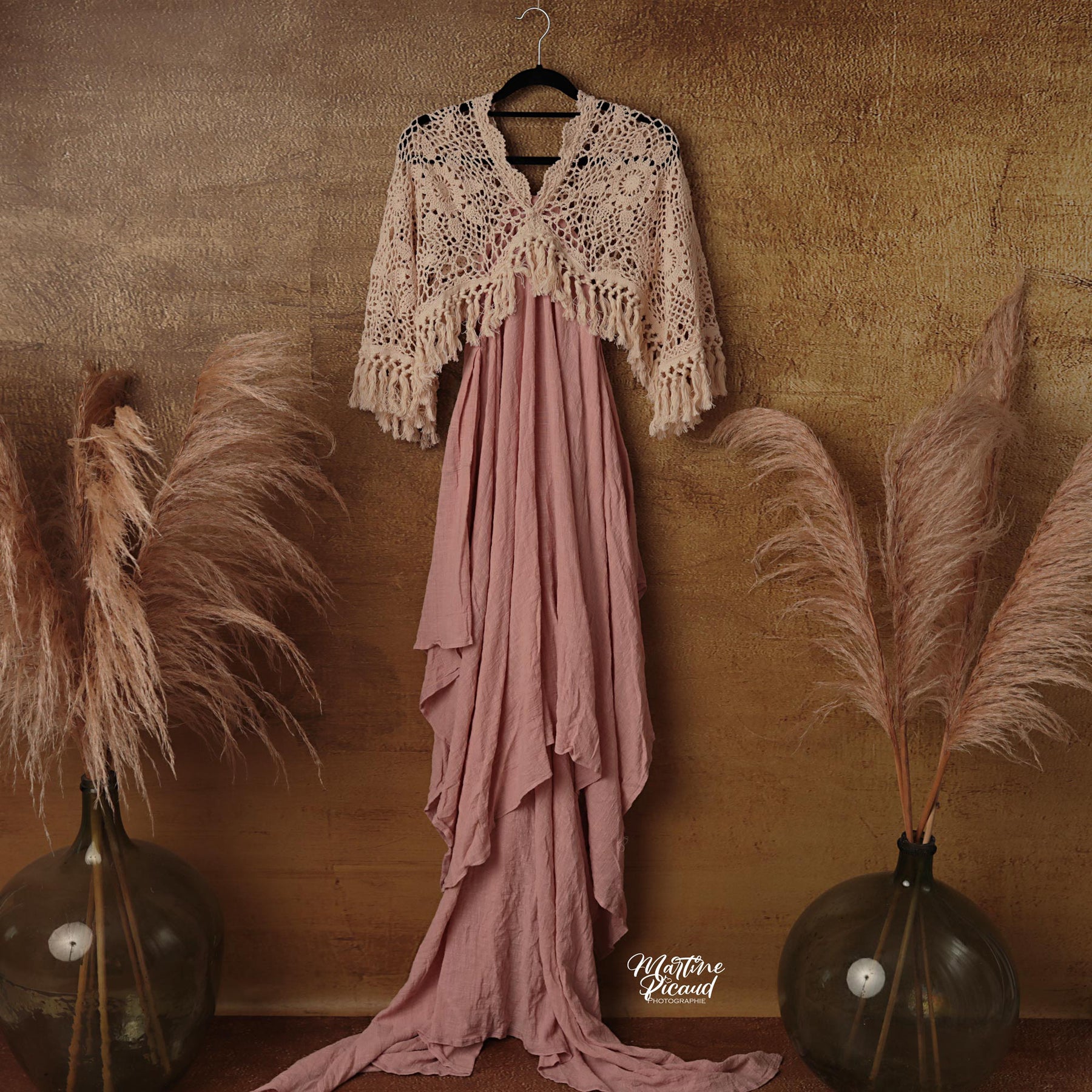 5-6 Years Old Kid Kaftan Free Size Boho Photo Shoot New Soft Hand Crochet Cotton Long Bell Sleeves Little Girl Princess Casual Gown for Childen Photography Prop Studio