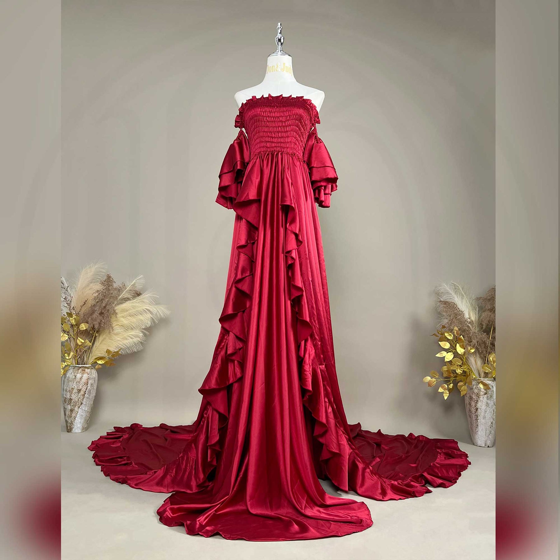 Product name: Silk-like Smooth Off-Shoulder Long Train Maternity or Non-maternity Gown Pregnant Woman Pregnancy Photo Shoot Prop Dress