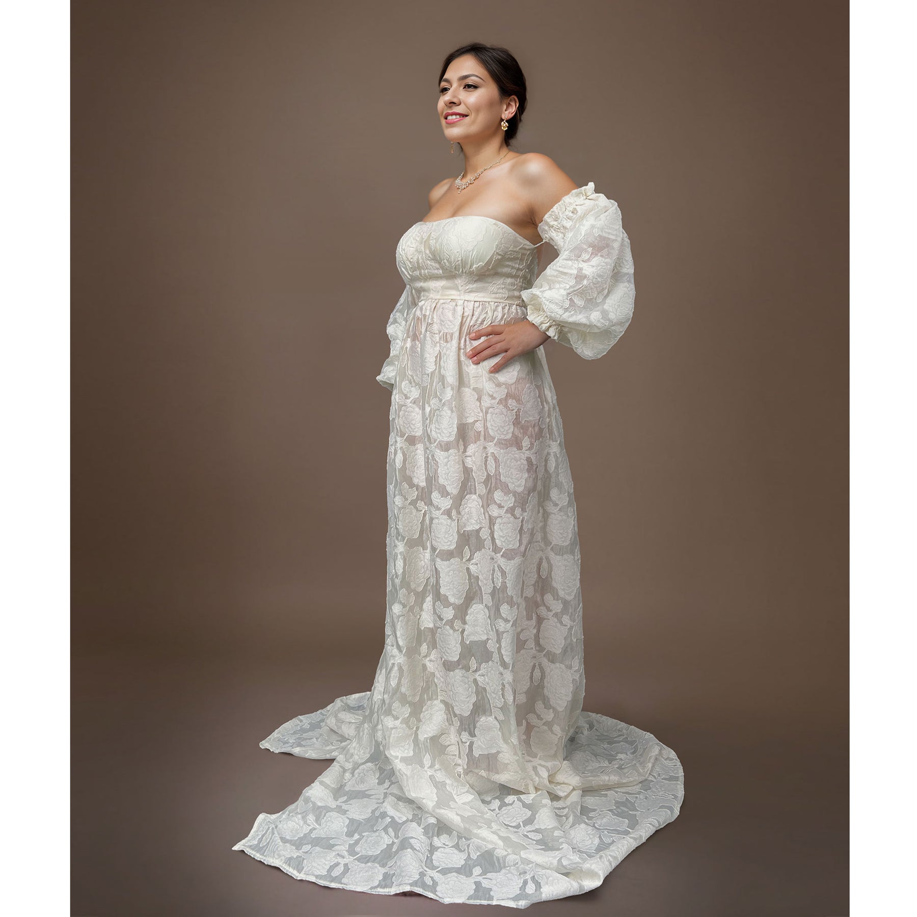 Product name: Strapless with Lantern Sleeves Side Slit Maternity Gown Evening Party Dresses Pregnant Women Photography Props Baby Shower Gift