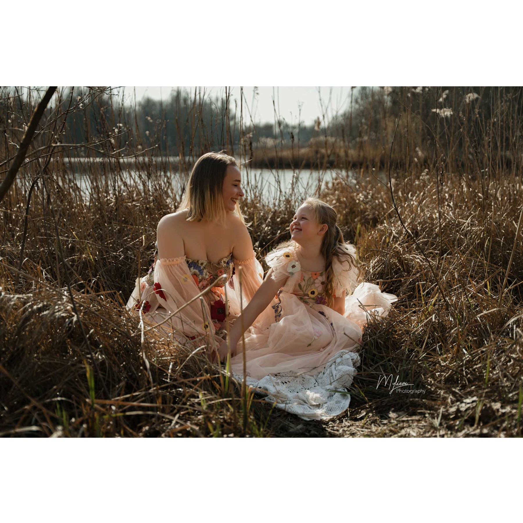 Product name: Embroidered Floral Maternity DressMatched Little Girls Dress Set Pregnancy Photography Dresses Photo Shoot Prop