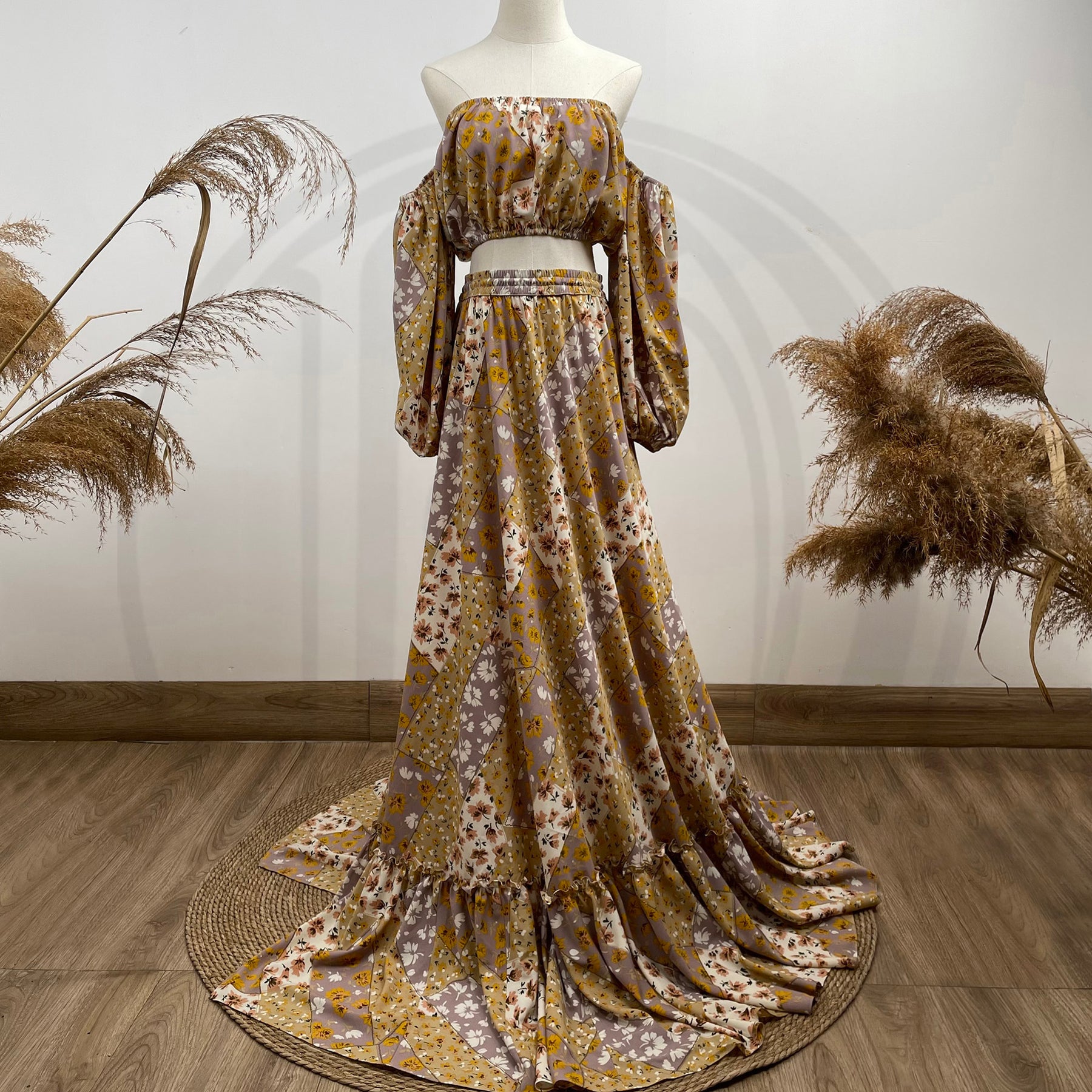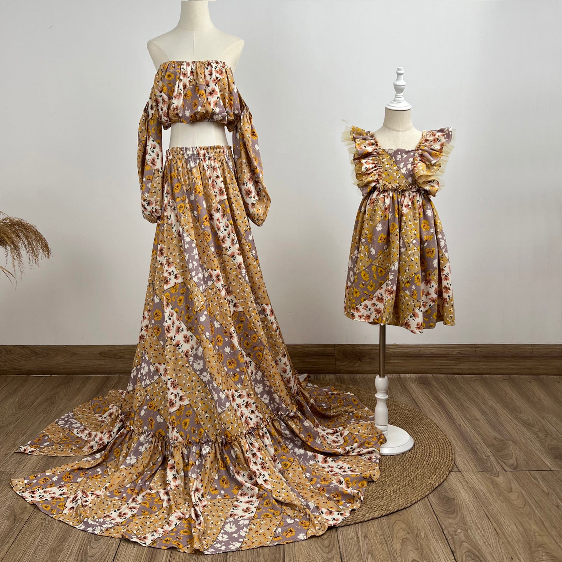 Product name: Floral Mommy Gown with Matched Little Gilrs 3-6years Old Dress Set Boho Dress Pregnancy Photography Dresses Bohemia Maxi Gown Photo Shoot Prop