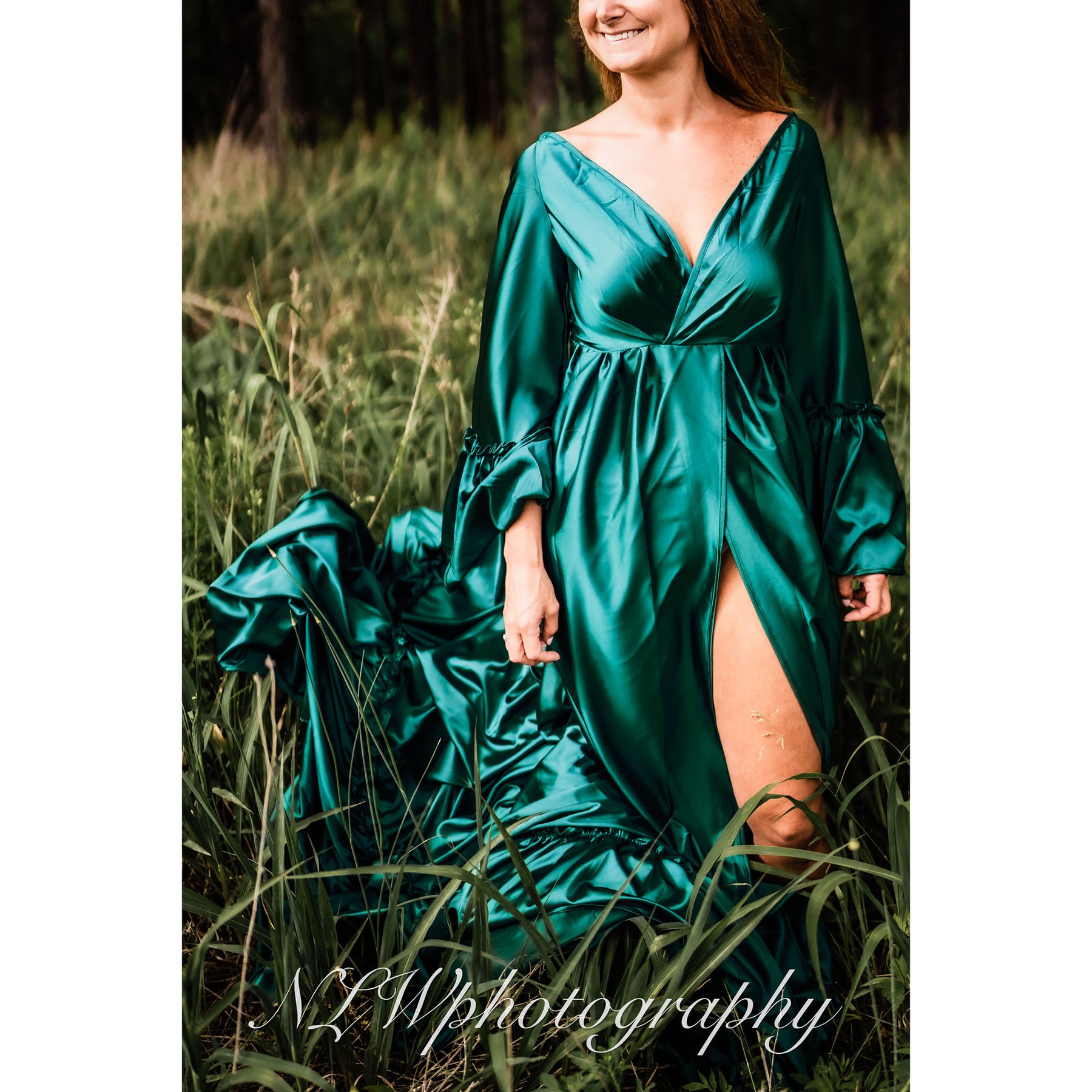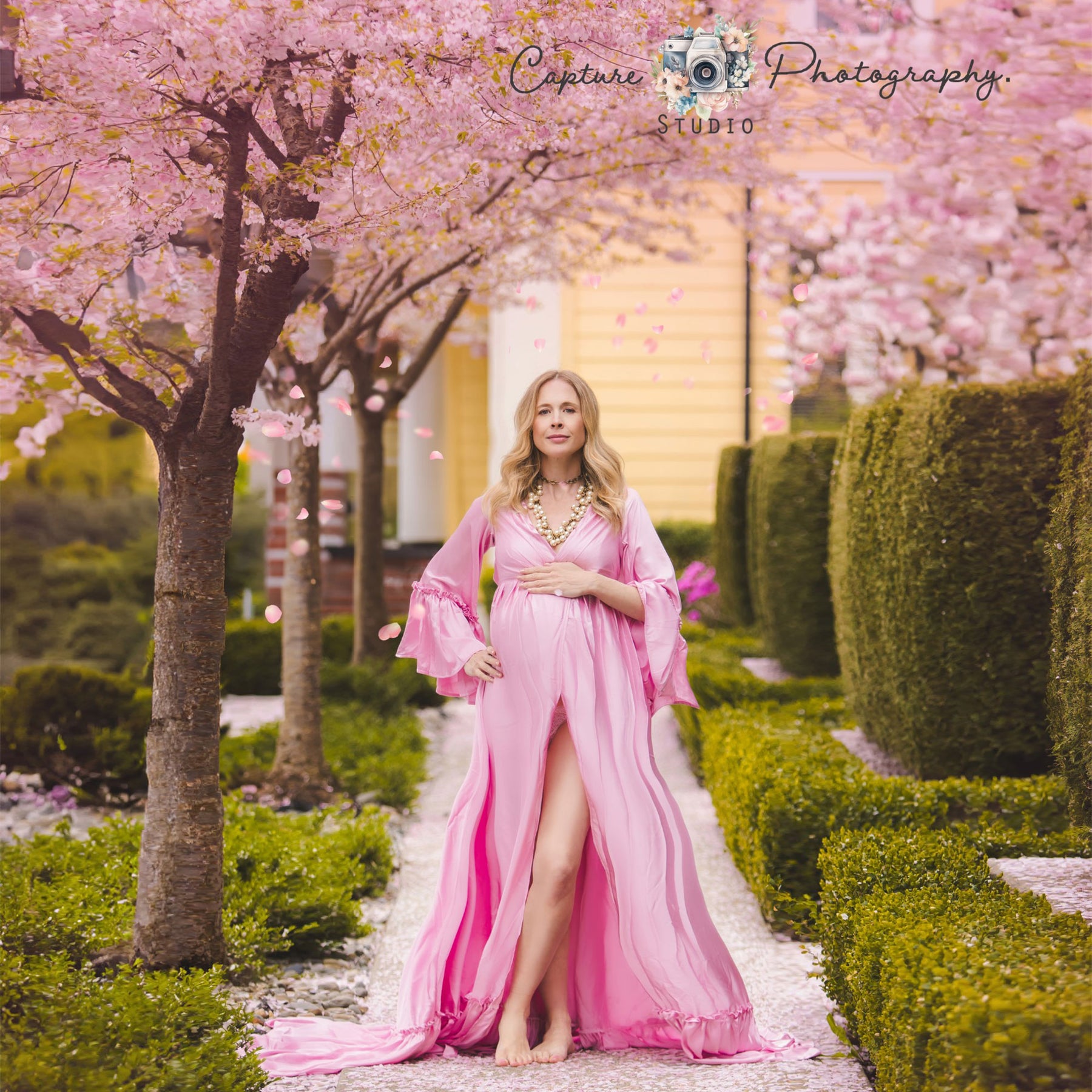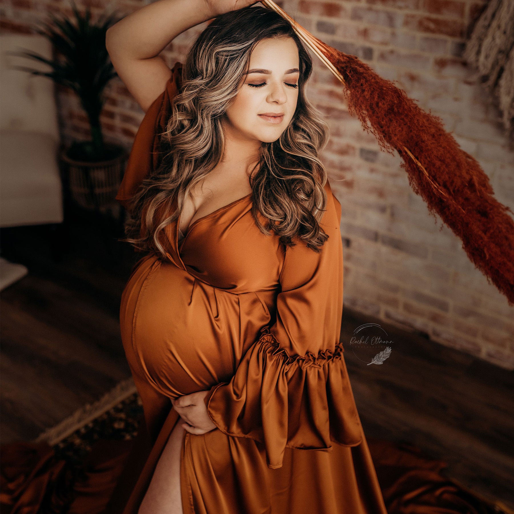 Photo Shoot Free Size Silky Smooth and Soft Maternity Gown Evening Party Dresses Pregnant Costume Like Satin Gown for Women Photography Props Baby Shower Robe