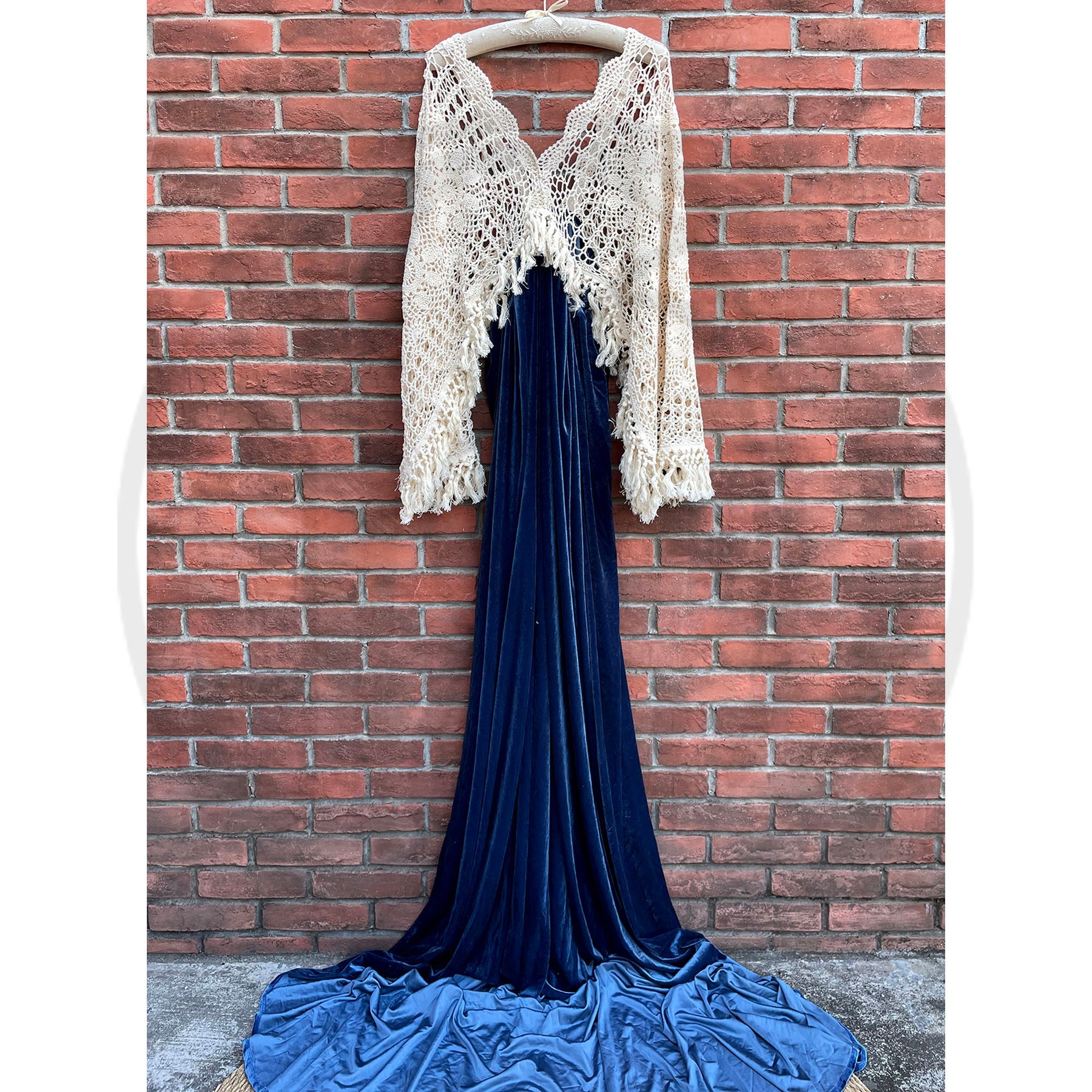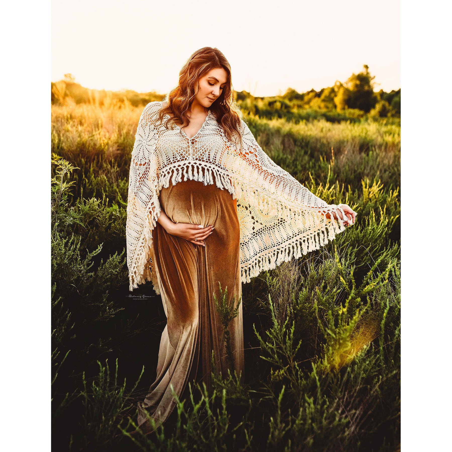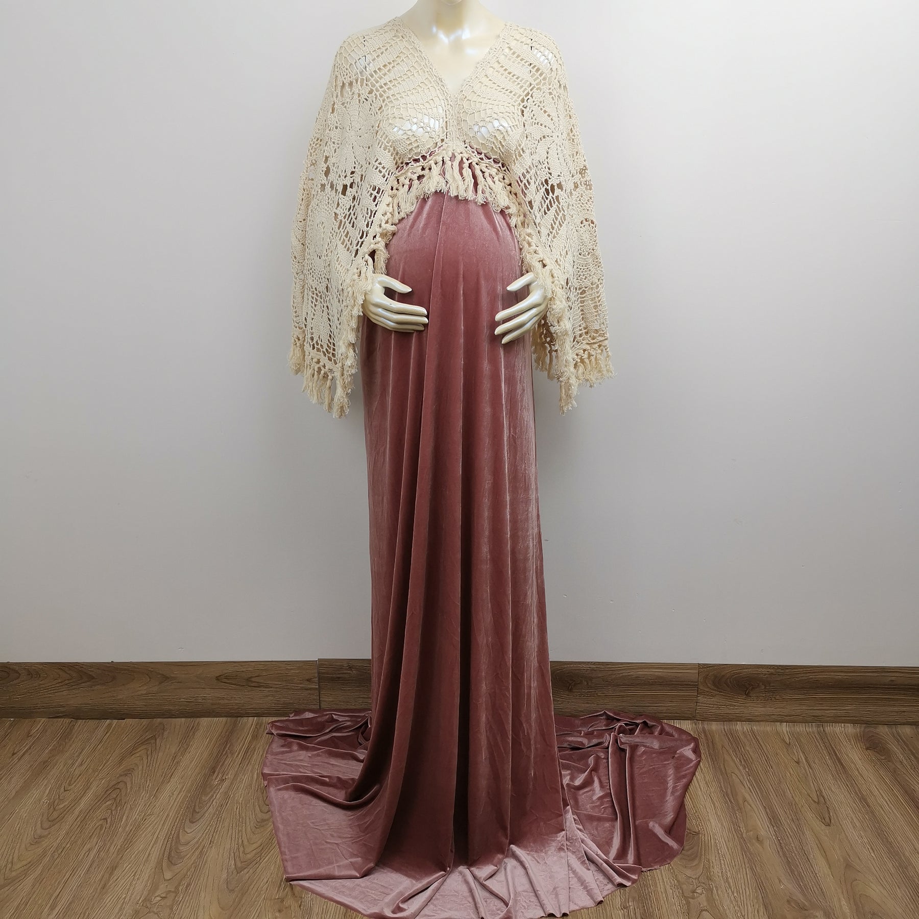 New Soft Hand crochet Cotton Long Bell Sleeves Maternity  Dress Pregnant Velvet Gown for Woman Photography Prop Baby Shower Gift