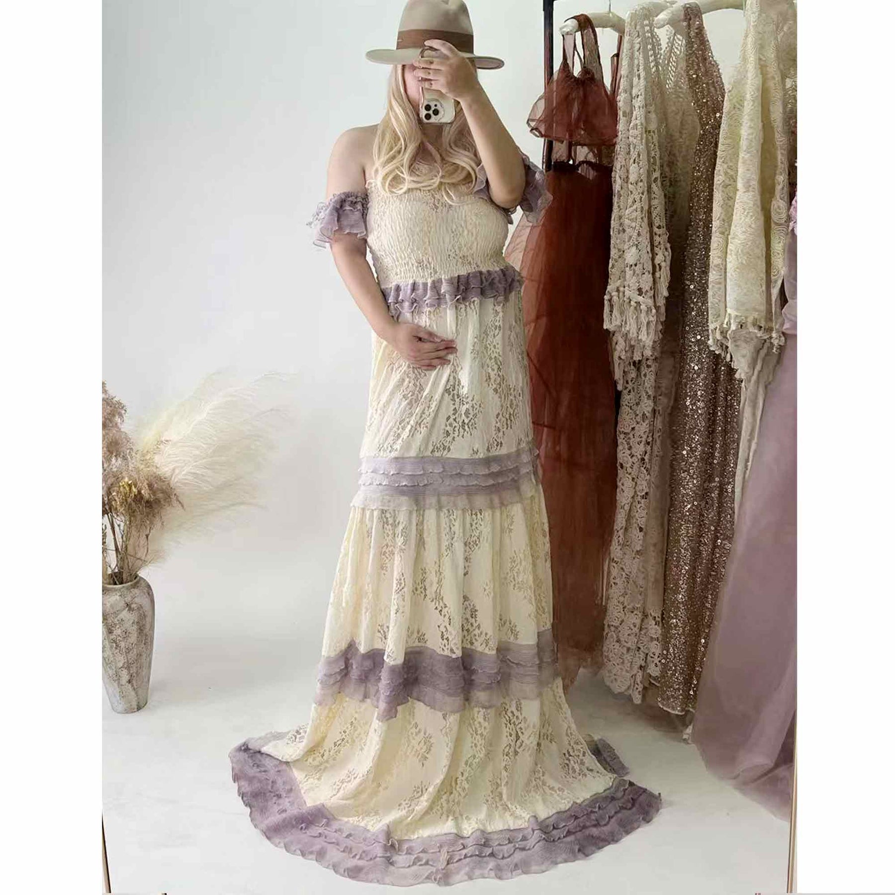 Product name: Lace Patchwork Maternity or Non-maternity Gown Party Dresses for Photography Props Baby Shower Photo Props