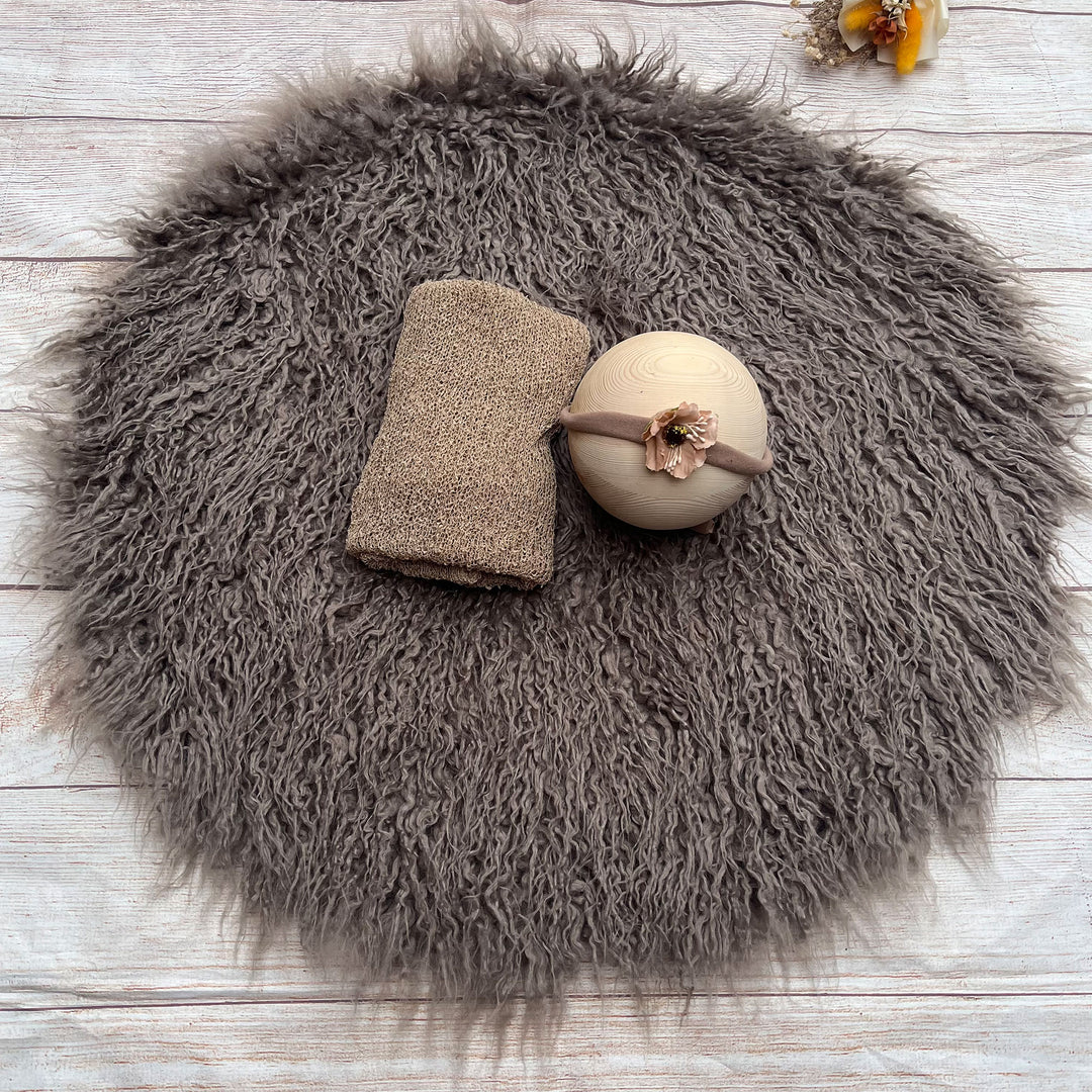 60CM Round Faux Fur with Matched Wrap and Headwear Set