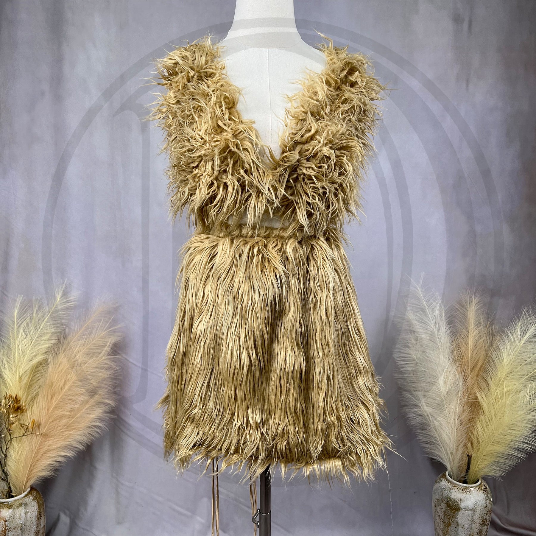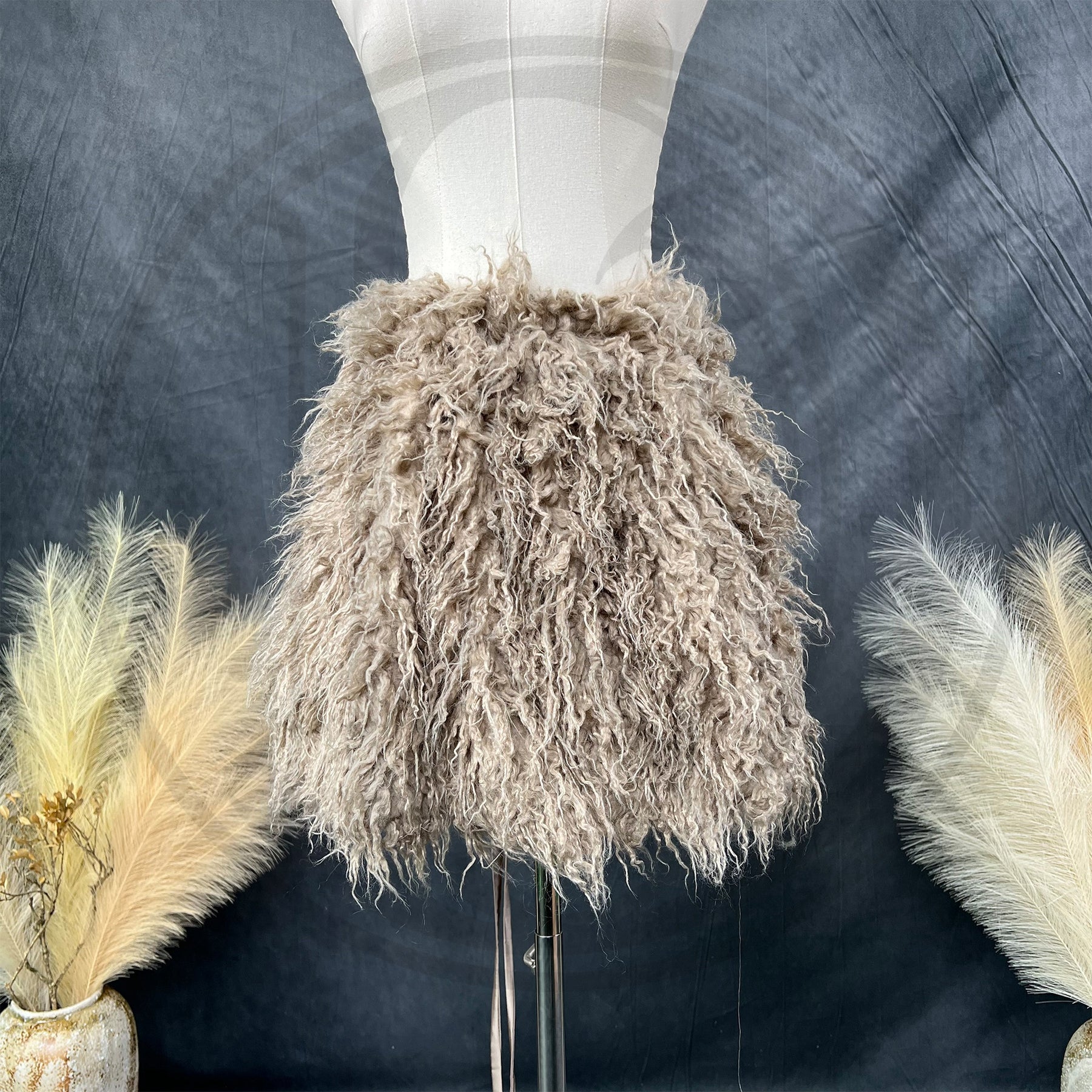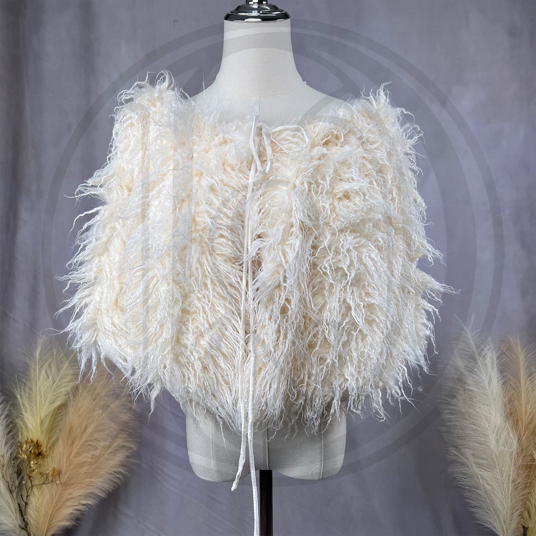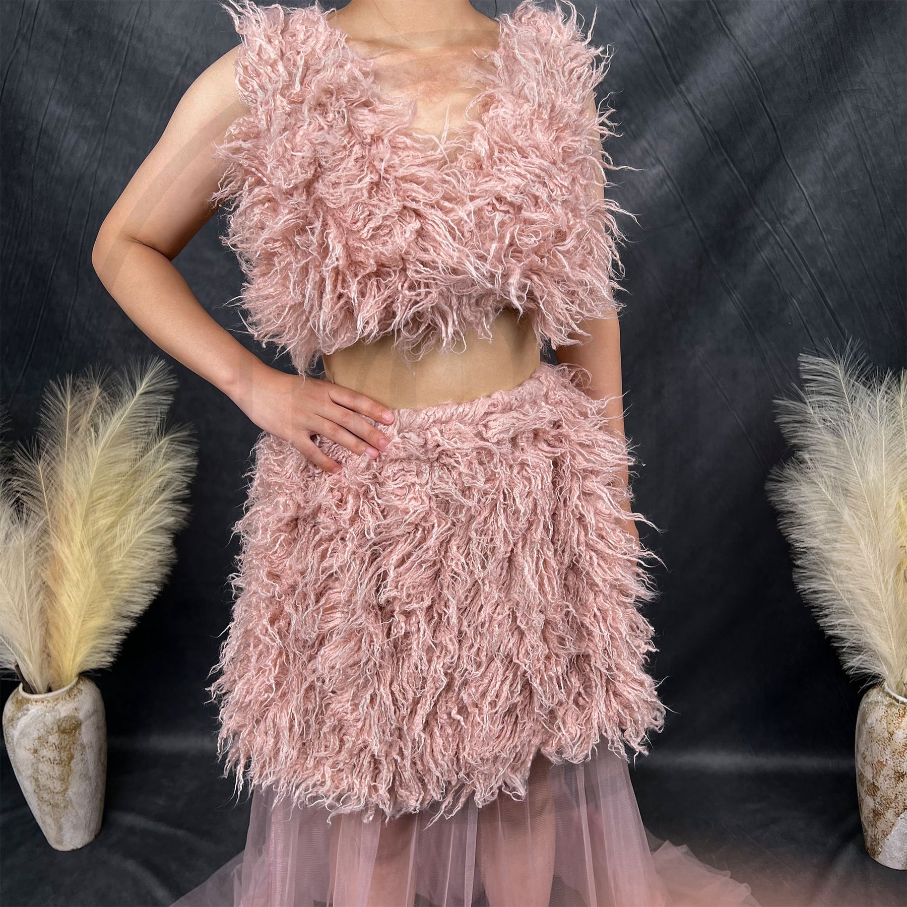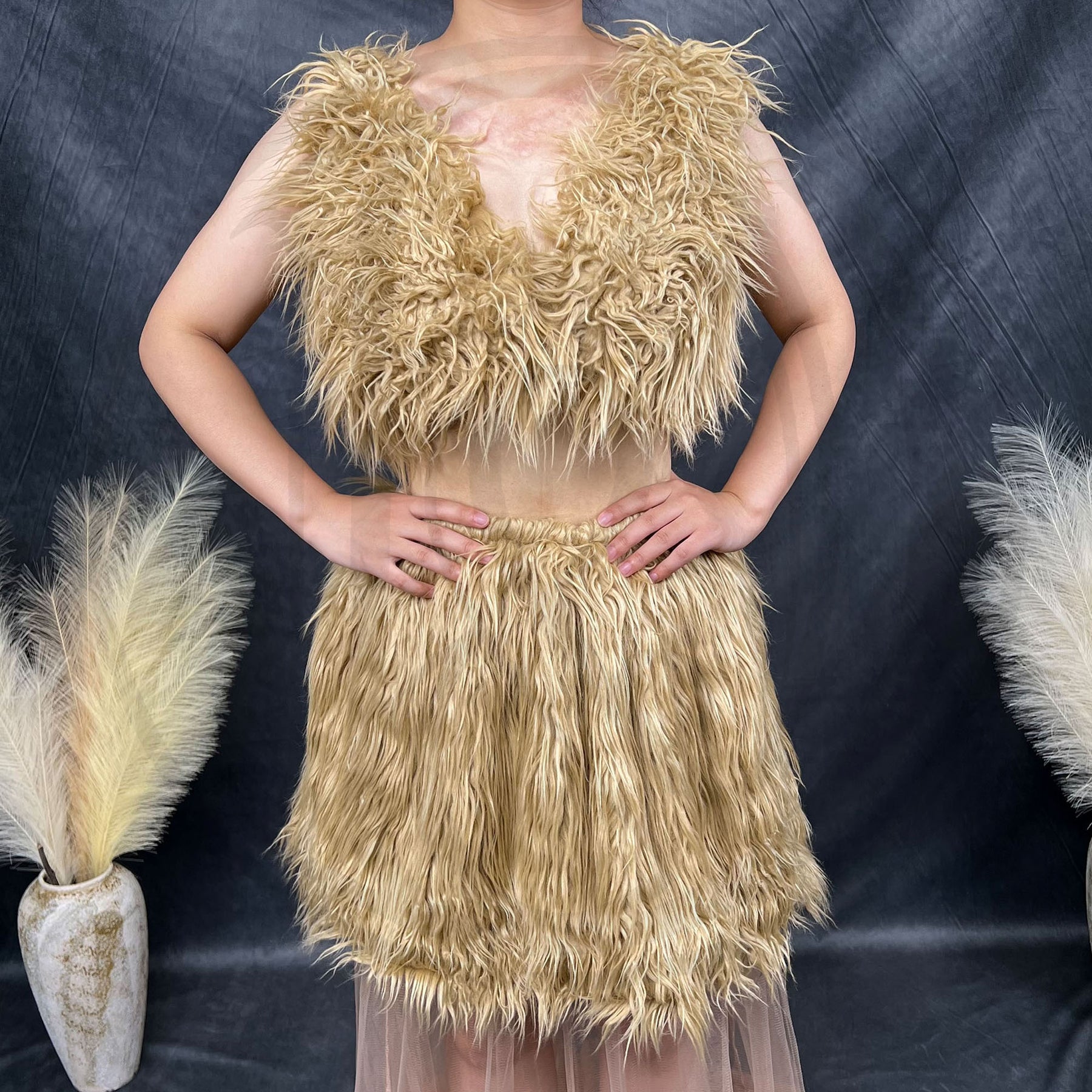 Faux Mongolian Fur Top and Skirt with Matched Tulle Skirt Set Maternity Gown for Photoshoot Maternity Dress Evening Party Costume Baby Shower Gift for Woman Photo Shoot Props