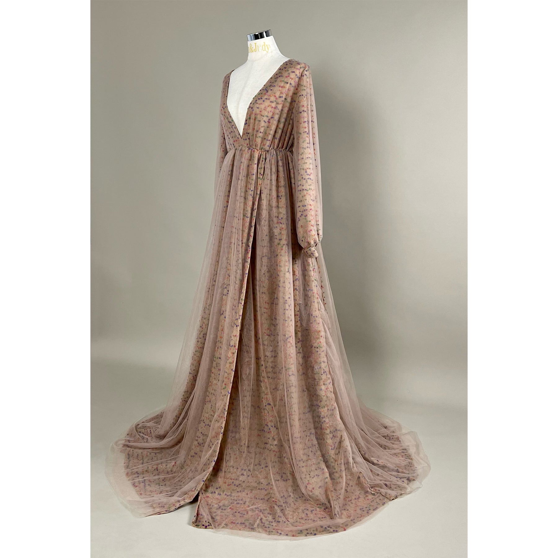 Product name: V-neck Long Sleeves with Tulle Dress Maternity Gown Evening Party Dresses Pregnant for Women Photography Props Baby Shower Gift