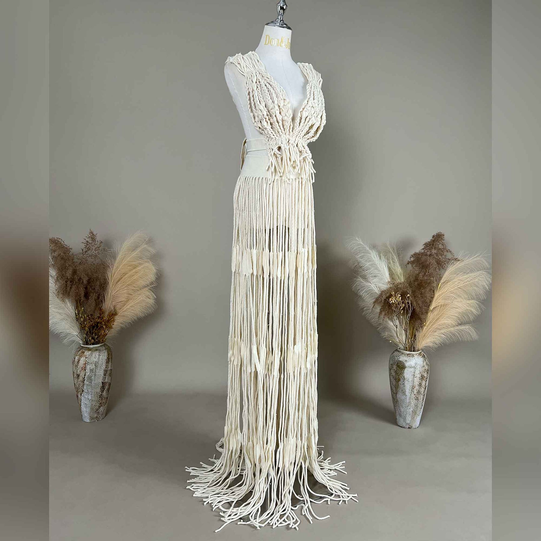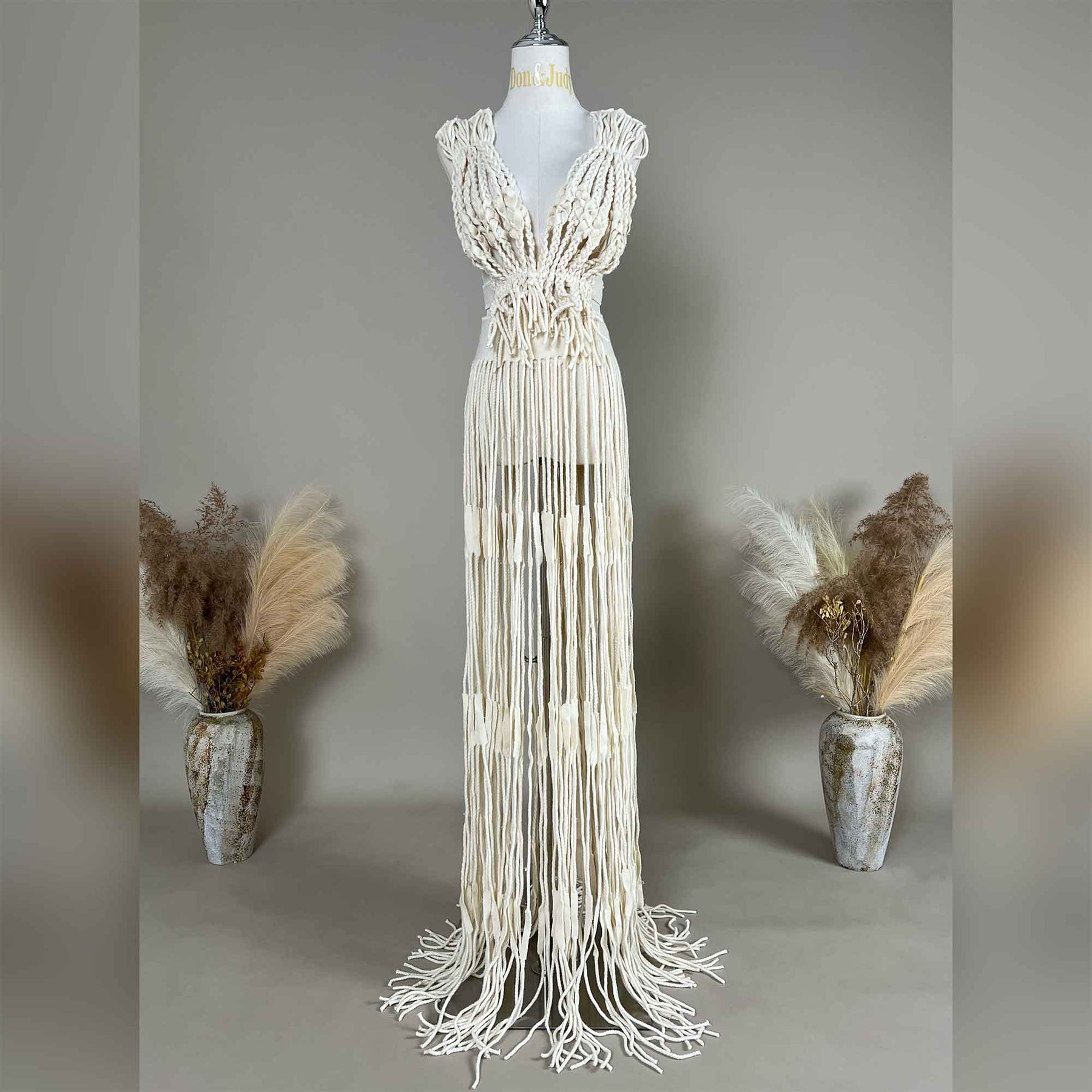Product name: Wool Hand-woven Macram 2 pieces Set Maternity or Non-maternity Gown Party Dresses for Photography Props Baby Shower Photo Props