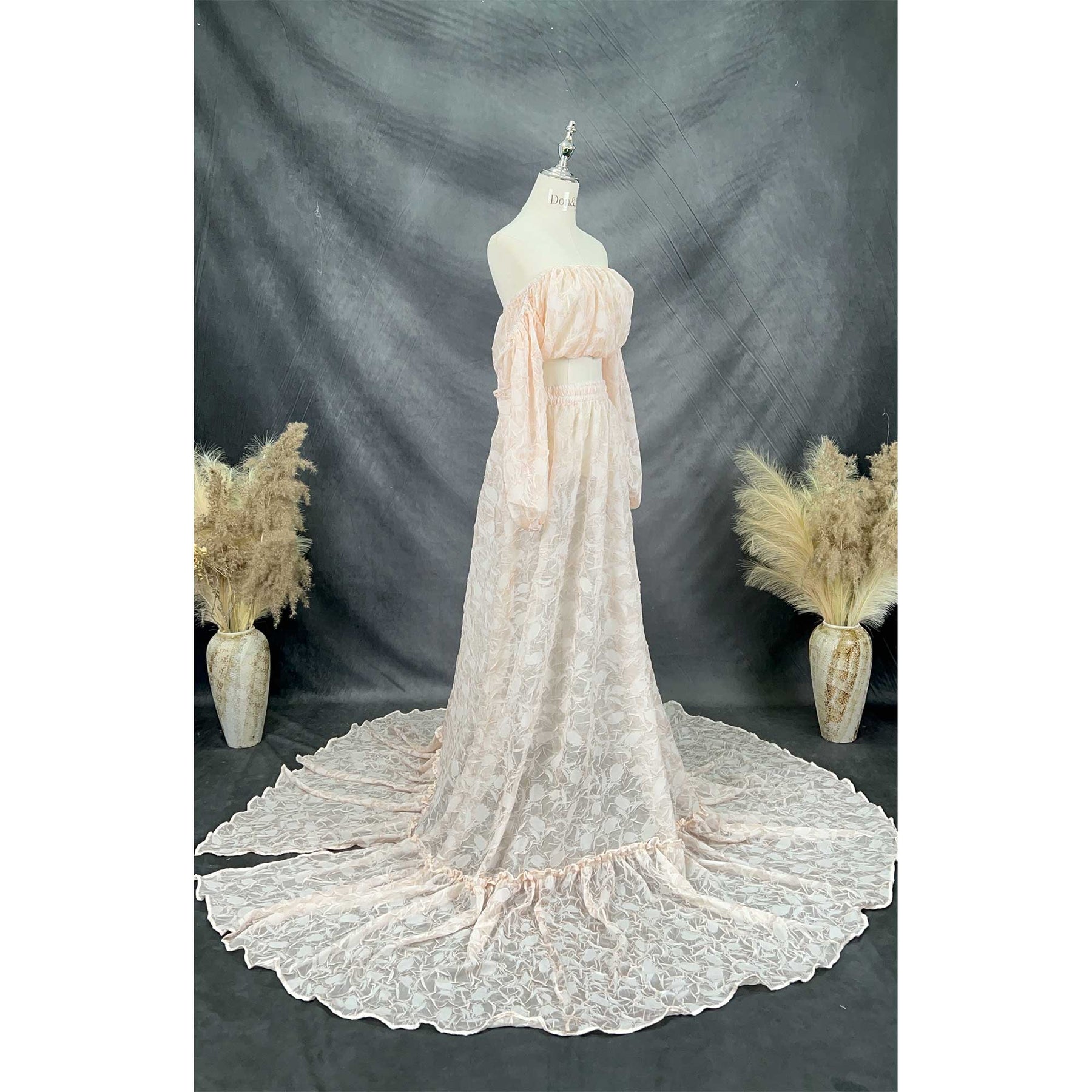 Product name: Boho Chiffon Embossed 2 Pieces Set Maternity Or Non-Maternity Gown Photoshoot Props Pregnancy Dresses Baby Shower Gift